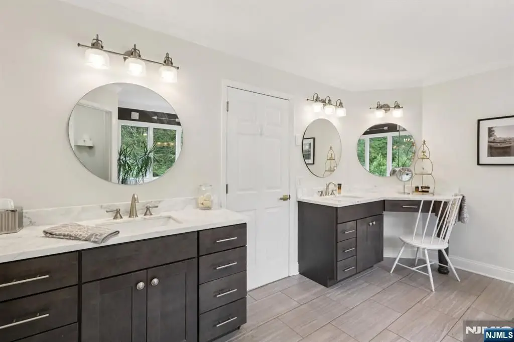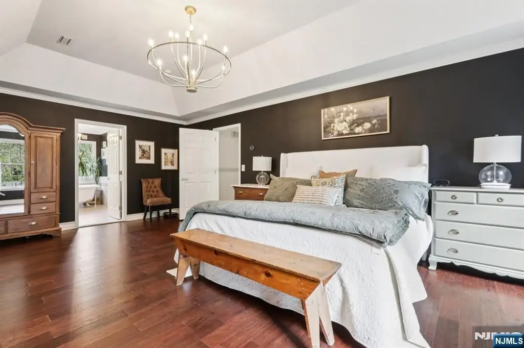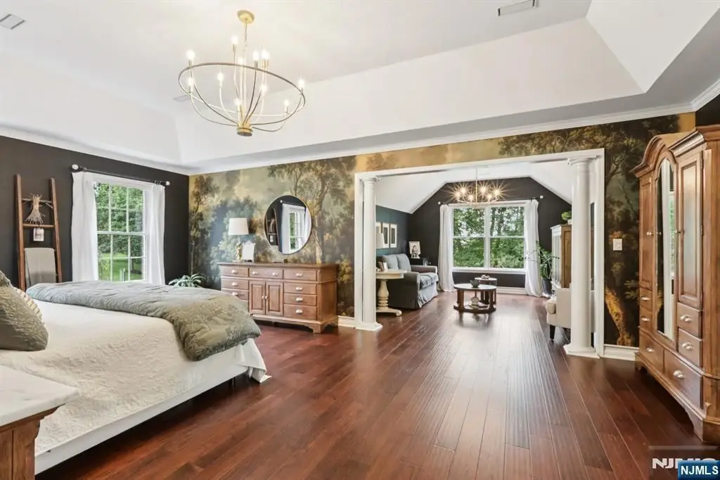 Step into a gracious foyer and experience over 5,000 sq ft of space including the finished basement, in this meticulously maintained and thoughtfully updated home. The main level flows through refined formal rooms, a sunroom, and living room with gas fireplace, anchored by a gourmet kitchen with premium appliances and breakfast nook. A two-tier deck extends from the kitchen, enhancing indoor-outdoor living. Upstairs features updated engineered hardwood flooring and four bedrooms, including a luxurious primary suite with sitting area, renovated bath, and custom walk-in closet system. Additional bedrooms include a junior suite and an oversized room with dual walk-ins and Jack-and-Jill bath. The fully finished walkout basement adds versatility with a summer kitchen, office, flex space, and a spacious family room opening to a paver patio and built-in pool. Privately sited on a cul-de-sac in Chester Township, this home is moments from over 7 miles of preserved trails, and served by top-ranked Chester and West Morris Mendham schools a rare blend of comfort, lifestyle, and enduring value.