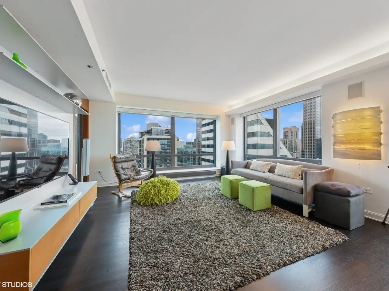 Discover urban elegance in this highly upgraded 3BR/3BA residence on the 41st floor of the Heritage, perfectly positioned on Chicago's Cultural Mile for downsizers and second home buyers seeking proximity to theater, Millennium Park, Lake Michigan, and the Museum Campus. Breathtaking North/East/West corner views of the city skyline, lake, and park unfold through floor-to-ceiling windows, amplifying the 2157 sq ft layout. Custom motorized shades, cove lighting, and bespoke cabinetry elevate the sophisticated interiors. The open kitchen, dining, and living areas feature upgraded hardwood flooring, abundant counter space, a breakfast bar, and access to a spacious recessed balcony-ideal for relaxing or entertaining. The primary suite boasts a Jacuzzi bath, separate shower, walk-in closet, and custom Abitare cabinetry. A dedicated laundry room (not a closet), guest suite, and third bedroom/home office with tailored desk and shelving add practicality and charm. Enjoy Crestron-controlled Lutron lighting and Boston Acoustics surround sound for effortless ambiance. Building amenities include an indoor pool, hot tub, saunas, fitness center, community rooms & co-working space, dog run, 24/7 door staff, and direct pedway access to rail transit for seamless O'Hare connections. Steps from world-class theater, Symphony Center, Art Institute, Museum Campus, and lakefront trails, this home offers vibrant city living with the serenity of a well-appointed retreat. Stroll to Millennium Park's Lurie Gardens, sail from Monroe Harbor, or dine along the Magnificent Mile-all just outside your door.