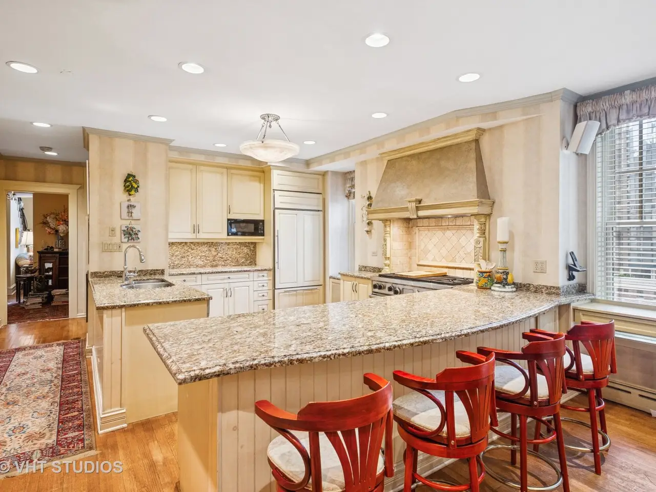Fabulous two story living room with wood burning fireplace! Separate dining room and gourmet kitchen great room. Fantastic light from the two story south facing windows. Newer HVAC system! Industrial strength exhaust hood in kitchen allows for grilling and wok cooking! Storage space included. Parking available off site-Don't miss this one.