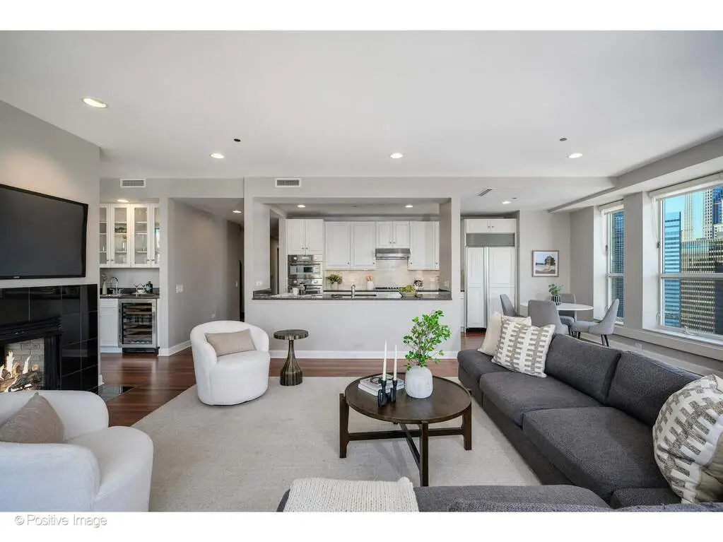 Enjoy breathtaking views from this 3,500 sq ft, 4 bedroom, 3.1 bath penthouse residence at RiverView. This gorgeous corner unit stuns with floor-to-ceiling windows capturing north, east, and west exposures of the skyline, river, and lake. Hardwood flooring flows seamlessly through an expansive, open floor plan. A large formal entryway with ample wall space for an art collection welcomes you home. Formal living and dining rooms are separated by a two-sided fireplace. A generously sized living room enjoys stunning corner views, while the dining room offers a convenient wet bar with a wine fridge and granite counter. Off the main living space, step onto the first of two balconies, where you'll take in striking views of the river, lake, city, and the iconic Navy Pier. A second west-facing balcony frames additional river and skyline views while offering spectacular sunsets. The living room also opens to the chef's kitchen, making this the perfect place to entertain on a large scale. The kitchen features an extra-large island that easily doubles as a buffet, ample counter space, 42" cabinets, Sub-Zero and Thermador appliances, and a breakfast nook. The 4th bedroom is currently set up as a family room/den, the perfect retreat for a study, movie night, or home office. A massive primary suite occupies its own "wing" of the residence with a graciously sized bedroom, a California Closets custom designed walk-in closet, and an ensuite bath with Whirlpool tub, oversized separate shower, and dual vanity. On the other side of the residence, the second bedroom has an ensuite bath and a custom walk-in closet designed by California Closets. A large third bedroom with a generous closet is conveniently located across the hall from a third full bath with tub/shower. A powder room and laundry room complete the layout. Two deeded parking spaces are available for purchase for $50K/space. RiverView is a full-service, amenity-rich building offering 24 hour door staff, an exercise room, indoor pool and spa and sundeck. 415 E North Water sits along the riverfront with quick access to the Riverwalk, lakefront path, restaurants, shopping, museums, nightlife, and all that Streeterville has to offer!