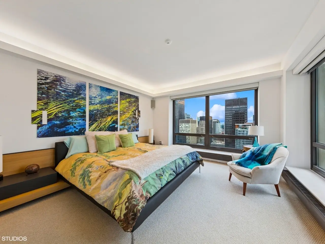 Discover urban elegance in this highly upgraded 3BR/3BA residence on the 41st floor of the Heritage, perfectly positioned on Chicago's Cultural Mile for downsizers and second home buyers seeking proximity to theater, Millennium Park, Lake Michigan, and the Museum Campus. Breathtaking North/East/West corner views of the city skyline, lake, and park unfold through floor-to-ceiling windows, amplifying the 2157 sq ft layout. Custom motorized shades, cove lighting, and bespoke cabinetry elevate the sophisticated interiors. The open kitchen, dining, and living areas feature upgraded hardwood flooring, abundant counter space, a breakfast bar, and access to a spacious recessed balcony-ideal for relaxing or entertaining. The primary suite boasts a Jacuzzi bath, separate shower, walk-in closet, and custom Abitare cabinetry. A dedicated laundry room (not a closet), guest suite, and third bedroom/home office with tailored desk and shelving add practicality and charm. Enjoy Crestron-controlled Lutron lighting and Boston Acoustics surround sound for effortless ambiance. Building amenities include an indoor pool, hot tub, saunas, fitness center, community rooms & co-working space, dog run, 24/7 door staff, and direct pedway access to rail transit for seamless O'Hare connections. Steps from world-class theater, Symphony Center, Art Institute, Museum Campus, and lakefront trails, this home offers vibrant city living with the serenity of a well-appointed retreat. Stroll to Millennium Park's Lurie Gardens, sail from Monroe Harbor, or dine along the Magnificent Mile-all just outside your door.