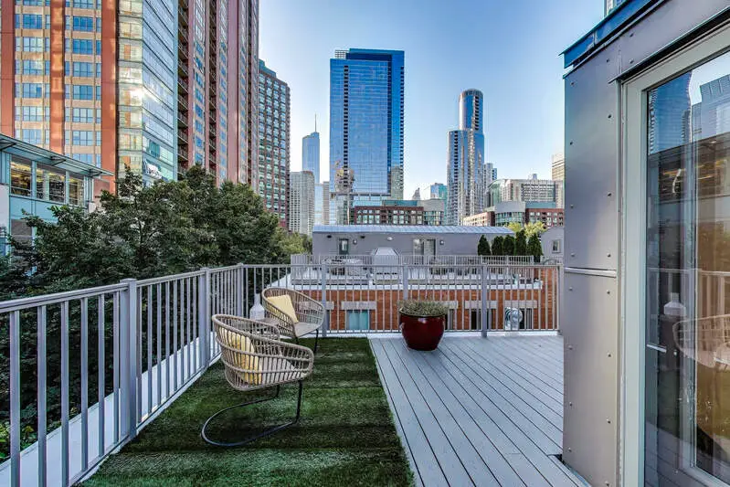 A rare offering in the heart of Streeterville, this four-story end-unit townhome combines the scale and privacy of a single-family residence with the convenience of a premier downtown location. Encompassing approximately 3,600 square feet, the home features four bedrooms, three and one-half baths, and an attached heated two-car garage, all set on an extra-large floor plan facing a quiet, tree-lined street. An open-concept second level is defined by soaring 11-foot floor-to-ceiling windows, a gas fireplace, remote-controlled blinds, fully automated AV and a flexible living/dining space ideal for everyday living and entertaining. The chef's kitchen has been thoughtfully updated with new appliances, refinished cabinetry, a generous pantry, and a wide balcony for grilling or gatherings. Multi-room speaker surround sound system on Sonos network and integrated smart-home features, including Alexa-controlled lighting, further enhance the experience. The primary suite offers custom built-ins, a walk-in closet, and a spa-style bath with a soaking tub, separate glass shower, and double vanity. A first-floor ensuite suite provides flexibility for guests or extended family. Additional features include new hardwood floors, a finished mudroom, newer furnace, AC, and water heater. The crowning feature of the residence is a private wraparound Trex rooftop deck, newly completed in 2023, with sweeping city views-perfect for entertaining, gardening, or quiet relaxation above the city. Located just blocks from the Magnificent Mile, the Lakefront, River Walk, Navy Pier, Ogden Slip, and Chicago's finest dining, shopping, and cultural attractions, this home represents a rare opportunity to own both space and lifestyle in one of the city's most dynamic neighborhoods.