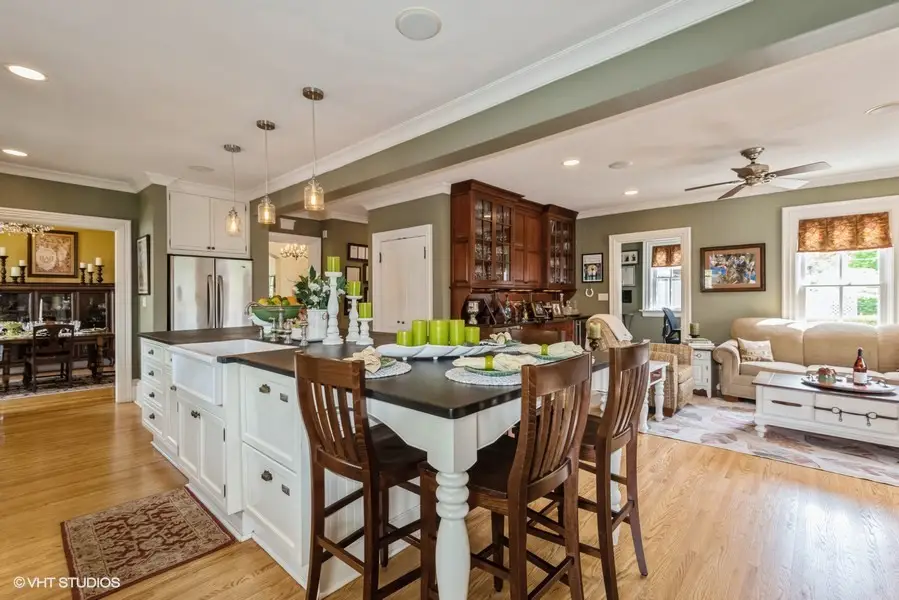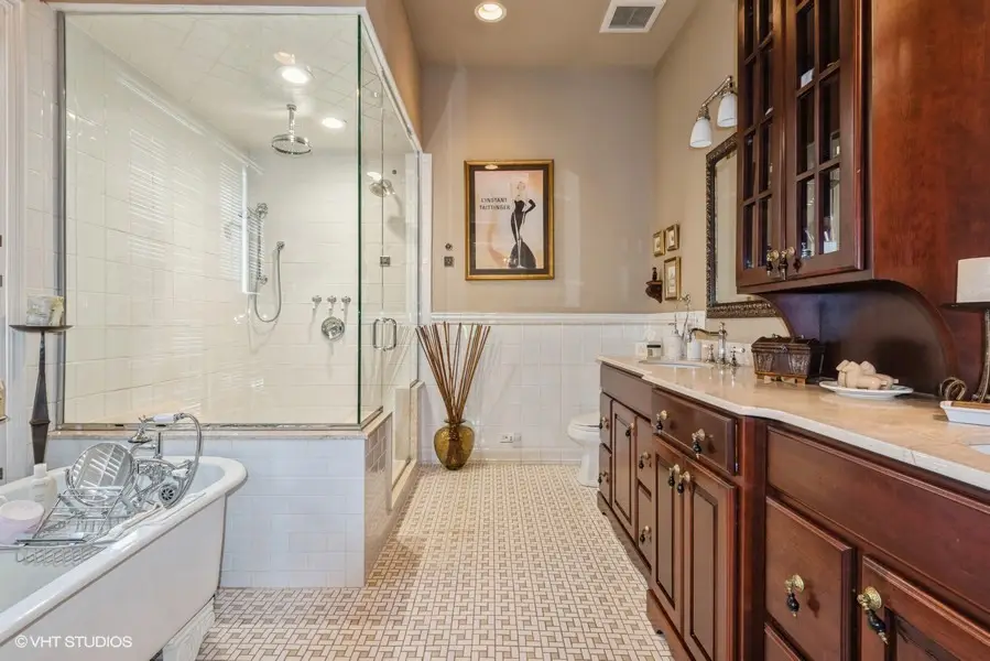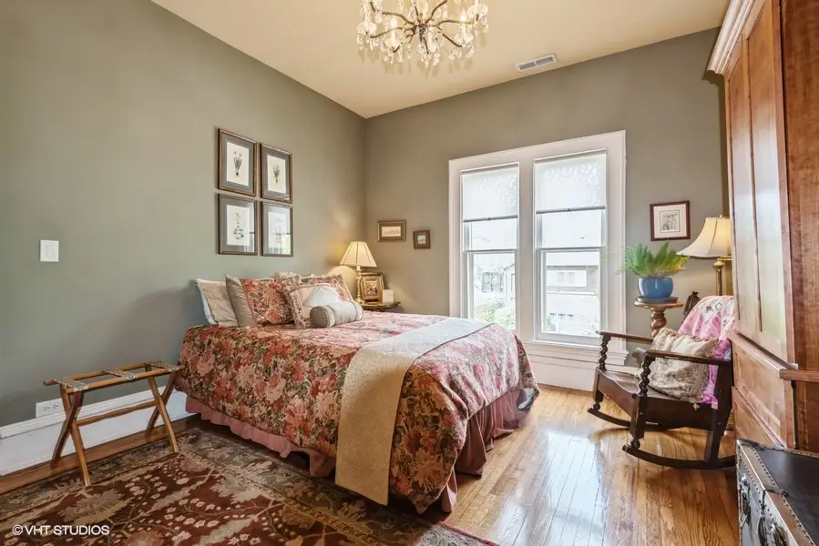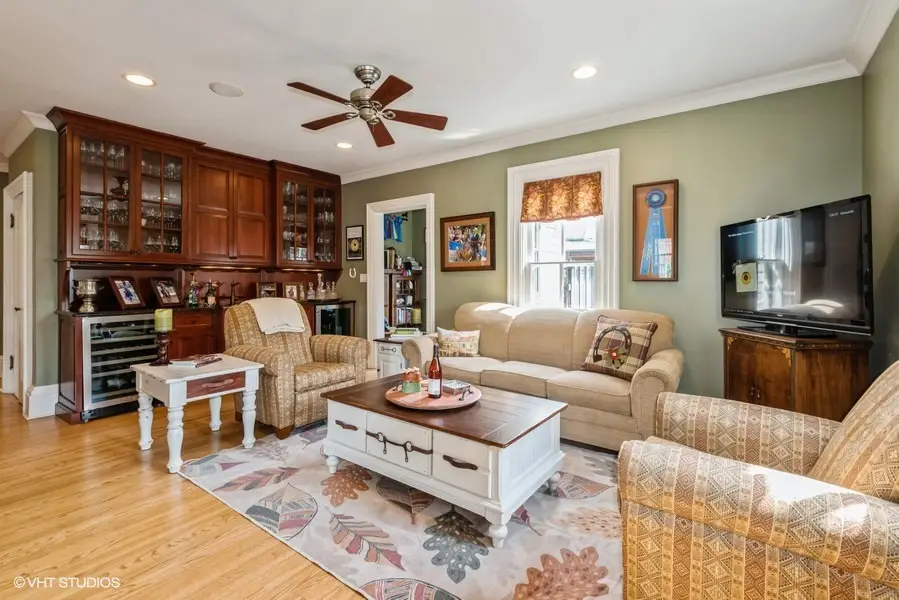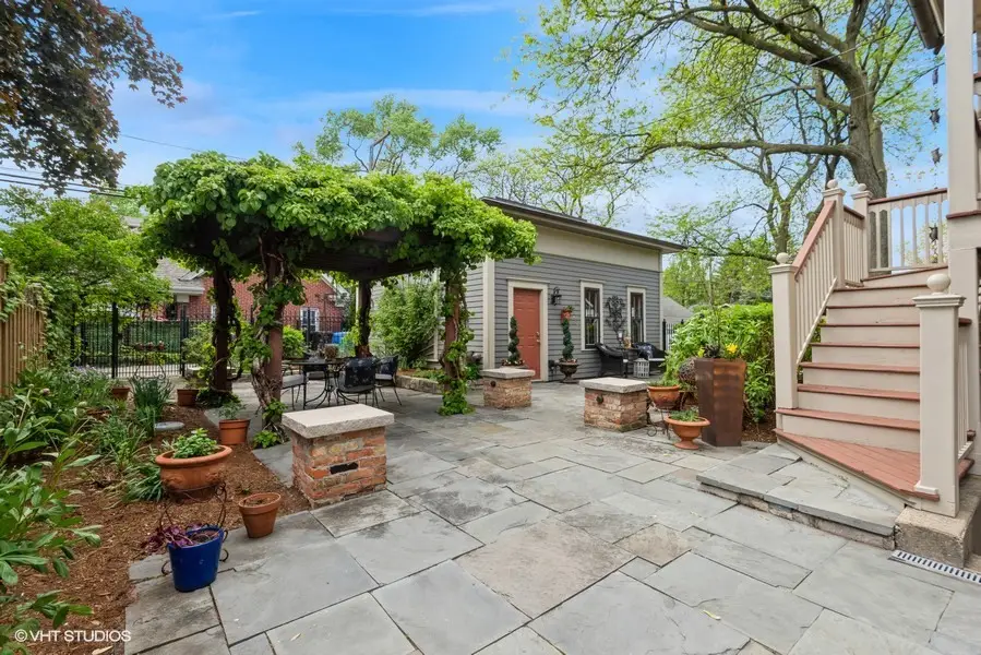 This turn-of-the-century Italianate home, completely renovated in 2005, is situated on one of the prime corners in Old Irving Park. As you approach the house, you will be welcomed by a charming front porch seating area. Upon entering the residence, you are greeted by a grand foyer featuring a stunning mahogany staircase, 11-foot ceilings, original moldings and door casings, hardwood floors, oversized windows that flood the rooms with light, gas fireplaces, an ante room, formal living room ,formal dining room. This constitutes merely the front half of the main floor. The back half of the main floor boasts a beautiful kitchen that opens to a spacious great room with wet bar, multiple pantries providing ample storage, a half bath with basketweave tiled flooring, and an office overlooking the back yard. The second floor has 4 bedrooms, 3 bathrooms and laundry room. The primary bathroom is equipped with a steam shower, heated floors, double bowl sinks and a soaking tub. The primary bedroom includes a sitting area with a fireplace. The basement offers a recreation room, custom detailed temp-controlled wine cellar, office, 5th bedroom, bathroom and second kitchen along with heated floors and tall windows that allow significant natural light. This level is perfect for in-law living or an au pair arrangement. The 2 car garage was designed to fit 4 cars using lifts. The exterior of the home is a lush filled garden oasis with water fountain feature, fully fenced yard, bluestone pavers, and sprinkler system. This property is located on one of Old Irving Park's most desirable blocks, known for its larger lots and lower density, with Kildare serving as a through street between Addison and Irving Park. Leave the cars in the garage - Conveniently within less than a mile, you'll find two Metra stations, the Blueline El stop, Smoque BBQ, Eris and Old Irving Breweries, groceries and many other amenities.
