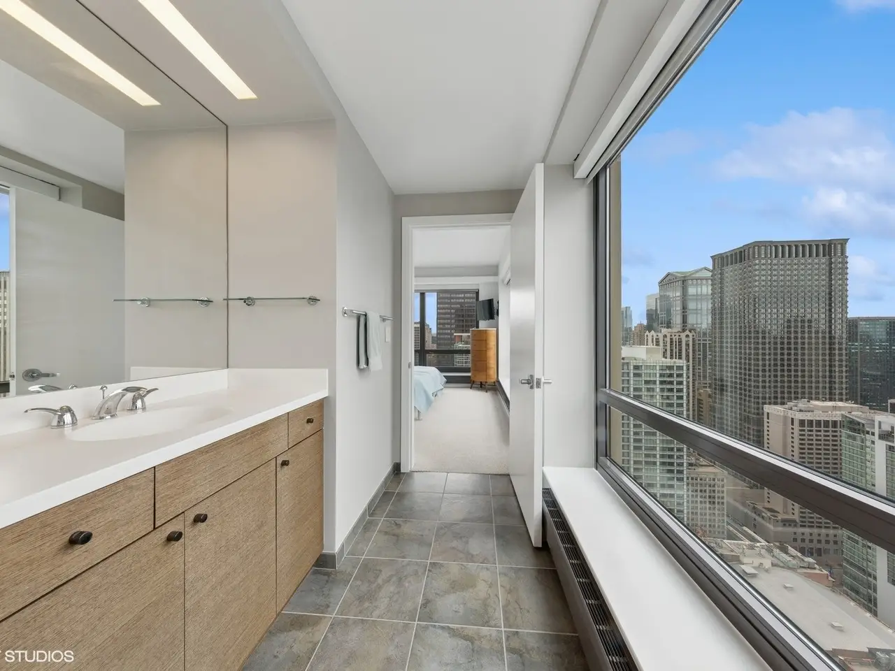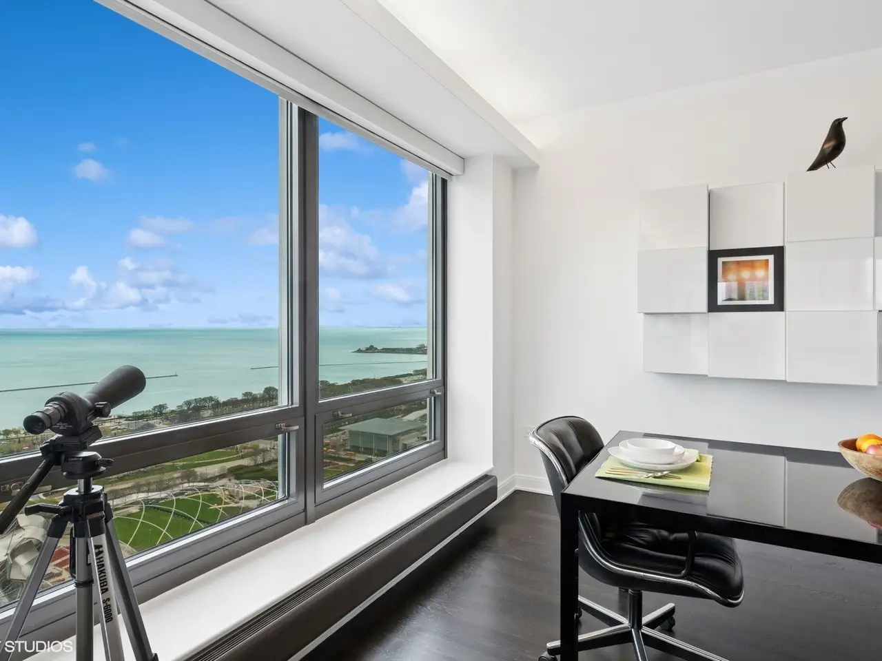 Discover urban elegance in this highly upgraded 3BR/3BA residence on the 41st floor of the Heritage, perfectly positioned on Chicago's Cultural Mile for downsizers and second home buyers seeking proximity to theater, Millennium Park, Lake Michigan, and the Museum Campus. Breathtaking North/East/West corner views of the city skyline, lake, and park unfold through floor-to-ceiling windows, amplifying the 2157 sq ft layout. Custom motorized shades, cove lighting, and bespoke cabinetry elevate the sophisticated interiors. The open kitchen, dining, and living areas feature upgraded hardwood flooring, abundant counter space, a breakfast bar, and access to a spacious recessed balcony-ideal for relaxing or entertaining. The primary suite boasts a Jacuzzi bath, separate shower, walk-in closet, and custom Abitare cabinetry. A dedicated laundry room (not a closet), guest suite, and third bedroom/home office with tailored desk and shelving add practicality and charm. Enjoy Crestron-controlled Lutron lighting and Boston Acoustics surround sound for effortless ambiance. Building amenities include an indoor pool, hot tub, saunas, fitness center, community rooms & co-working space, dog run, 24/7 door staff, and direct pedway access to rail transit for seamless O'Hare connections. Steps from world-class theater, Symphony Center, Art Institute, Museum Campus, and lakefront trails, this home offers vibrant city living with the serenity of a well-appointed retreat. Stroll to Millennium Park's Lurie Gardens, sail from Monroe Harbor, or dine along the Magnificent Mile-all just outside your door.