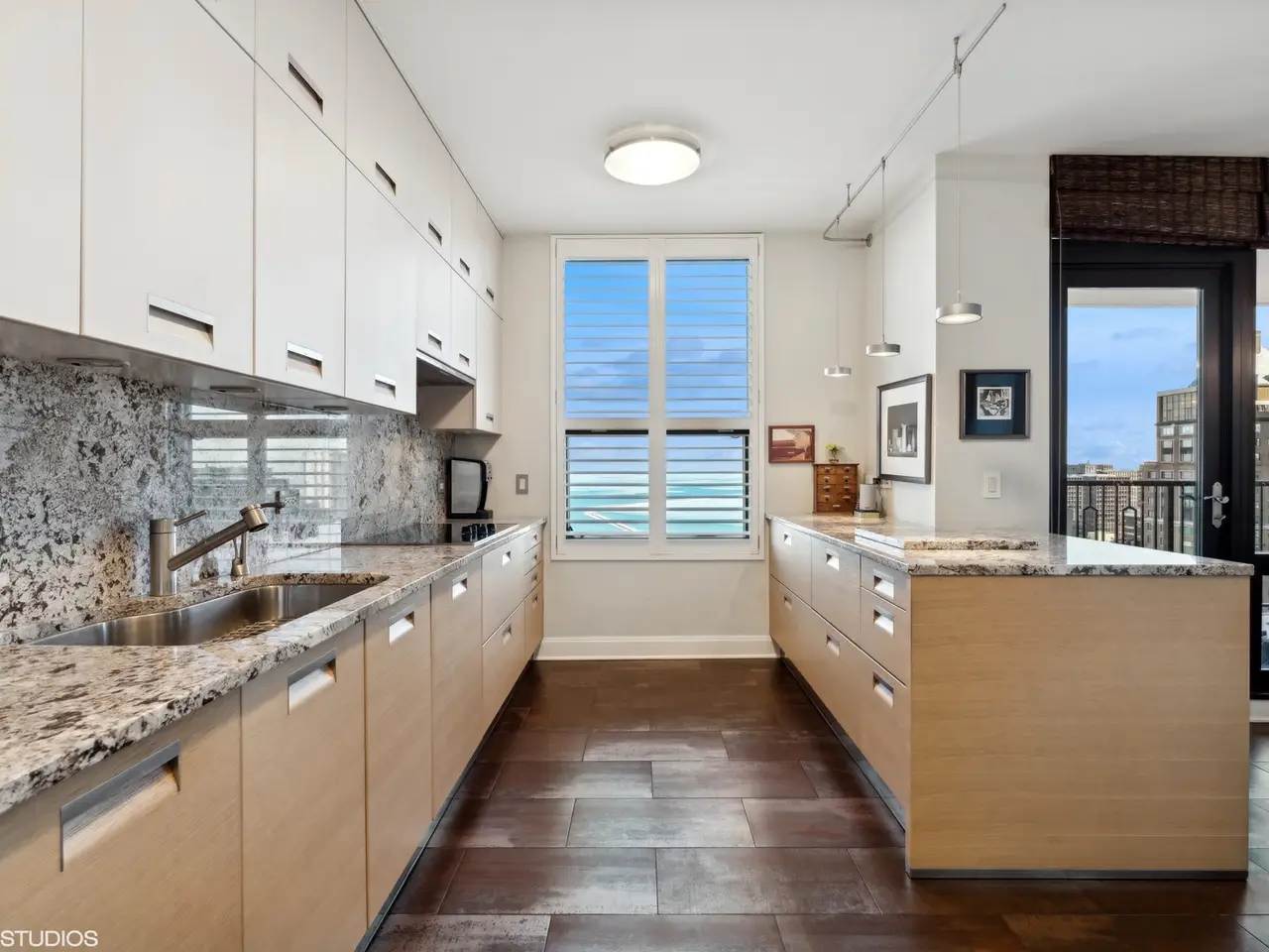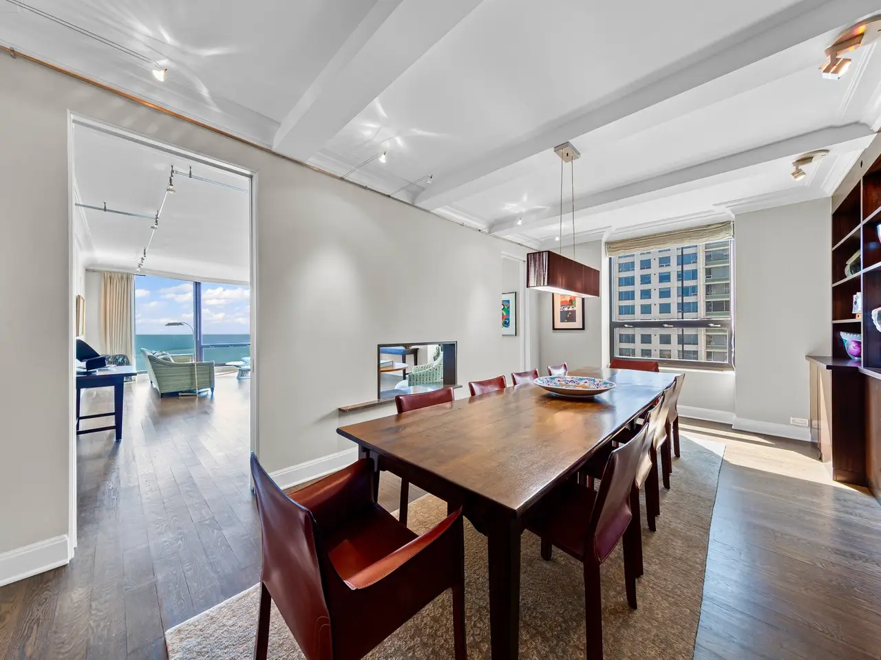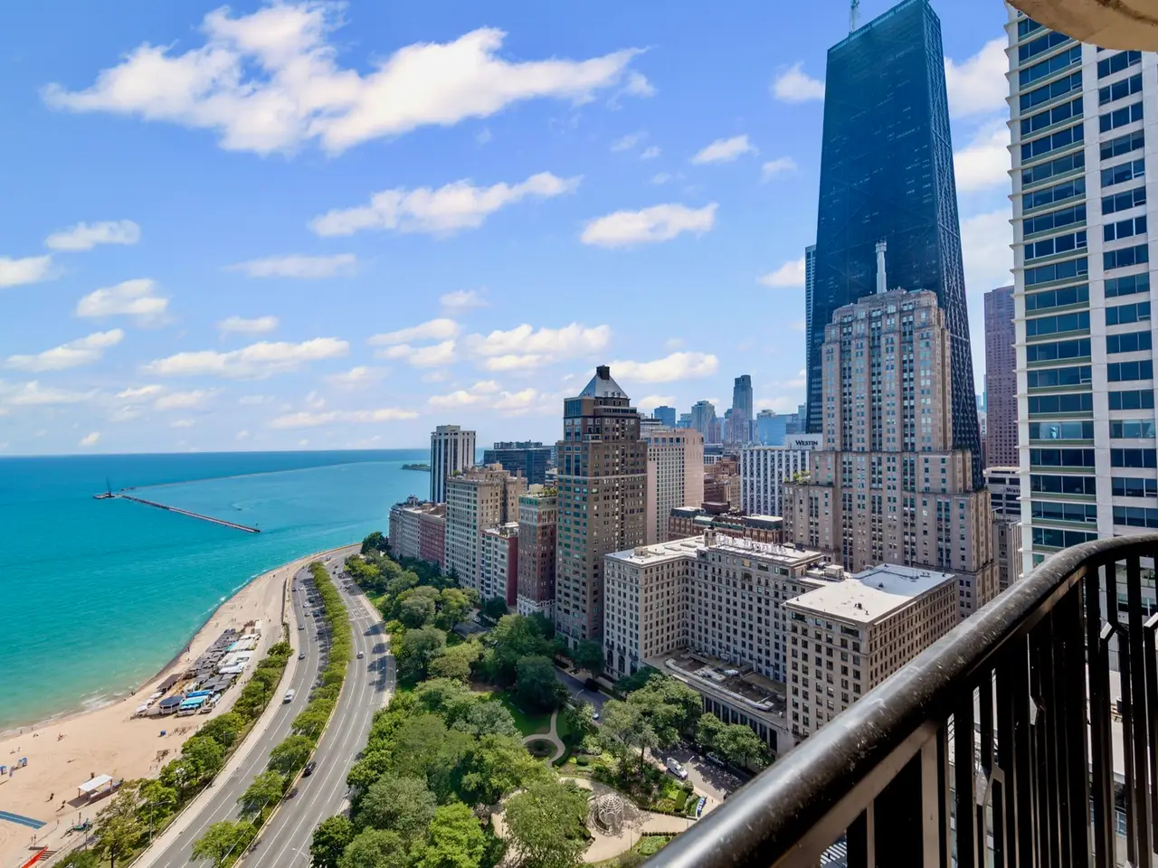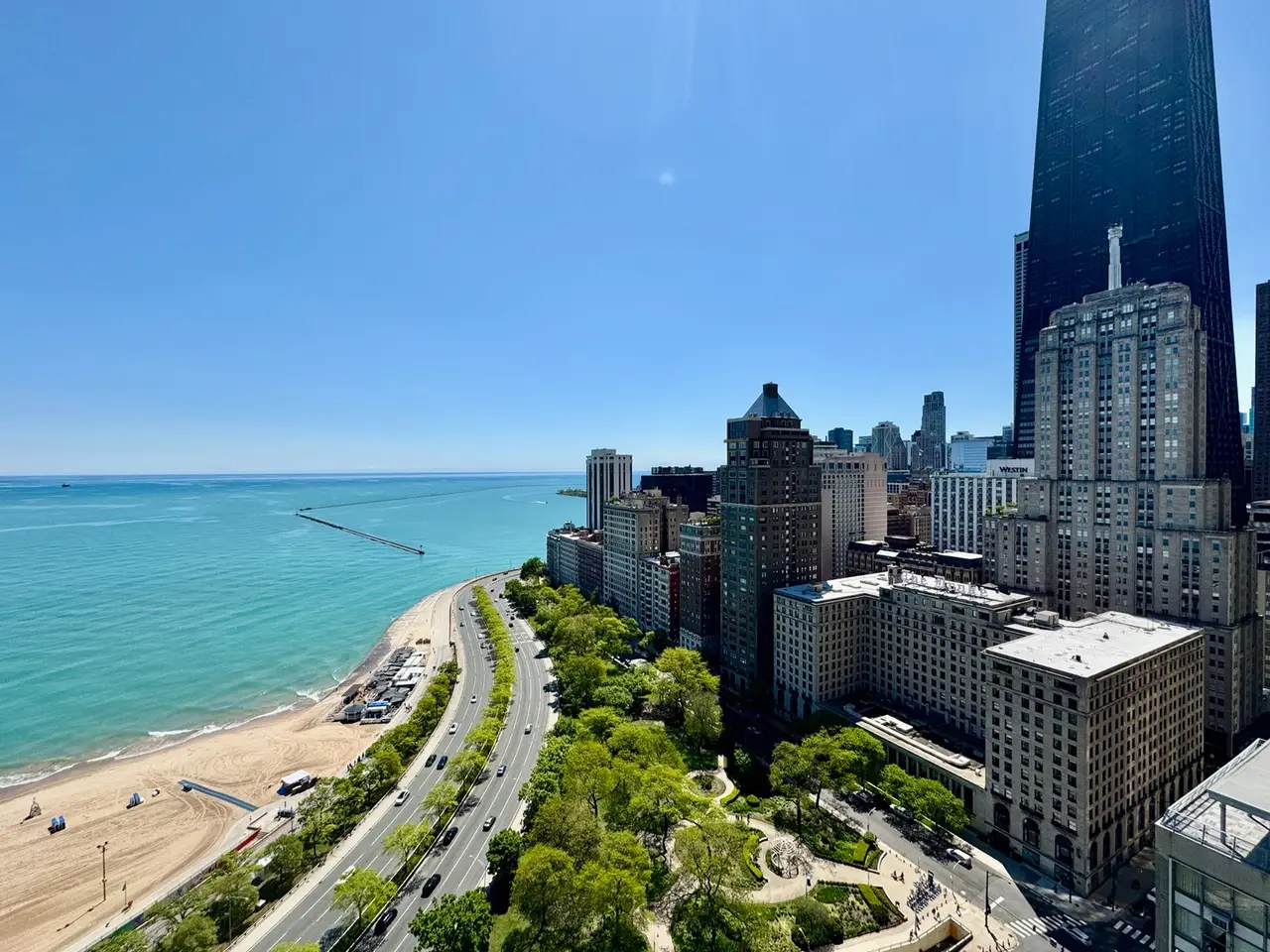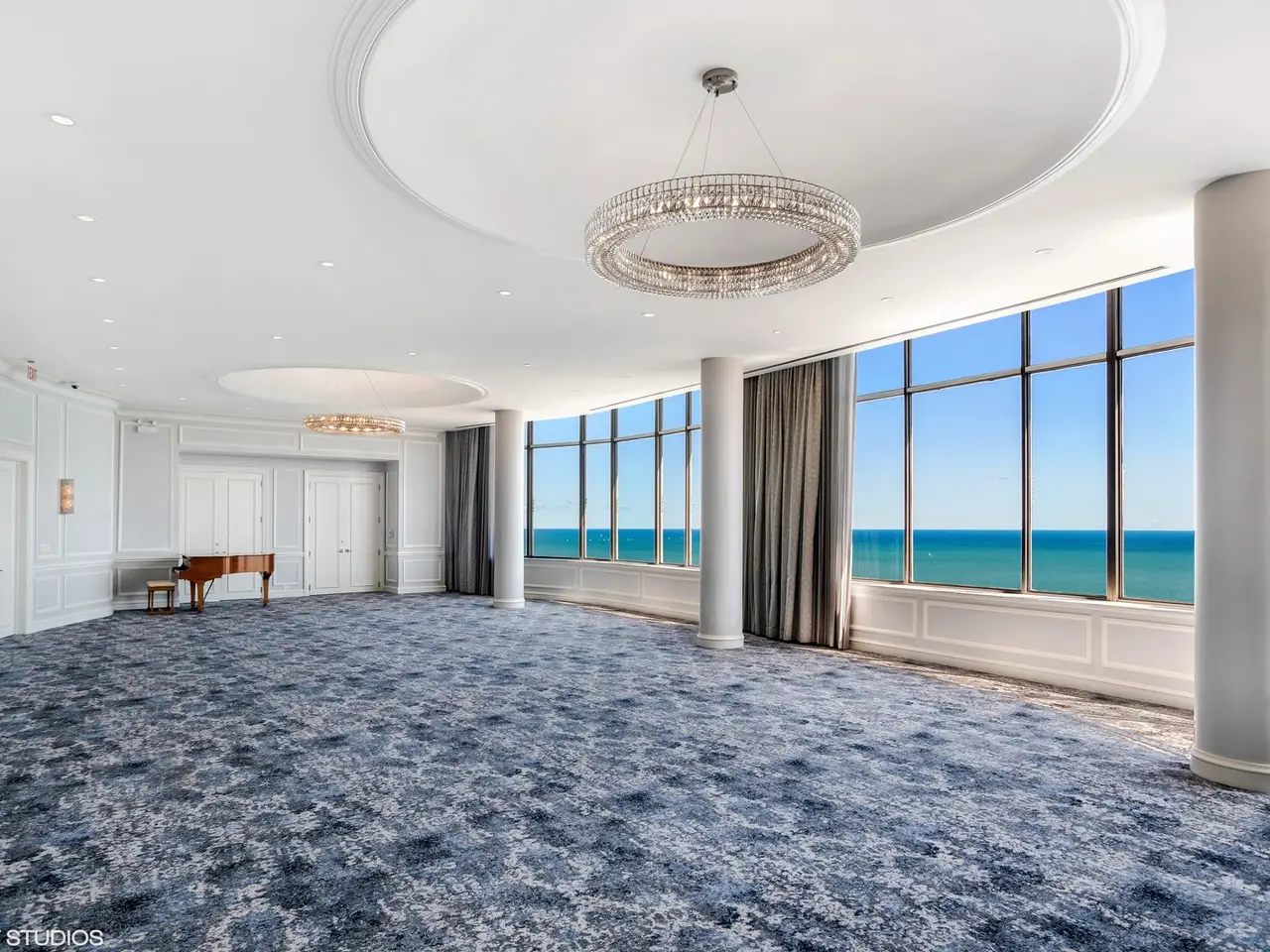 A stunning 3-bedroom, 3.1-bath lakefront residence (3,020 sq ft) on the 31st floor of The Carlyle; one of the finest condominium buildings in the city of Chicago. Its 20-foot terrace affords spectacular and forever unobstructed views of Oak Street Beach and Lake Michigan; historic East Lake Shore Drive and the Streeterville skyline. Watch the annual Air and Water Show from your 31st floor front-row balcony seat! No expense was spared in the complete remodel of this home. The sleek and sophisticated Snaidero kitchen is a chef's dream, equipped with top-tier appliances and complemented by a large dining and informal sitting area that's perfect for entertaining. There is also a large walk-in pantry with a washer and dryer, plus a sink for added convenience. The 27-foot living room offers floor-to-ceiling windows framing stunning lake views, while the elegant formal dining room comfortably seats ten guests for unforgettable meals. The private library/den provides a quiet retreat, and a separate desk area ensures that you have all the space you need for work or study. The master suite is a sanctuary with southerly and westerly views. It includes two dressing areas leading to dual baths, each with radiant floor heating for ultimate comfort. Bedroom 2 also has an ensuite bath with radiant heating. Bedroom 3 is currently being used as a secluded office, adding to the home's versatility. Further features include 9 ft ceilings, recently installed A/V system, a wonderful powder room, ample amounts of storage including a 7' x 6' storage room. There is beautiful hardwood flooring and tiling throughout. One attached valet parking space is included in the monthly assessment with extra parking and guest parking available. The Carlyle is renowned for its world-class amenities where residents enjoy 24-hour door staff, valet parking with EV-charging, and on-site management. The magnificence begins in the lobby and continues 38 stories, up to the rooftop recreation center offering an indoor lap pool, expansive fitness center, sun decks with jaw-dropping views, and a 90 ft ballroom with a catering kitchen - perfect for entertaining or hosting events. There is also an assigned storage locker. Superbly located in the Gold Coast moments from the Magnificent Mile and all the very best Chicago has to offer. 100% owner occupied. No pets or rentals permitted.