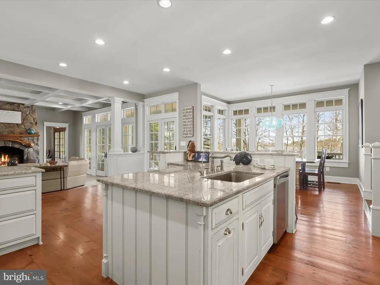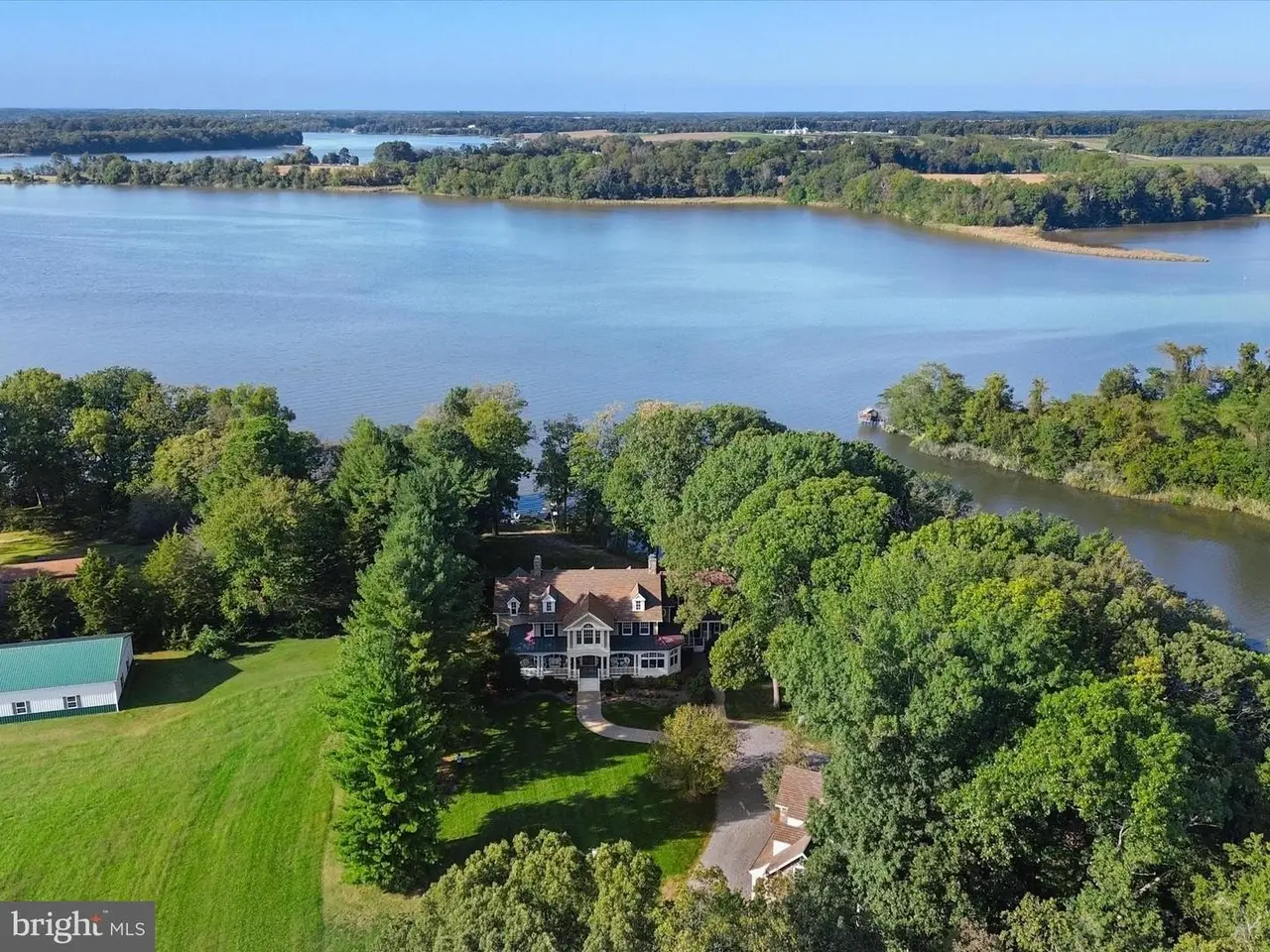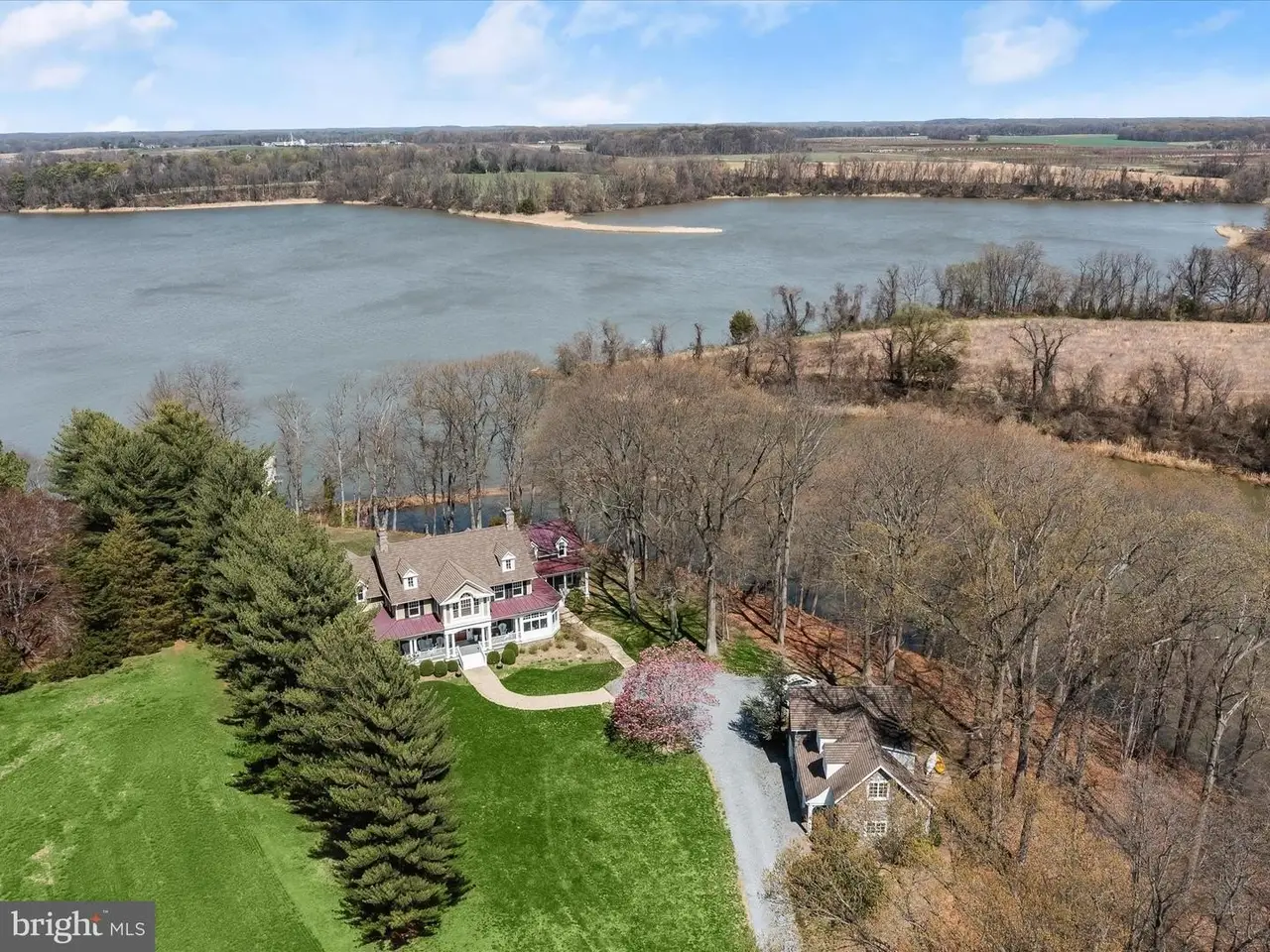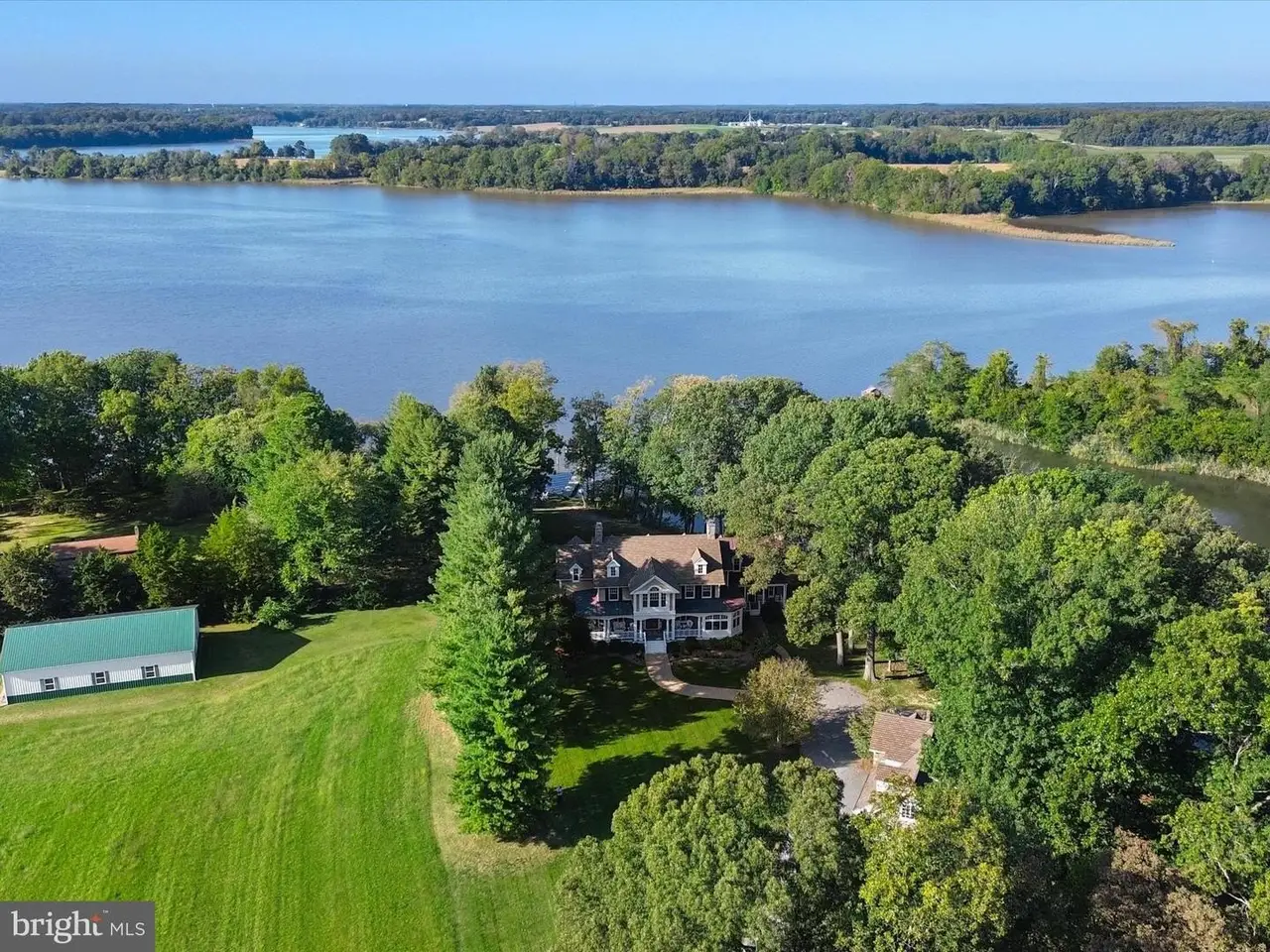Experience unparalleled waterfront living in this stunning Coastal Farmhouse situated on 13.2 private acres in the desirable Kennersley Farm community. Custom-built as a former builder's residence, this home showcases the highest quality materials and exceptional craftsmanship throughout. With 8 bedrooms and 6 full baths in the main house, plus a charming 2-bedroom Carriage House with a full kitchen and bath, this estate offers expansive space for family and guests to gather. The detached stone carriage house is located over a 2-car side-loading garage with a conditioned work/storage room. Step inside the main house to find meticulously designed interiors featuring low-maintenance hewn pine hardwood floors, 8-inch wood base, solid wood doors, and raised wood panel wainscoting. The waterside family room is a true showstopper with a coffered ceiling, stone fireplace, a designer mantle, built-in media, and panoramic views. Entertain effortlessly in the central gourmet kitchen with waterside access or enjoy vibrant indoor games in the oversized adjacent recreation room. Later, a quiet vibe will draw you to unwind in the main-level ensuite with an attached sunroom offering access to a serene side deck for a good read or morning coffee. With thoughtful design and attention to comfort and convenience, this home includes both main-level and upper-level laundry rooms, a finished attic bonus bedroom with a sitting area and a half bath, and endless customization possibilities for a future expansion in the unfinished basement with an exterior door and walk-up stair. Outdoor living is paramount with 450 feet of private navigable waterfront along Southeast Creek and views of the Chester River. A private dock equipped with water, electric service, 2 slips, and 2 ski lifts makes boating fun and accessible. Enjoy summer days by the waterside saltwater pool, complete with a paver patio, diving rock, and a 10-foot diving well. Evenings can be spent by the waterside stone fire pit or on the tiered covered porch and upper balcony overlooking the water. Nature enthusiasts will appreciate the natural shoreline, kayak launch, mature trees, and the presence of mated bald eagles. Professional landscaping and outdoor lighting enhance the estate's beauty, while a private lane with a security alarm ensures seclusion. Perfectly situated near Kennersley Point Marina and other nearby marinas, this location offers convenient access to Chestertown, Rock Hall, and Annapolis by boat, as well as MD 213, Rte-50, and Rte-301 by car. This fully furnished home is an entertainer's dream and a rare waterfront oasis-schedule your private tour today!