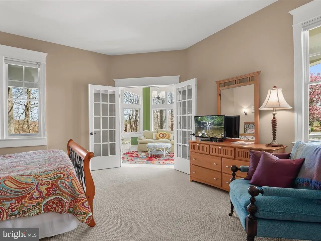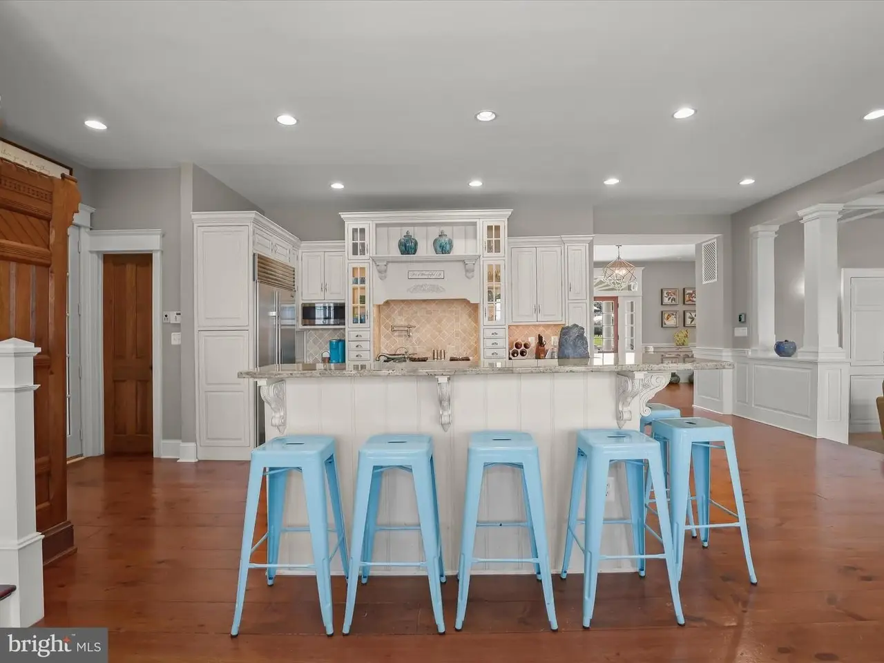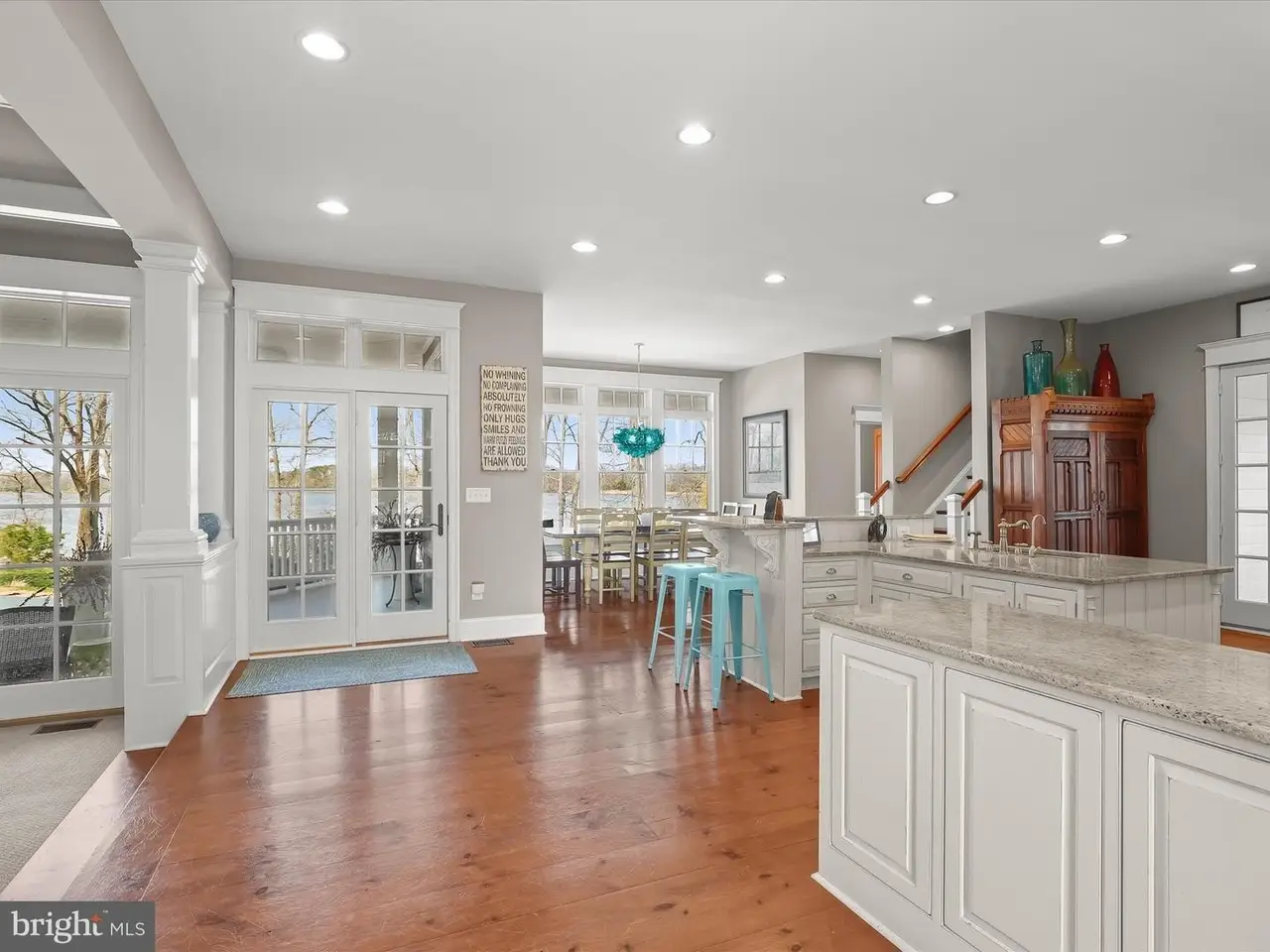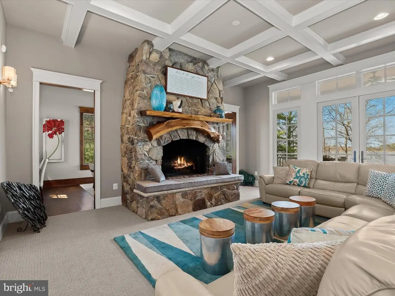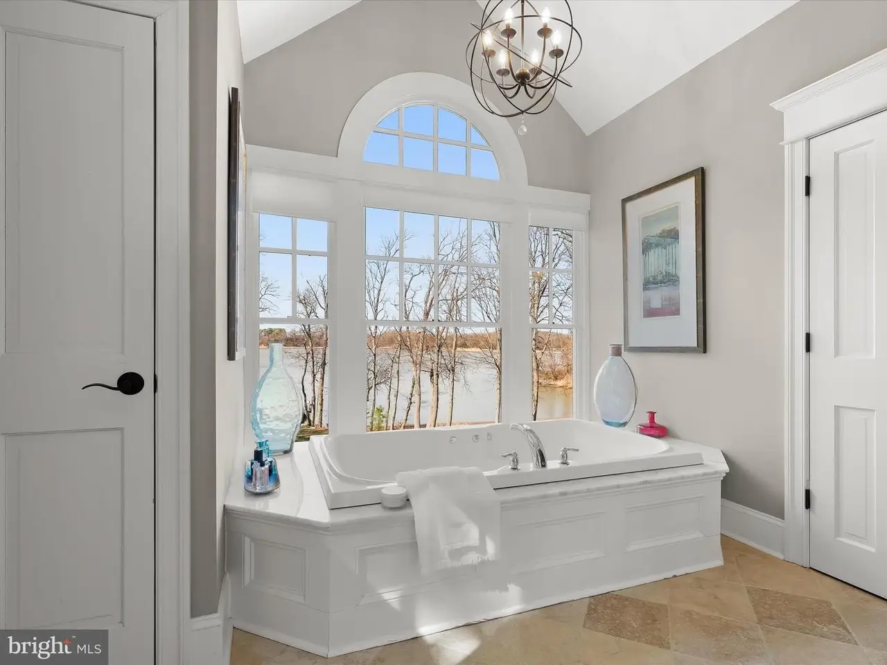 Experience unparalleled waterfront living in this stunning Coastal Farmhouse situated on 13.2 private acres in the desirable Kennersley Farm community. Custom-built as a former builder's residence, this home showcases the highest quality materials and exceptional craftsmanship throughout. With 8 bedrooms and 6 full baths in the main house, plus a charming 2-bedroom Carriage House with a full kitchen and bath, this estate offers expansive space for family and guests to gather. The detached stone carriage house is located over a 2-car side-loading garage with a conditioned work/storage room. Step inside the main house to find meticulously designed interiors featuring low-maintenance hewn pine hardwood floors, 8-inch wood base, solid wood doors, and raised wood panel wainscoting. The waterside family room is a true showstopper with a coffered ceiling, stone fireplace, a designer mantle, built-in media, and panoramic views. Entertain effortlessly in the central gourmet kitchen with waterside access or enjoy vibrant indoor games in the oversized adjacent recreation room. Later, a quiet vibe will draw you to unwind in the main-level ensuite with an attached sunroom offering access to a serene side deck for a good read or morning coffee. With thoughtful design and attention to comfort and convenience, this home includes both main-level and upper-level laundry rooms, a finished attic bonus bedroom with a sitting area and a half bath, and endless customization possibilities for a future expansion in the unfinished basement with an exterior door and walk-up stair. Outdoor living is paramount with 450 feet of private navigable waterfront along Southeast Creek and views of the Chester River. A private dock equipped with water, electric service, 2 slips, and 2 ski lifts makes boating fun and accessible. Enjoy summer days by the waterside saltwater pool, complete with a paver patio, diving rock, and a 10-foot diving well. Evenings can be spent by the waterside stone fire pit or on the tiered covered porch and upper balcony overlooking the water. Nature enthusiasts will appreciate the natural shoreline, kayak launch, mature trees, and the presence of mated bald eagles. Professional landscaping and outdoor lighting enhance the estate's beauty, while a private lane with a security alarm ensures seclusion. Perfectly situated near Kennersley Point Marina and other nearby marinas, this location offers convenient access to Chestertown, Rock Hall, and Annapolis by boat, as well as MD 213, Rte-50, and Rte-301 by car. This fully furnished home is an entertainer's dream and a rare waterfront oasis-schedule your private tour today!