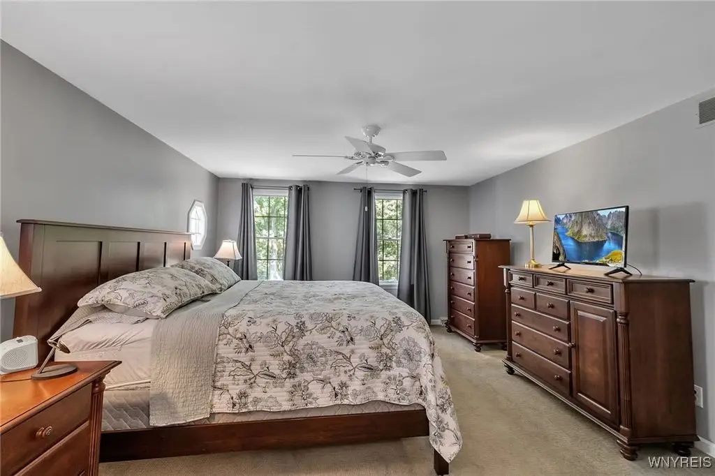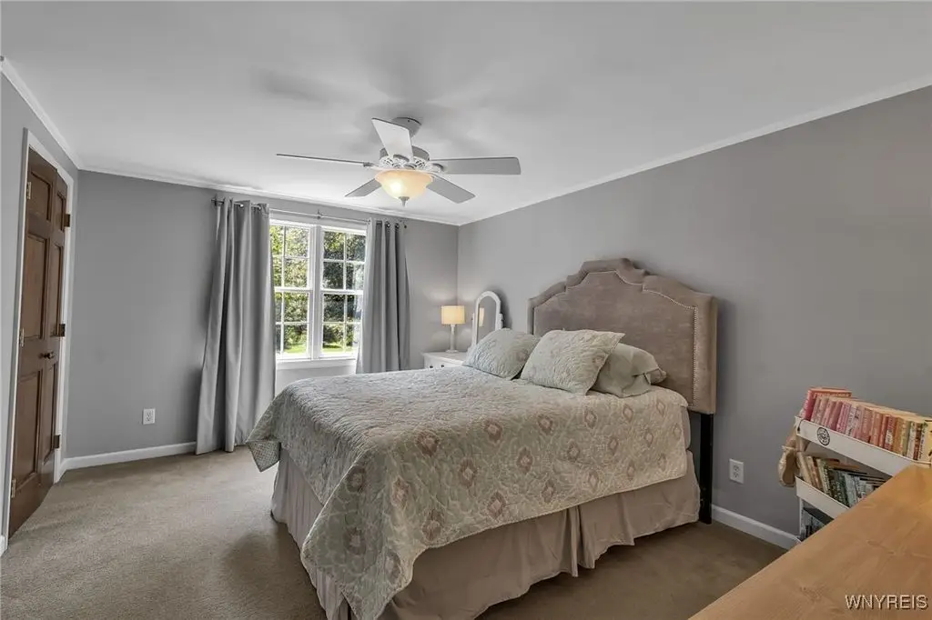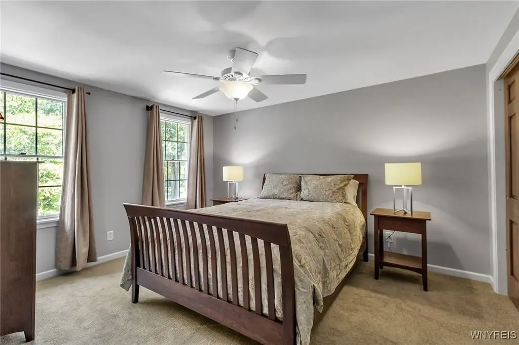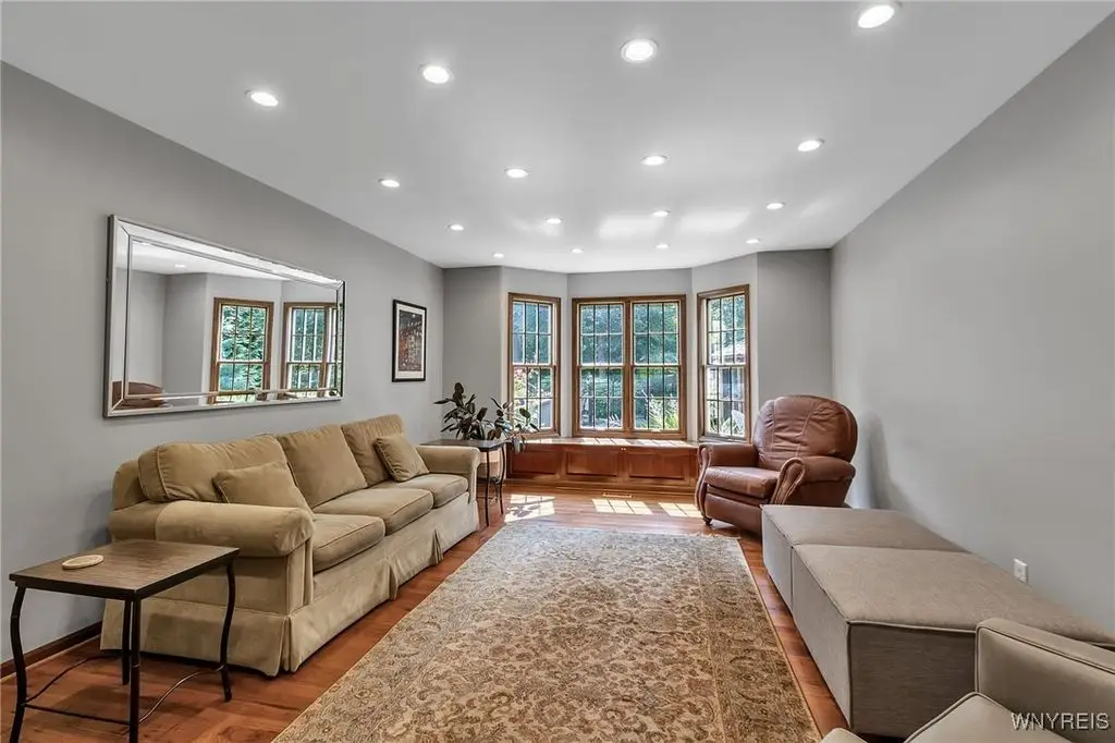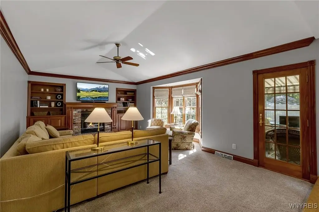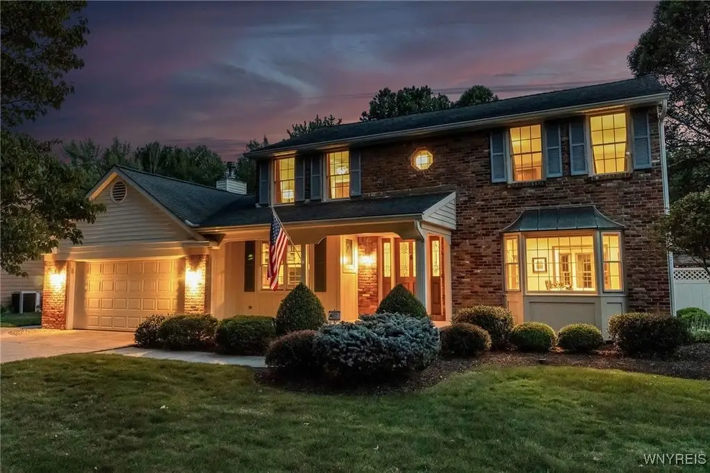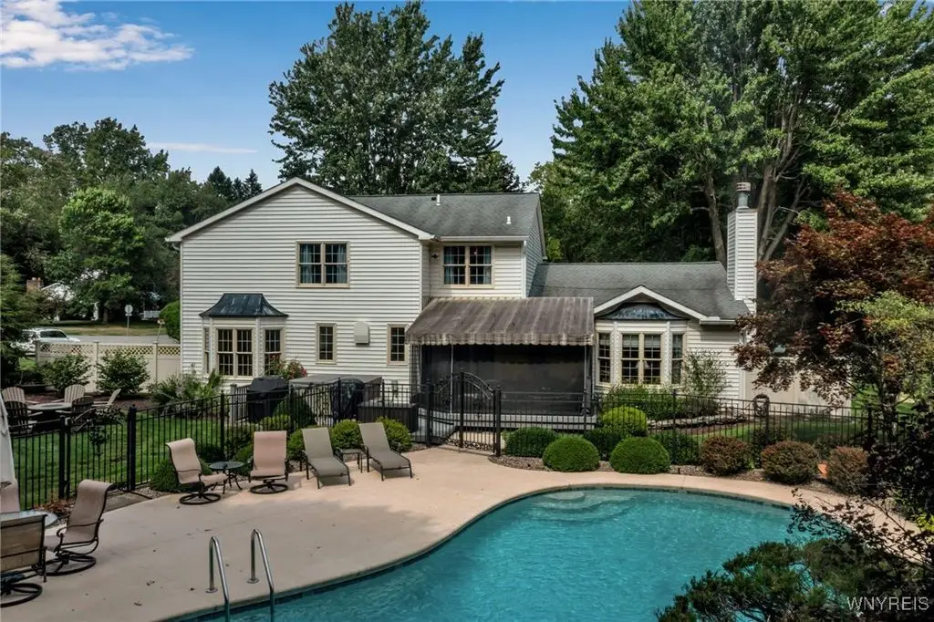 Welcome to this magnificent 4-bed, 2 full & 2 half bath Colonial w/stunning curb appeal that sits on a .97-acre private lot. A welcoming foyer w/hardwoods greets you or your guests as you enter the home through the covered front porch. The den is located off the foyer & features hwd floors, & fabulous California Closets custom built-ins. Kitchen features include hardwoods, Wood Mode cabinets, quartz countertops, under-cabinet lighting, a breakfast bar, a professional line SS gas cooktop & range hood, a newer refrigerator, dishwasher '23, & a lrg eating area. The kit seamlessly flows into the warm & inviting fam room, complete with custom built-ins, a gas fireplace, & a large bay window w/views of the magnificent yard, a perfect layout for entertaining or day-to-day living. Liv & din rooms feature newer hardwood floors, recessed lighting, & elegant bay windows that fill the space w/beautiful natural light. The home has been repainted throughout in lovely, peaceful, current paint colors. The 2nd floor features 4 large bedrooms, including a grand ensuite w/beautifully updated bath & California custom closet. A full split bath is off the hallway & features a whirlpool tub. Home has an abundance of closet space throughout! Step outside to your private backyard oasis. Enjoy the beautifully landscaped, private yard that showcases an in-ground Gunite pool (recently resurfaced) with a tranquil waterfall, and surrounded by Kool Deck concrete for comfort and safety. A Trex deck & a Kohler awning with retractable screens provide ideal spaces for outdoor relaxation or gatherings. Additional outdoor features include a hot tub, a charming gazebo with electricity, a storage shed, & a 30' x 60' sports court with w/professional turf and lay-flat drainage underneath. The lower level is partially finished w/3 areas to enjoy watching television, working out or relaxing. Additionally, there is a 1/2 bath & ample storage area. Add'l features include a whole-house generator, irrigation system, custom Bali solar shades, & a new smart garage opener w/camera in '23.Located in the highly sought-after Wmsvl School District. Superb location near all conveniences! This home truly has it all!