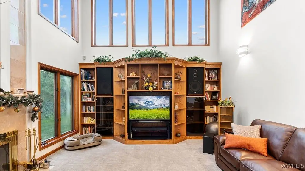 Constructed atop the Onondaga Escarpment, this wondrous property now awaits YOUR family. Perfect for guests, natural light pours in 10 ft-high rooms, with privacy to the rear. Spacious, bedrooms with solid wood doors and walk-in closets. Home may also live as a ranch; good for all mobilities! Start your day in the breakfast-friendly kitchen, relax in your office/den, or in the privacy of your patio and huge backyard. All appliances and three gas fireplaces are in perfect working order. Built on rock, the dry basement boasts enough storage and game space - with a lovely theater for movie night. Updates from 2024 include high-efficiency furnace and central A/C, granite master bathroom, sliding glass door, and garage floor. Difference of 216 in sq. ft (4,107 sq. ft. - 3,891 sq. ft.) is indicated on the home's blueprints.