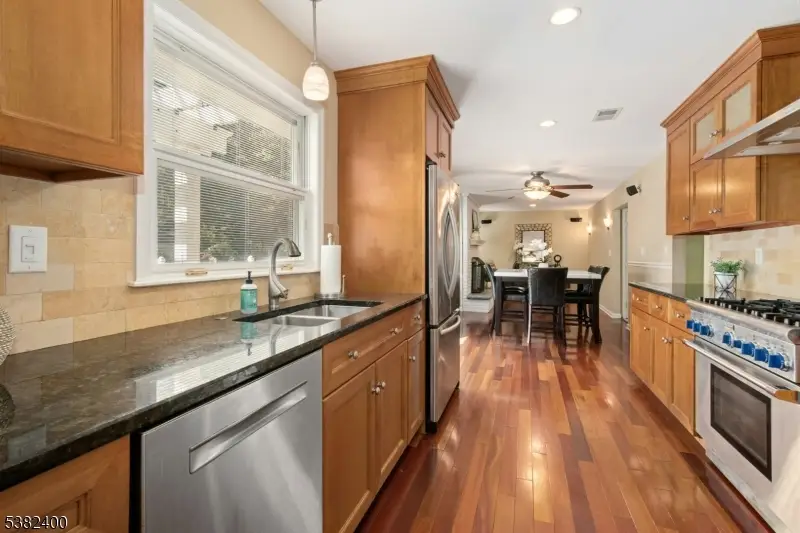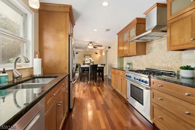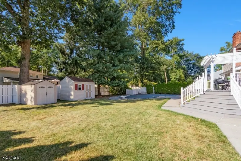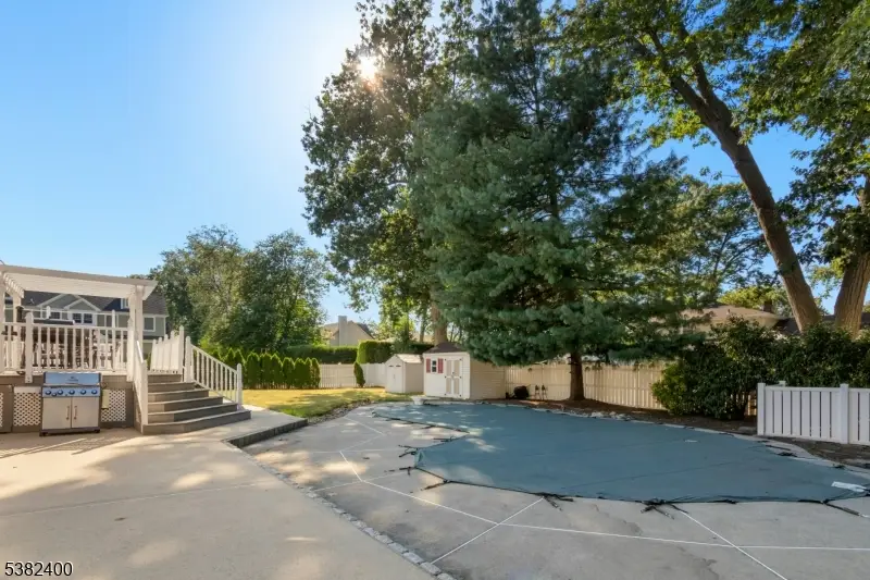 Located on a large corner property in a prime neighborhood, this beautifully maintained home offers space, style, and comfort. A charming sitting porch and double door entry welcome you into a spacious foyer. The formal dining and living rooms feature gleaming hardwood floors, perfect for entertaining. The chef's kitchen includes stainless steel appliances, granite countertops, and ample cabinetry, and it opens seamlessly to a cozy family room with a large stone fireplace. Off the kitchen, you'll find a convenient laundry room with garage access.Double doors lead to a custom deck with a pergola, overlooking a sparkling concrete heated saltwater pool, shed, and professionally landscaped backyard ideal for outdoor living.Upstairs offers four spacious bedrooms, each with walk-in closets and custom organizers. The primary suite includes a large walk-in closet and an en-suite bath with double sinks and a stall shower. A stylish main bath serves the additional bedrooms.The finished basement adds incredible bonus space with a rec room, home office, and flexible area perfect for a gym or playroom. A 2-car garage completes this exceptional home. With its thoughtful layout, high-end finishes, whole house generator and unbeatable location, this property checks all the boxes.