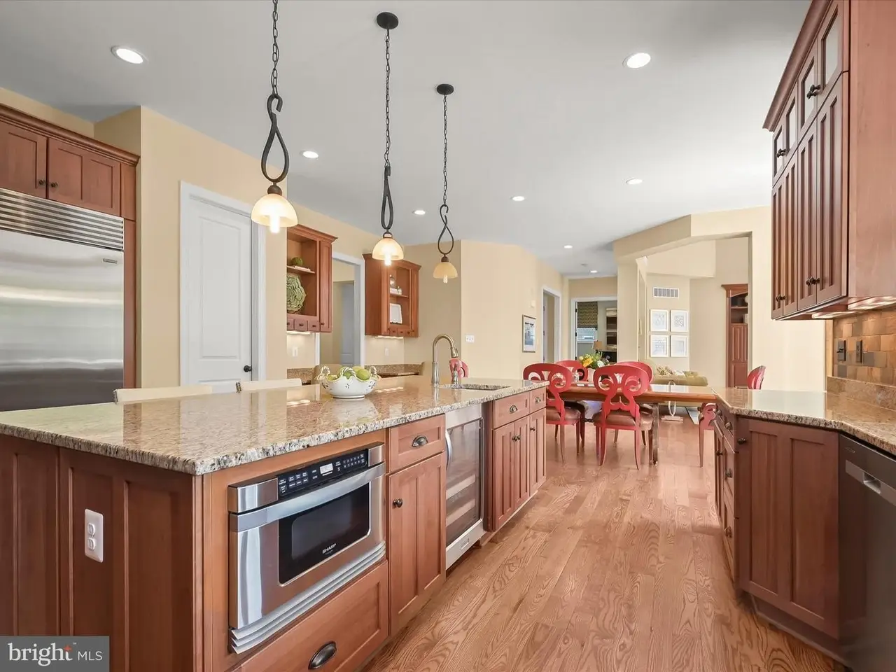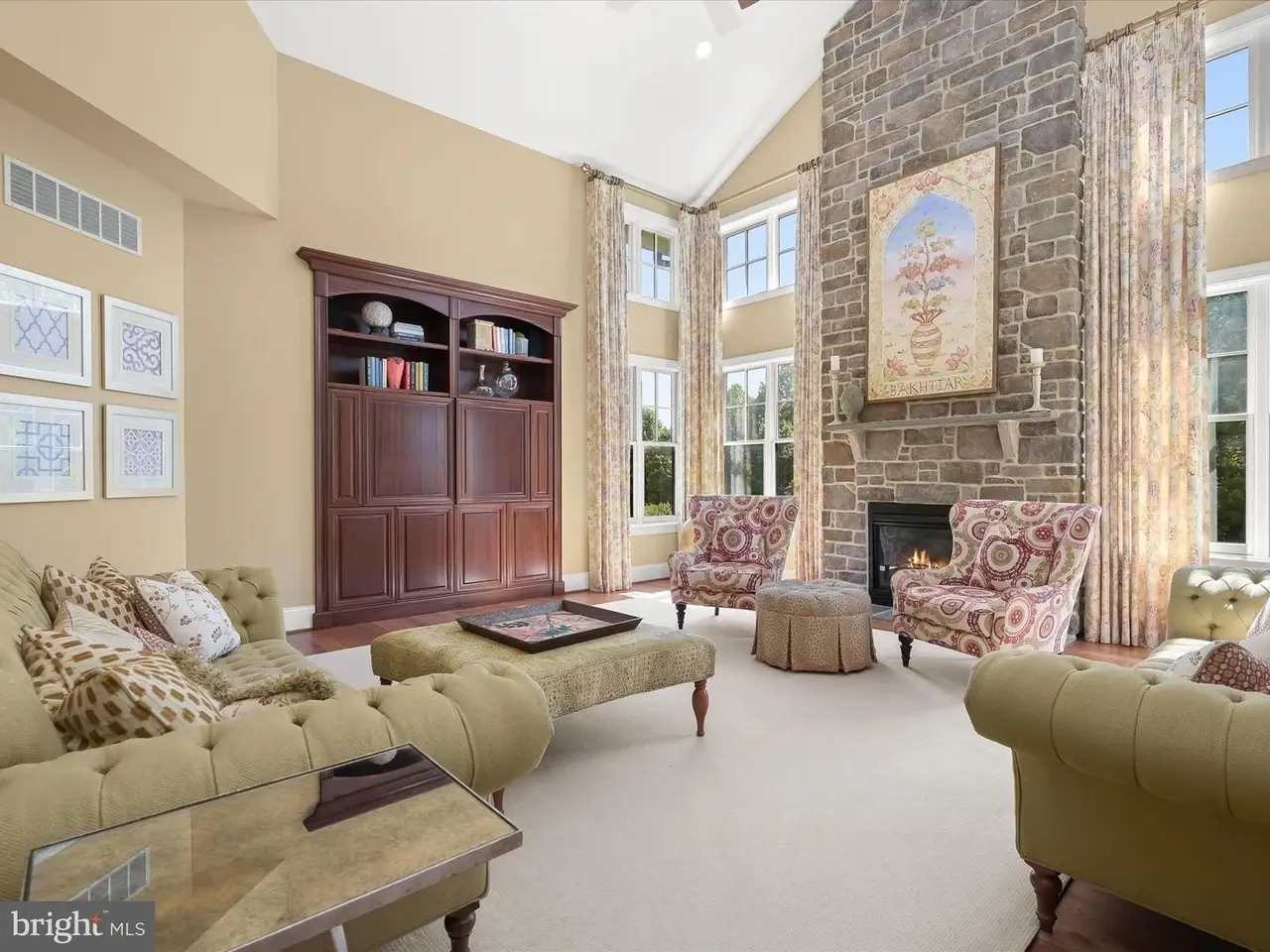 This exceptional custom Craftsman home has been meticulously maintained by its original owners and offers an unparalleled blend of luxury and functionality. The home boasts a stunning heated saltwater pool and a charming portico front entry that welcomes you into a world of elegance. Inside, beautiful hardwood floors flow throughout, enhancing the formal living room with its gas-burning fireplace and crown molding. The formal dining room provides an ideal space for hosting gatherings, while the gorgeous kitchen features professional-grade appliances, an expansive walk-in pantry, and a casual dining area. The two-story great room is a centerpiece, showcasing custom-built shelving and a gas-burning, stone-accented fireplace. A main-level library, complete with a full bath, hobby room, and private balcony, serves as an ideal in-law or Au Pair suite. A second home office provides a dedicated space for remote work. Dual staircases lead to the impressive primary suite, adorned with two walk-in closets and a luxurious bath featuring double vanities, a soaking tub, a water closet, and an oversized shower. The upper level is completed by four generously sized bedrooms, each with access to an en suite or dual-entry bath. The lower level offers an entertainer's dream, including a recreation room with a custom bar, a game room, a media room, a full bath, and ample storage. A separate above-garage apartment provides fully finished space, ready for customization with a kitchen if desired. The outdoor spaces are equally captivating, with an expansive breezeway and patio featuring bluestone finishes, an outdoor fireplace, and a grilling station. The magnificent saltwater pool completes this entertainer's paradise, offering the perfect retreat to end your day. Don't miss this opportunity to own a home of pristine perfection. Backs to acres of HOA and open space