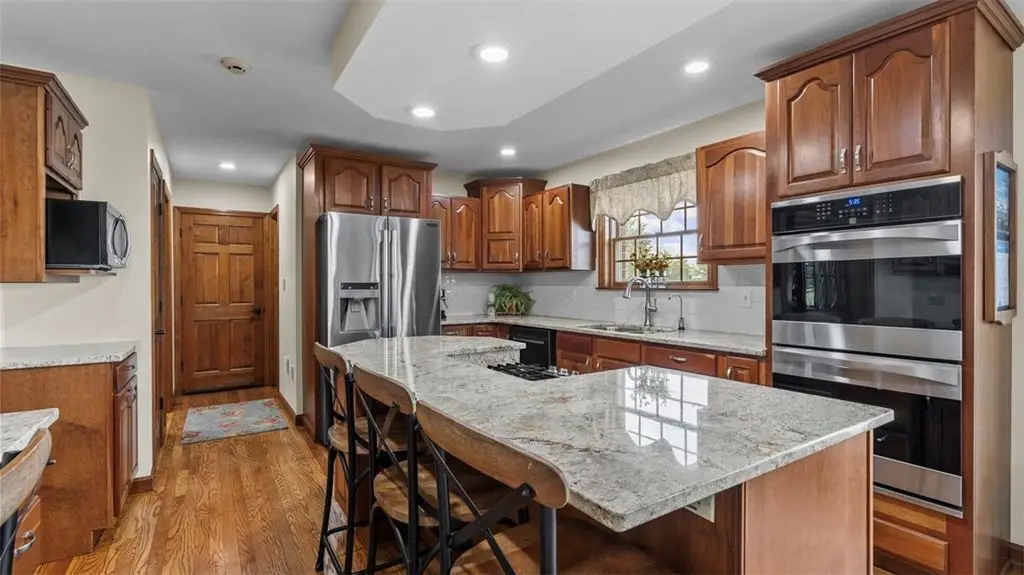 Find your escape in this beautiful Countryside Retreat! This stately home has been meticulously maintained with extras & updates galore. Welcome in & see the beautiful stair case & entry area flooded by natural light. Next, find a formal dining area & sunken living room, perfect for a music room or den. The gorgeous kitchen features stainless appliances, hardwood floors, granite countertops, & eat-in area with sliding doors to the pool patio. The adjoining cozy family room is equipped with a gas brick fireplace. Remodeled laundry room also on main floor. Upstairs, notice the large palladium window & seating area. The luxurious Owner's Ensuite was completely remodeled, offering a tiled walk-in shower, custom double vanity, linen closet & Closet by Design system. Ample size bedrooms 2 & 3 have a "secret passageway"! Downstairs find the large game room & workout room. Out back, enjoy the 40x16" pool, spa, & pool house! Detached tandem garage with oversized doors rounds out parking for 8!