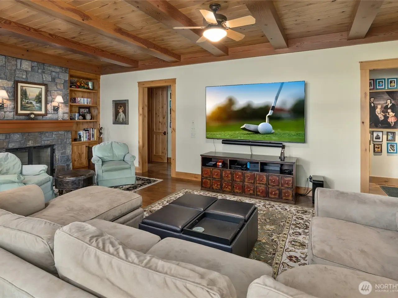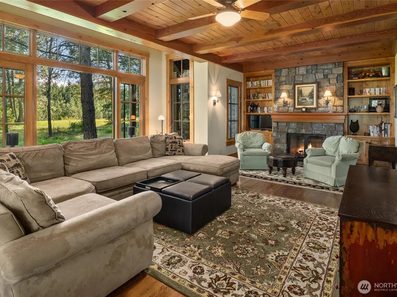 Gorgeous, Elegant home located along 5th Green and 6th Tee Box of the Tumble Creek Golf Course. This stunning 4-bed, 4.5-bath offers timeless Northwest Contemporary design with a perfect blend of style, space, & sophistication. Step inside to an expansive great room with vaulted ceilings and a striking floor-to-ceiling stone fireplace, creating a warm & inviting centerpiece. The extra-large chef's kitchen features two spacious islands, ideal for cooking or entertaining. The main-level primary ensuite offers a private retreat w/ lounge for unwinding in style. Additional highlights include a versatile studio apartment above the garage complete with its own kitchenette, perfect for guests or extended stays. Golf memberships available!