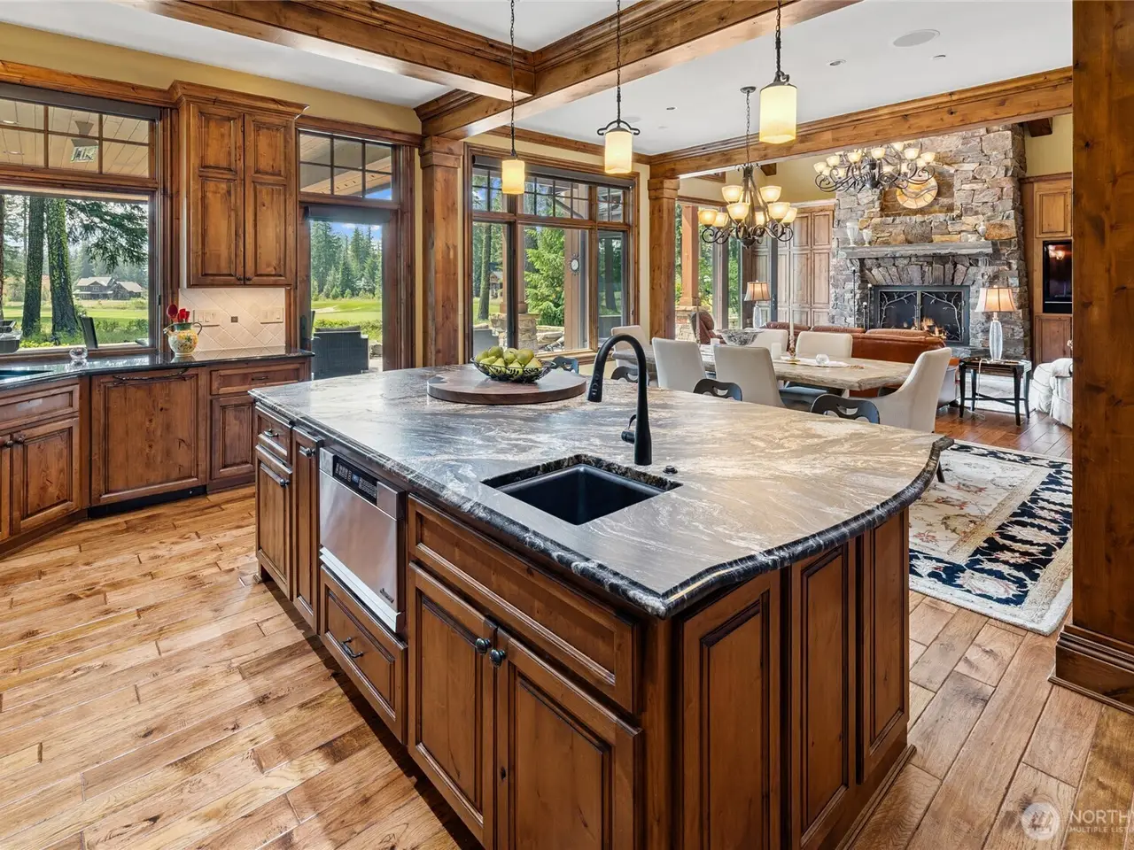 Experience elevated mountain living in this stunning Suncadia home w/a magnificent view of Peoh Point & Rope Rider Golf Course (5&6). This beautifully crafted home offers the perfect blend of luxury, comfort, & functionality. The great room impresses w/soaring vaulted ceilings, a striking stone fireplace & rich Shamrock Hickory hardwood flooring. The spacious main-floor primary ensuite feat. an incredible custom shower, elegant clawfoot soaking tub & premium finishes. Culinary enthusiasts will love the luxury kitchen, feat. Wolf and Sub-Zero appliances, sleek cabinetry & generous workspace. Finally, Step outside to an entertainer's paradise, w/expansive back patio & panoramic views that showcase the best of resort living.