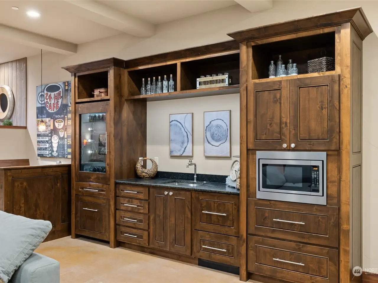 Spectacular 5-Bedroom Estate w/ Mountain Views, Gorgeous Outdoor Living, & Luxury Finishes. Welcome to this breathtaking 7,260 sq. ft. custom estate nestled on a serene 1-acre lot. Featuring 5 luxurious ensuite bedrooms--3 conveniently located on the main floor--this home seamlessly combines comfort, elegance, and functionality. Entertain with ease in the two expansive great rooms, or retreat to the stunning 2,000 sq. ft. covered porch, perfect for year-round outdoor living. Enjoy partial mountain views as you grill in the fully lighted and heated BBQ area, or relax by the tranquil waterfall. The beautifully landscaped grounds offer a private bocce court, covered hot tub w/ mature trees & lush gardens creating a peaceful, park-like setting.
