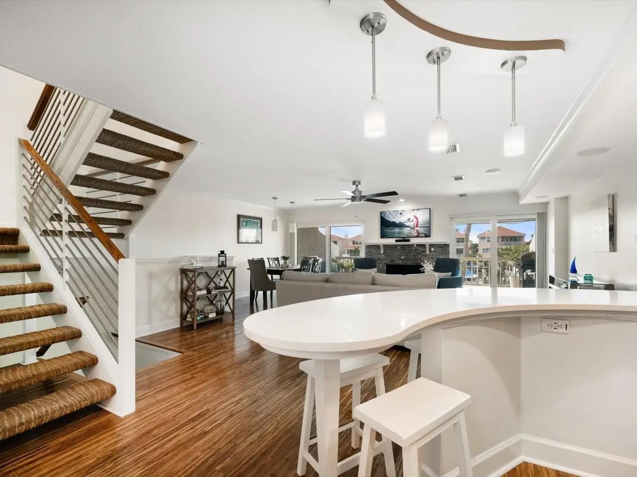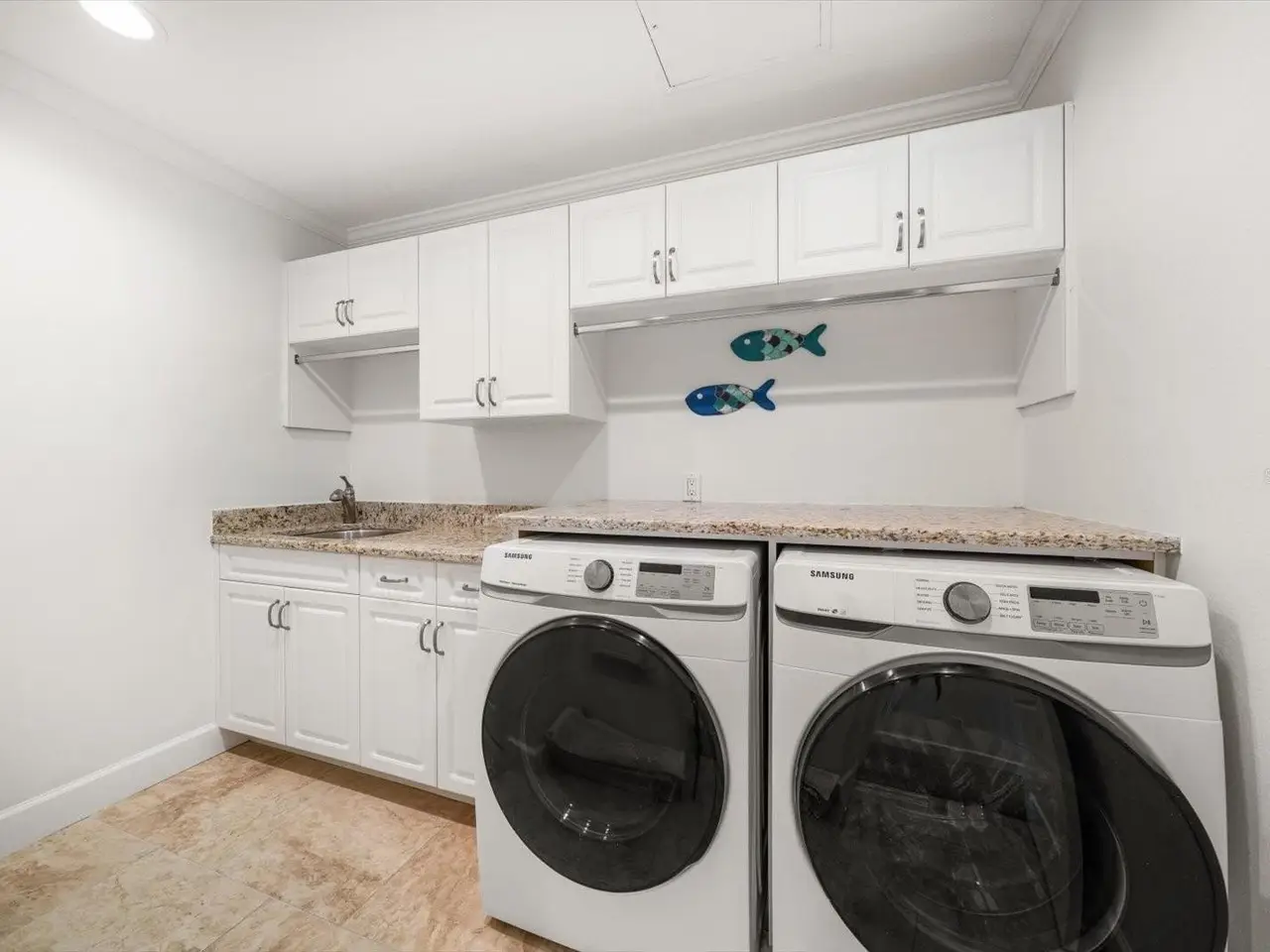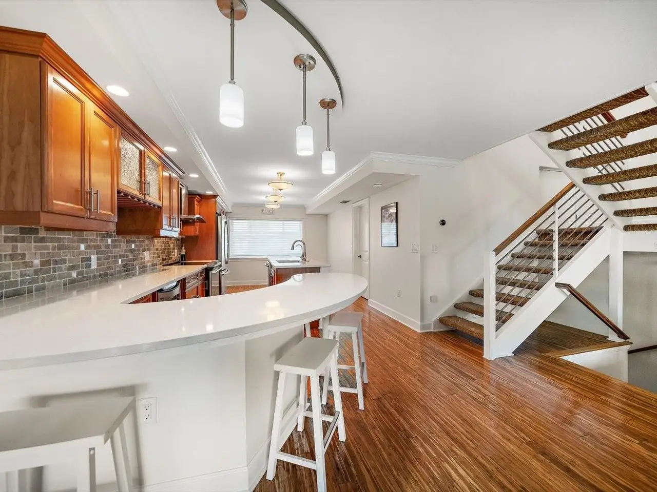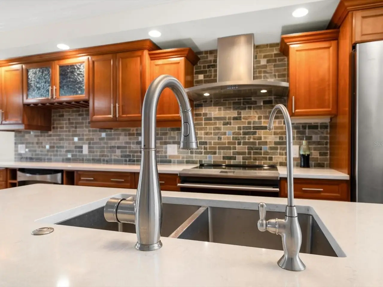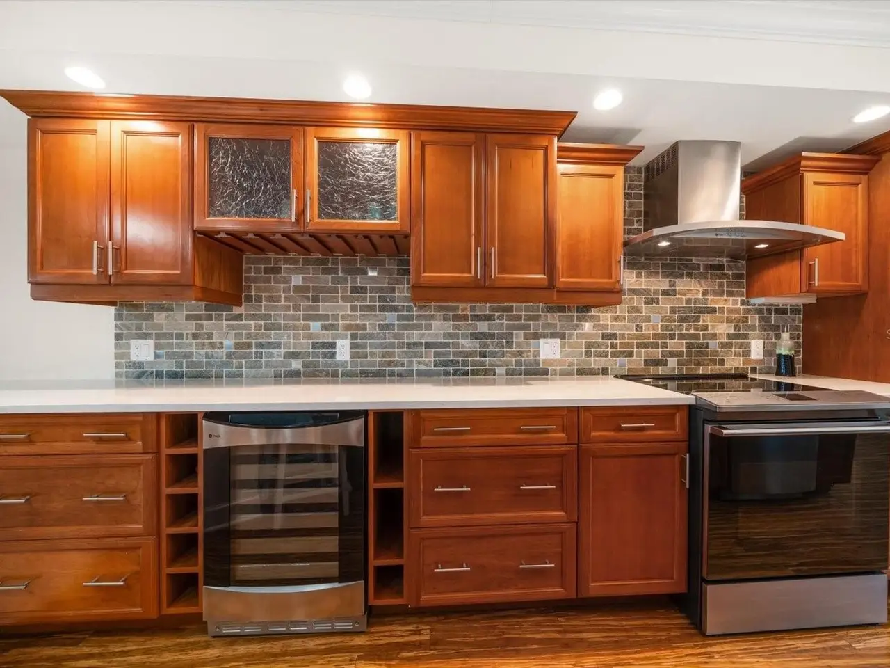 - Expertly customized kitchen with Cambria quartz countertops and wine refrigerator