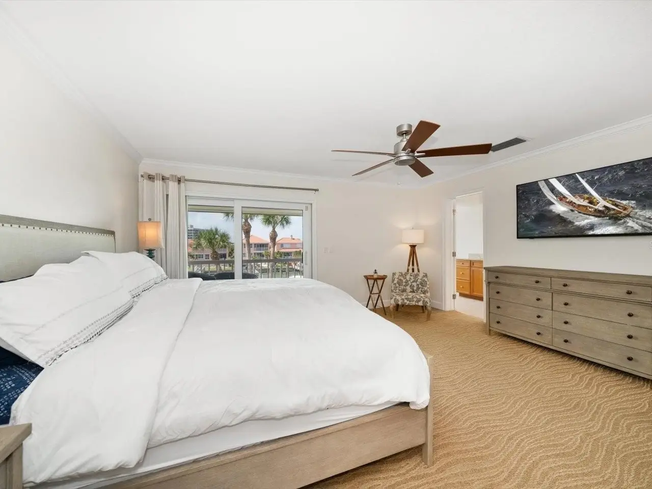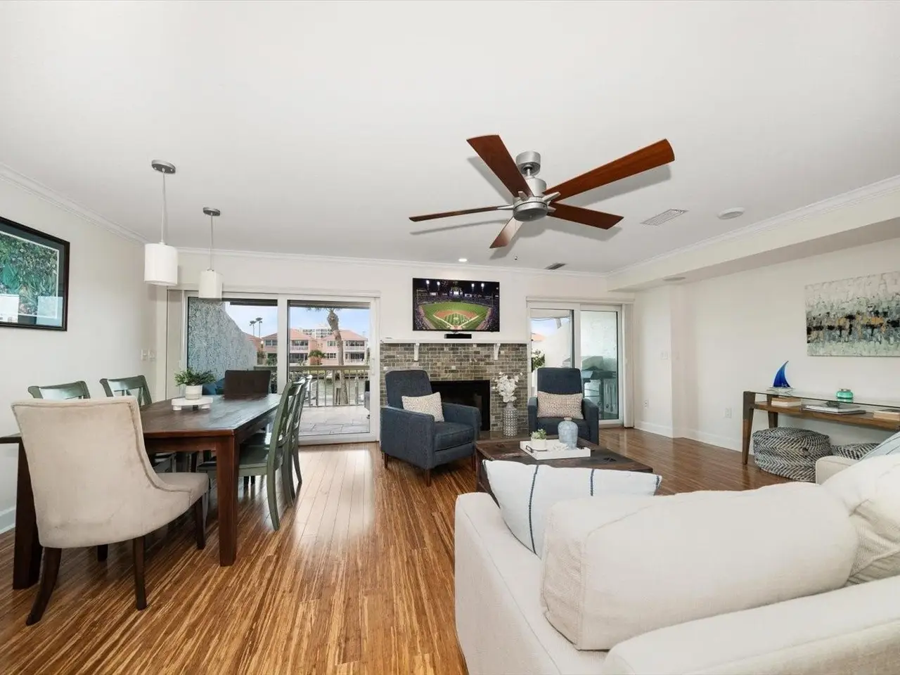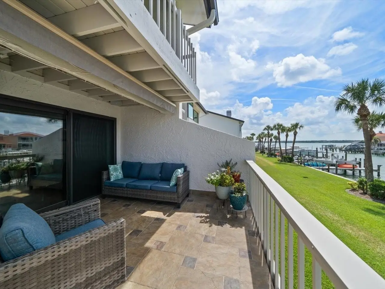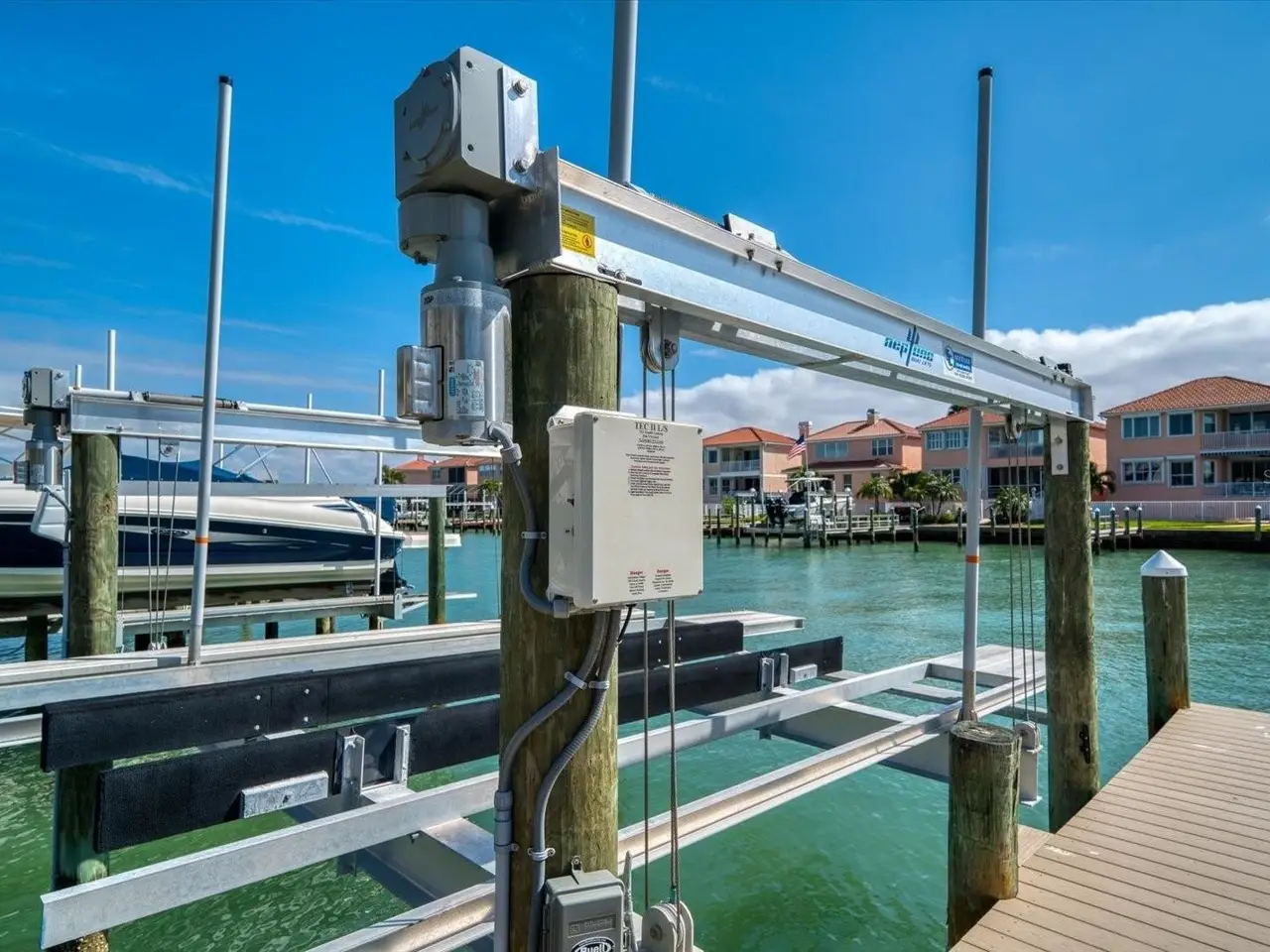 Located just south of Clearwater Beach on scenic Sand Key, this exquisite townhome in Marina del Rey blends coastal elegance with functional design and modern upgrades. Positioned along protected deep-water harborage, the property offers exceptional boating access and year-round sun exposure on its desirable south side. The main living floor features an expansive great room filled with natural light, an office or guest bedroom with a half bath, and an expertly customized kitchen designed for entertaining, featuring Cambria quartz countertops, a semi-circular breakfast bar, a separate island, detailed cabinetry, and a wine refrigerator, which contribute to a high-end culinary experience. From the main balcony—fitted with an electronically operated sunshade—residents can enjoy tranquil Intracoastal views. Upstairs, the spacious primary suite includes a private balcony, a large walk-in closet, and a luxurious en-suite bath complete with a jetted tub, walk-in shower, and dual vanities. An additional guest bedroom with an en-suite bath and a full laundry room completes this level. The ground floor offers a flexible bonus space with its own private entry, ideal for use as an office, fitness studio, or a fourth bedroom. This level also includes an en-suite full bath with a steam shower, offering both comfort and versatility. Other attractive finishes include crown molding, a fresh palette of modern, brighter paint colors throughout the interior, and bamboo flooring that flows seamlessly throughout several areas of the home. A private dock—just steps from the ground-level bonus room—features a 20,000 lb boat lift, composite decking, water, and electric service.. This pet-friendly townhome community offers a stellar location—steps from the heated pool and private beach access, and minutes from shopping, dining, and all the amenities of Clearwater Beach. Perfect as a primary residence or a low-maintenance second home, this Marina del Rey property delivers the best of boating, beach, and upscale coastal living in one beautifully updated package.