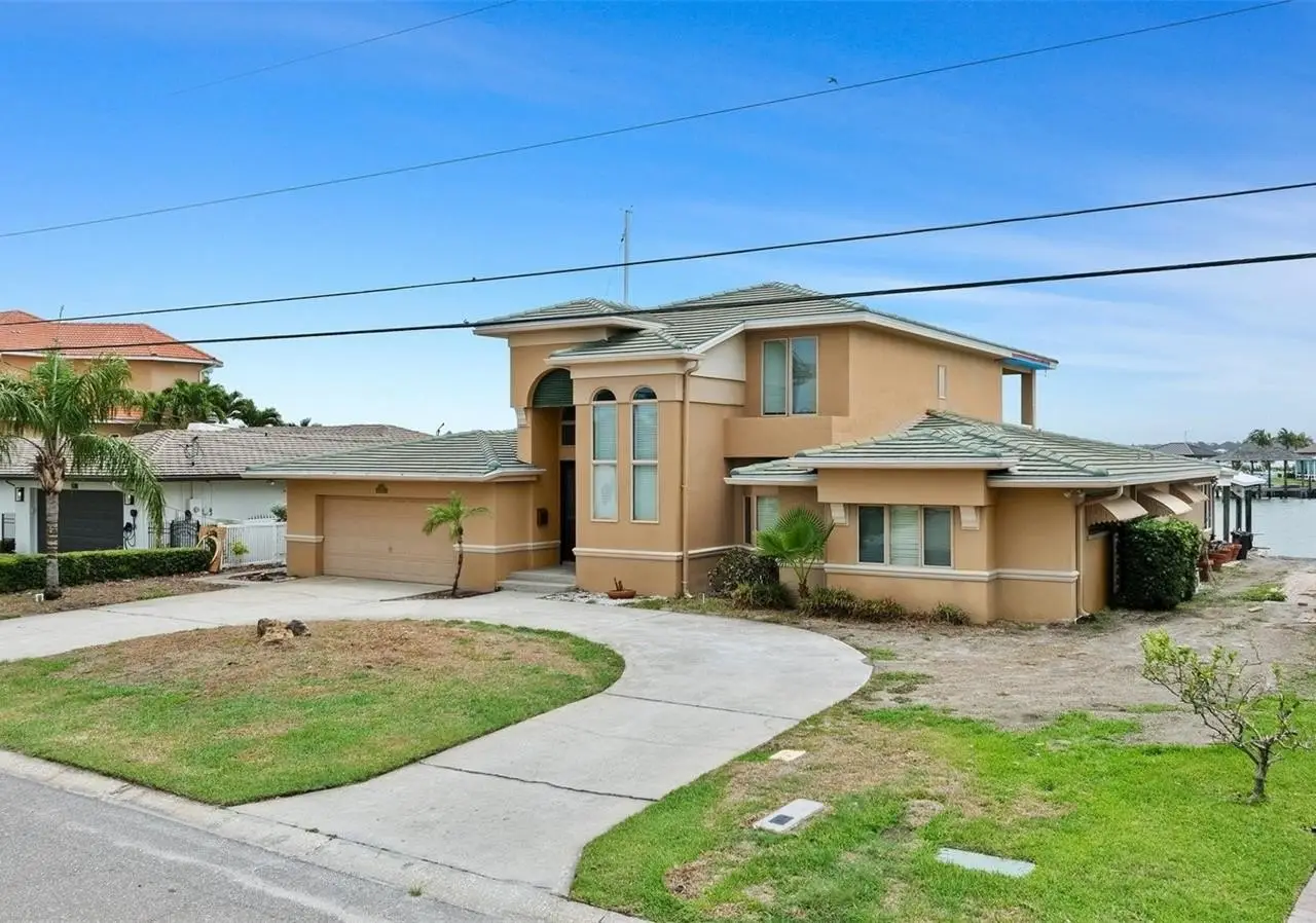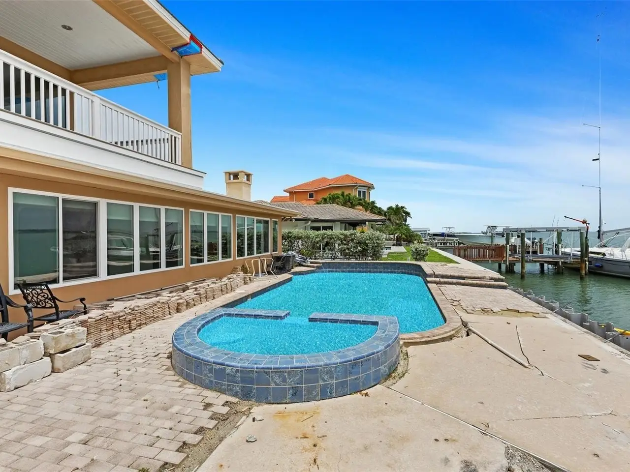 One or more photo(s) has been virtually staged. Create your waterfront dream home on Island Estates! This rare open water property offers breathtaking open Intracoastal views, over 80 feet of prime water frontage—ideal for boating, panoramic views, and maximizing your waterfront lifestyle, a brand-new seawall (2025), and deep-water canal access—bring your boat and enjoy quick Gulf access. The existing 3-bedroom, 3.5-bathroom home with an dem/office and 2-car garage features a private upstairs primary suite with en suite bath and its own balcony overlooking the water. The home was professionally remediated after flooding—dry, structurally sound, and ready to be beautifully renovated or reimagined to suit your style. Enjoy a pool and jacuzzi (virtually staged) overlooking the water. A large covered dock makes for the perfect waterfront setup. Major updates include a new AC (2024), roof (2019), and most windows and doors updated in 2020. Located in a golf cart-friendly island community, just minutes from Clearwater Beach, dining, shopping, and the Clearwater Marine Aquarium. Sold AS-IS—bring your vision to life! Some pictures have been virtually staged.