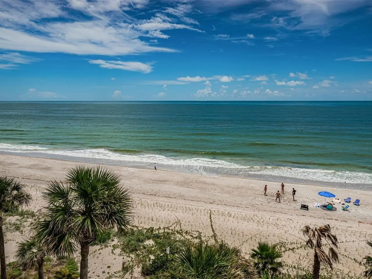 STUNNING GULF FRONT UPDATED HOME in prestigious Dans Island on Sand Key Beach. This BEACHFRONT unit is ideally located in the northwest corner with SWEEPING 180 DEGREE VIEWS of the Gulf of Mexico, powder white sandy beaches, city lights, the Intracoastal Waterway and stunning nightly sunsets from your approximately 60-FOOT WRAPAROUND BALCONY. Elegance abounds as you enter through the 24-hour secured guard gate and take in the meticulously maintained grounds, impressive architecture and Gulf front pool and clubhouse. You will have continued peace of mind entering the fully secured building and parking in your RARE DEEDED UNDER BUILDING PARKING SPACE (approx. value $100k). When the elevator doors open on the 5th floor, you are immediately greeted with floor to ceiling Gulf views to welcome you home. Double entry doors open on to your elegantly appointed home with an open, sun filled floor plan featuring a spacious living room and dining room with stunning LUXURY VINYL PLANK FLOORING, REMODELED galley style kitchen featuring high end GE PROFILE stainless steel appliances, QUARTZ countertops and an EXPANDED breakfast nook to sip your morning coffee while enjoying the seabreeze and listening to the waves. The home offers incredible water views from each room accentuated by the IMPACT RATED sliding glass doors and windows. Your primary suite is generously sized with open beach views, a walk-in closet and ensuite bathroom featuring dual sinks, a garden tub and separate shower stall. For privacy, the floor plan offers a split bedroom where your guests can enjoy gorgeous water views, a walk-in closet and private bathroom. The laundry room offers a storage closet, utility sink and full size stacking washer and dryer. The Seller has invested over $140k in upgrades including a new HVAC (2017), HOT WATER HEATER (2016), INTERIOR PAINT AND CROWN MOLDING (2016), LUXURY VINYL PLANK FLOORING IN FOYER, LIVING/DINING ROOM AND BOTH BEDROOMS (2019), HURRICANE IMPACT RATED DOORS AND WINDOWS (2022), REMODELED KITCHEN WITH QUARTZ COUNTERTOPS AND GE PROFILE APPLIANCES, (2021), WATER SOFTENER (2023). There is a storage closet outside the front doors and another by the elevators. Dans Island offers its residents luxurious amenities including a heated pool & spa, 24-hour guard gate, grill areas with private eating areas, private beach access, separate clubhouse with basketball court and fitness room. The top floor of the clubhouse has a full kitchen, pool table & two balconies overlooking the sugary sands of the Gulf. MILESTONE INSPECTION AND RESERVE STUDY HAVE BEEN DONE WITH NO ISSUES. Welcome home!