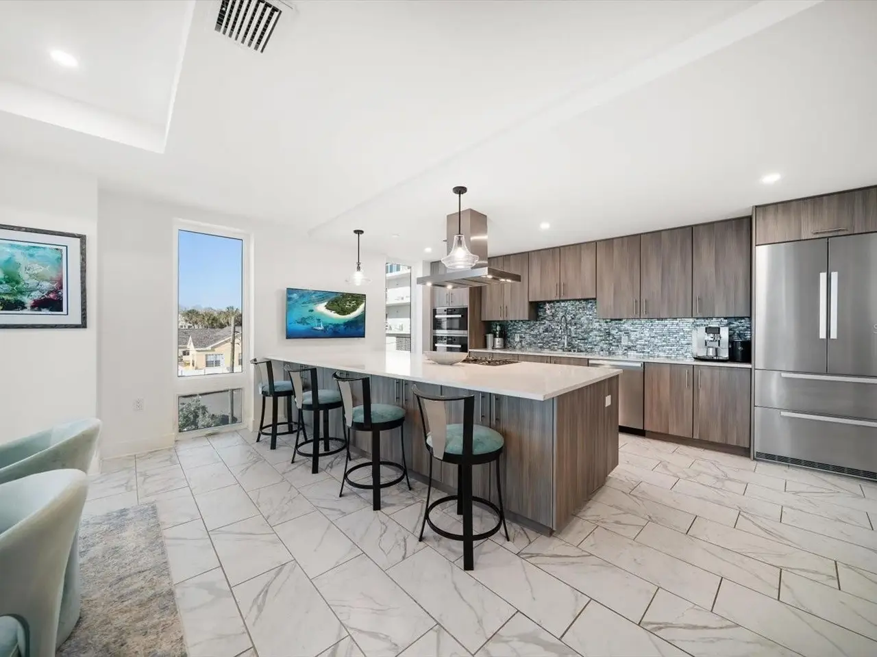 Experience the perfect fusion of luxury, coastal serenity and area vibrancy at Pura Vida Residences. Built in 2020, this exclusive community of just 22 private residences stands as one of the most recent additions to the tranquil, North end of award-winning Clearwater Beach yet is conveniently close to boutique shops, marine adventures, and a diverse array of dining options, from fine dining for special occasions to laid-back beachfront eateries…this is coastal living at its finest. Offering the largest floor plan in the building with 3,111sf, 4 bedrooms, 3.5 bathrooms, 10’ ceilings plus open concept living space, unit 303 is an exquisite and spacious NW corner residence offering comfort, style and refined living. Direct West facing floor-to-ceiling impact windows, sliders, and glass paneled balconies allow an abundance of natural light and seamlessly blend beach and Gulf views from the entire kitchen, living and dining areas, offering a front row seat to possibly some of the most spectacular sunsets you will ever see. Secure, direct elevator access opens to a dedicated foyer, where double doors lead you into this elegant coastal retreat. Art enthusiasts will appreciate the expansive hallways, ideal for showcasing personal collections. Premium features include Miele appliances, a 5-burner gas stove, sleek European-style cabinetry, oversized kitchen island with quartz countertops, tile flooring throughout, designer finishes, custom closets, motorized cellular shades (primary suite) and whole-unit water filtration. Select furniture pieces available, and all 7 wall-mounted flat-screen TVs convey. Conveniently located, private, climate controlled, 8x8 (approx) storage unit. Secure, gated entry to the building, 2 assigned under-building parking spaces (pre-wired for an electric vehicle charging station) located close to the lobby access. Personal beach locker for easy access to fun in the sun at your doorstep. Building amenities include heated pool with flow resistance, spa, club room, fitness center, indoor bike storage, key fob and digital security for doors and elevators, building back-up generator and 24-7 video security. Pro-active and professionally managed Association. Pet friendly building (1 pet under 30lbs). One month minimum rental. Don’t miss this rare opportunity to claim your elegant slice of paradise on Clearwater Beach.