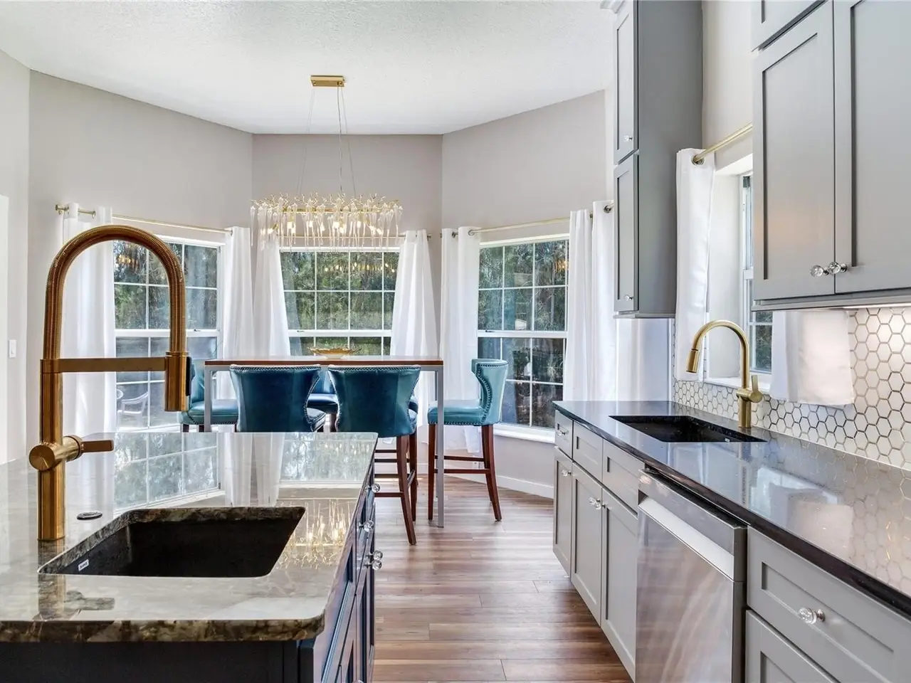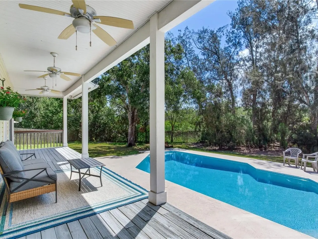 STUNNING 4-BED, 3-BATH POOL HOME ON A PRIVATE CUL-DE-SAC Welcome to 1851 Juanita Ct, a stunning and spacious two-story home tucked away on a quiet cul-de-sac in the heart of Clearwater. This beautifully updated 4-bedroom, 3-bath residence offers over 2,800 square feet of living space and is perfectly designed for comfort, style, and entertaining. Set on an oversized lot with no rear neighbors and surrounded by mature trees, the home provides rare privacy and a peaceful natural backdrop. Step inside to find soaring ceilings, wood-look flooring throughout, and abundant natural light that highlights every detail. The open-concept layout features a formal living room and dining area with elegant lighting. The fully renovated kitchen is a true showpiece, equipped with soft-close shaker cabinetry, granite countertops, stainless steel appliances, double ovens, a designer backsplash, and a large center island. The sunny breakfast nook overlooks the expansive backyard and sparkling pool, creating a perfect setting for morning coffee or casual dining. The first floor also includes a full guest bedroom and bathroom, ideal for a home office or in-law suite, as well as multiple living areas and a well-appointed laundry room with custom cabinetry. Upstairs, the luxurious primary suite impresses with vaulted ceilings, triple bay windows, a sitting area, and private French doors that lead to a large covered balcony with serene views of the trees and water beyond. The primary bath offers a spa-like experience with a jetted tub, custom tile walk-in shower with a expansive walk-in closet. Two additional bedrooms upstairs share access to the wraparound balcony and feature ample closet space and sliders. The home’s thoughtful layout also includes a bonus flex room and an oversized three-car garage with additional storage space. Outdoors, the fully fenced backyard is a private oasis with a generous pool deck, lush lawn, and direct views of the creek and a peaceful wooded preserve. This home combines exceptional value with unmatched character and functionality. Located just minutes from Clearwater Beach, downtown Dunedin, top-rated schools, shopping, and dining, 1851 Juanita Ct is truly a rare find and move-in ready.