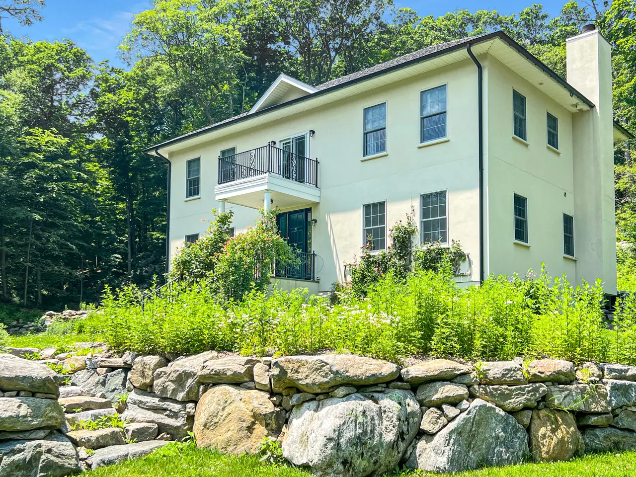 Modern Farmhouse recently built by a local craftsman. Situated on over 9 acres, this four-bedroom home has many custom details including 9' ceilings throughout, recently refinished wood flooring, custom trim and cabinetry, and built-in closets. Light and bright, the heart of the home is the open-concept chefs kitchen with magnificent walnut island and matching walnut shelving, Viking appliances, generous storage, walk-in pantry, wine fridge. Two gorgeous stone fireplaces in the dining and living rooms, arched doorways, solid wood doors, stone counters and quality oil-rubbed hardware throughout the home. The primary suite has a private nook and balcony, an open double shower, large soaking tub, double sinks, dressing table, radiant floor heat, and a functional walk-in closet. The upper level has three additional bedrooms and laundry, and a generous bathroom. Below, a large walkout flex space (office, playroom, den...) has a full bath, radiant heat, and lots of storage. This custom home nestles into a dramatic rocky hillside with stone walls, a large flat yard, gorgeous perennial plantings, and a fenced vegetable garden, with areas for your bonfire pit and even a future pool. This Cold Spring gem is just perfect for entertaining and built-to-last. Other assets include high-efficiency heating and cooling systems, a well-insulated home envelope, low energy costs, an automatic whole-house backup generator, on-demand propane heater, large hot water capacity, and two-car garage with storage. Private Road with shared maintenance agreement. Only 10 minutes from either Cold Spring Village (train, hiking trails and shops) or Fishkill. Blue Ribbon Haldane Schools!