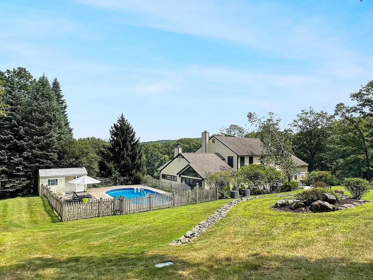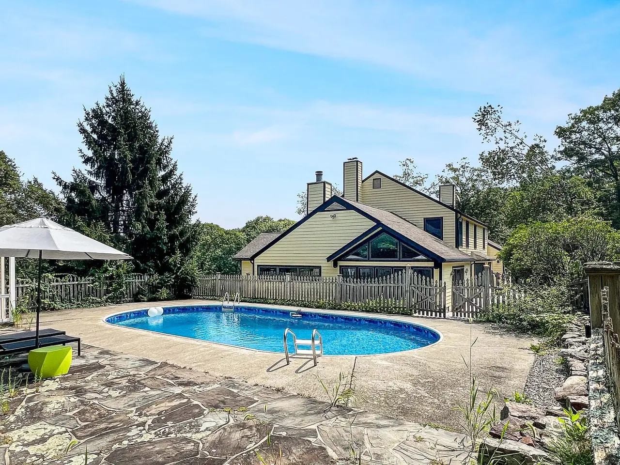 One-of-a-kind hilltop estate in the Haldane School District. Spacious, private, and picturesque getaway just minutes to Cold Spring Village. Proudly perched on almost 10-acres of Hudson Highlands woodlands, this well-appointed home is the idyllic setting for entertaining and country living. A magnificent chef's kitchen is surrounded by a formal dining room, billiard room/library, family room, sunken living room with huge gable windows, are all light-filled and elevating. There is also a bonus playroom and private office for the perfect work-from-home situation. Two separate powder rooms and laundry also on the first floor. A private second floor has a primary suite, three additional bedrooms, and hall bath. The basement is great for storage, a wine cellar, and was once a small gym. Relax overlooking the mountains of Fahnestock Park, Glynwood Farms, Stonecrop Gardens and the Equestrian Center from the magical screened front porch. Spend lazy afternoons beside the lovely inground pool just off the large back Trex deck. For sports enthusiasts, there is also a batting cage and golf green. The property has plenty of flex space, with several outbuildings for cars or perhaps studio space. Nature is all around, strolling the landscaped perennial gardens, listening to the daily visiting songbirds, taking in the fresh air and admiring the magical mountain laurels, or sitting quietly and hearing the many nighttime owl calls. Get active with plenty of nearby hiking and biking trails, swimming and paddleboarding - all just minutes from Cold Spring's restaurants, shops, entertainment, and schools. Easy access to Taconic, Route 84 and NYC trains. Equipped with a whole-house generator for backup electric, two adjoined water wells, high-capacity stainless steel fuel storage, and alarm system. Home has been freshly painted and waiting for you to move right in!