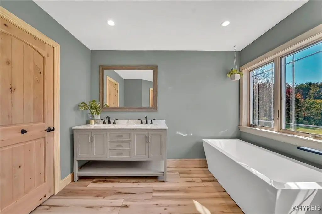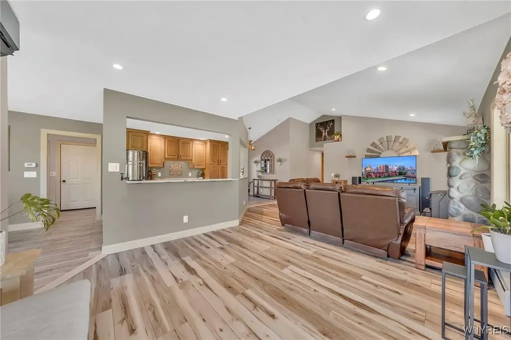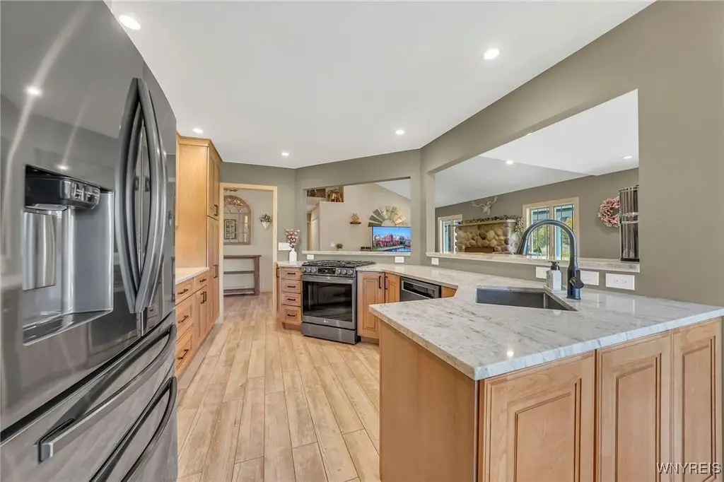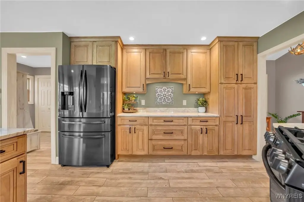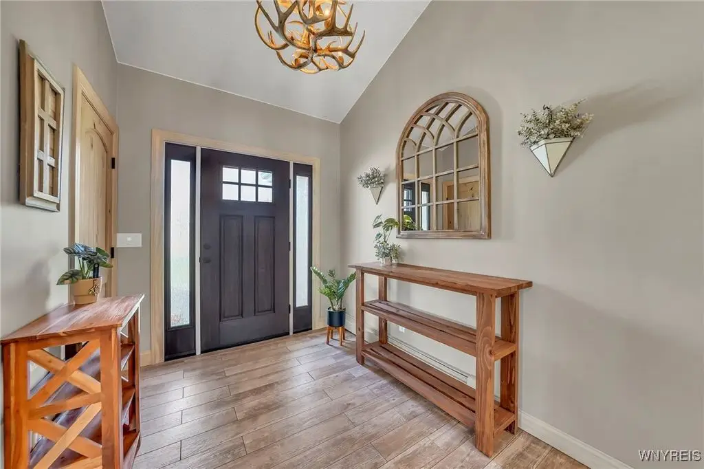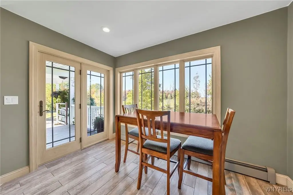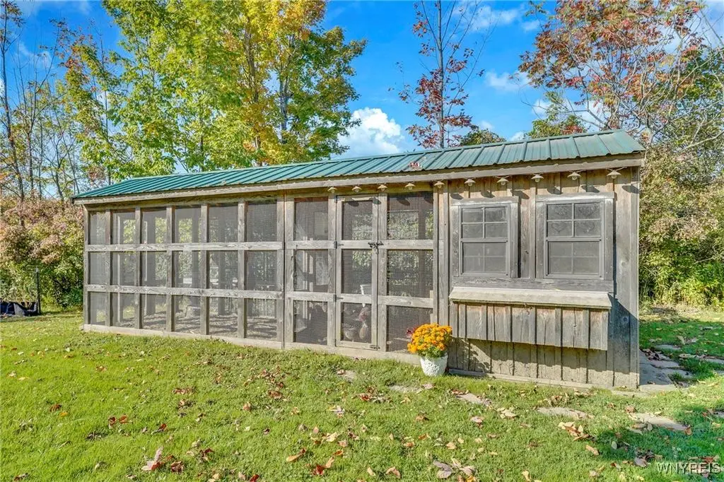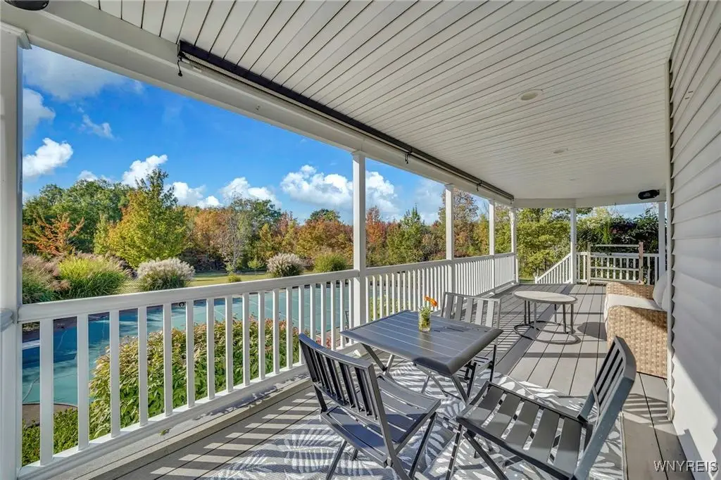 Welcome to a spectacular private estate tucked away down a picturesque, tree-lined illuminated driveway. A custom-built ranch sits on 18 gently rolling acres, offering a perfect balance of open meadows, wooded trails, & tranquil streams. Designed for both luxury & comfort, the home welcomes you with a new Shaker-style entry door '22, cathedral ceilings & freshly updated trim throughout the main flr. Inviting great room features new LVT flooring '25 & a striking stone-surround WB stove, creating a warm & stylish focal point. Adjacent is the formal dining rm, ideal for entertaining, & a beautifully updated kitchen boasting granite countertops, new cabinetry, ceramic tile flooring '23, a breakfast bar & French doors that lead to a serene, covered Trex deck w/roll up blindsC/B?B=perfect for enjoying breathtaking views in every season. Primary suite is a true retreat, offering updated ensuite bath '25, spacious walk-in closet & French drs that open to the deck w/uninterrupted views of the surrounding woods. 2nd flr bedroom is filled with sunlight through a half round window, cathedral ceiling & LVT '21. Updated guest bath '17 w/ceramic flooring, marble counters & walk in shower. Finished LL is designed for both relaxation & functionality, featuring new carpeting '25, handsome oak bar, updated half bath '25, a 4th bdrm, private office, 2nd laundry rm, generous storage & walk-out access to the rear yard. Outdoors, you'll find your own personal resort with a fully fenced yard & in-ground pool, complete with a winter safety cover '21. Spacious heated 2.5-car attd. garage is complemented by a separate 2-story, 4-car det. garage w/loft space & gas line hook-upC/B?B=ideal for hobbyists, collectors, or animal enthusiasts. Additional features include a charming chicken coop, well-maintained garden, & long list of recent updates, including a new roof '25, windows & doors '22, well rehab '23 & more. Perfectly situated just minutes from Rt 219, Kissing Bridge Ski Resort, Bflo Ski Club, shopping & dining, this better-than-new home offers the perfect blend of elegance, privacy & natural beaty. (Additional square footage of lower level measured by architect. Fourth bedroom in lower level.)