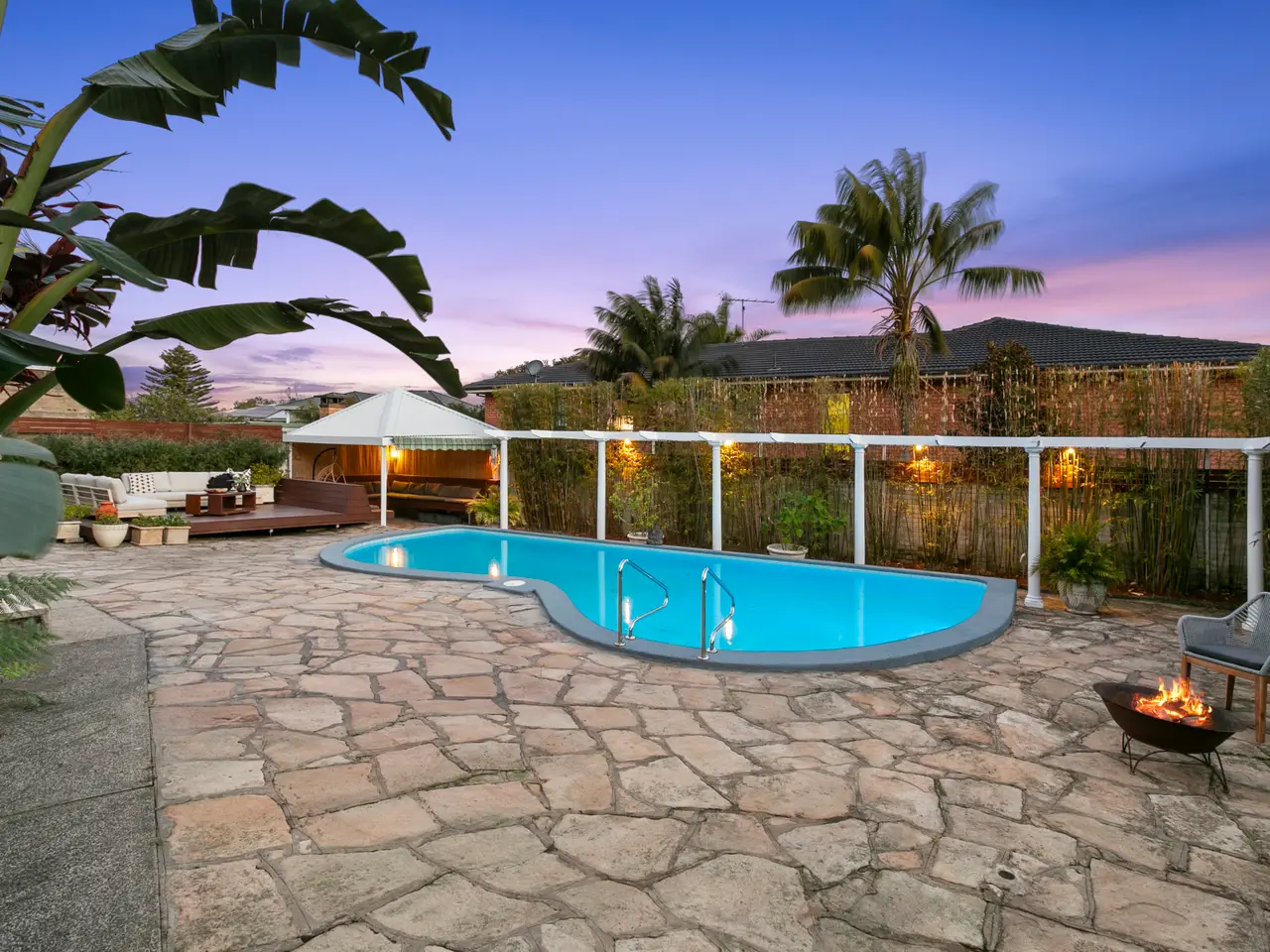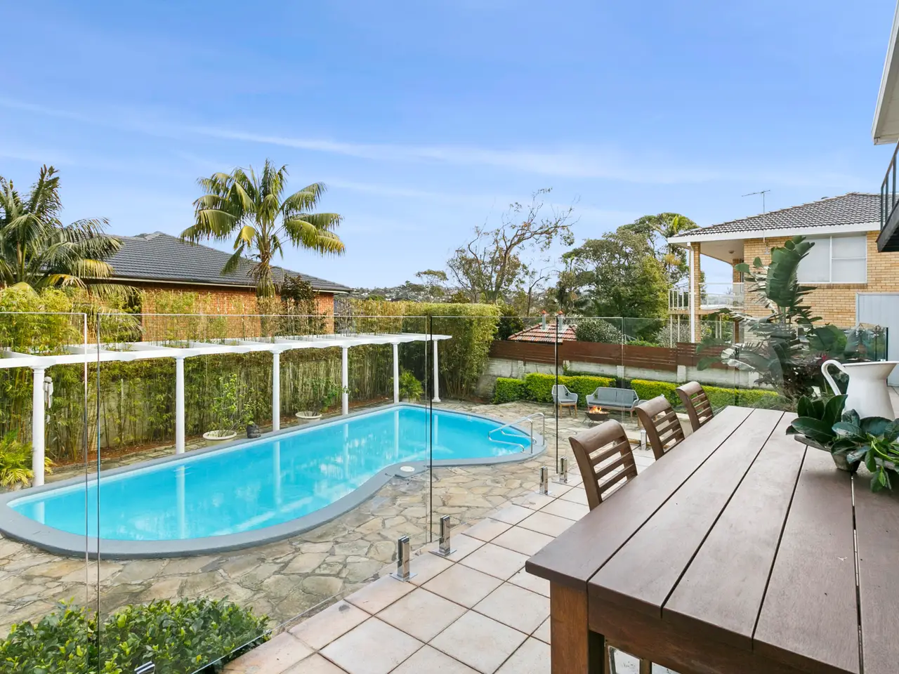 Enjoying a standout coastal setting, this family home is defined by its spectacular resort-like backyard and elevated ocean views. Set privately to the rear, the outdoor entertaining area is a true retreat, featuring a deep entertainer's deck, tropical landscaping, a solar-heated pool and cabana-style seating that invites relaxed gatherings year round. The layout is designed for ease and practicality, with a bright free-flowing living and dining downstairs, and a second upstairs living area opening to a full length balcony with sweeping district views that stretch to Dee Why Headland and the ocean. Positioned just moments from Dee Why Beach, the Lagoon and Long Reef Headland, with quick access to schools, Collaroy village and Dee Why town centre, this is a home that brings lifestyle and liveability together in one of the area's most desirable coastal pockets. - Bright living and dining area with custom window seating, gas fire - Enclosed front garden and a deep rear balcony for easy entertaining - Free-flowing layout with elegant engineered floorboards throughout - Fresh modern kitchen, stone island, quality integrated appliances - Upstairs rumpus with copper cone fireplace and balcony access - Resort-style backyard with solar-heated pool and poolside cabana - Master with balcony access, ocean views, walk-in robe, ensuite - Bedrooms include built-ins plus flexible fifth bed or home office - Immaculate family bathroom with bathtub, large linen cupboard - Ducted air con upstairs, reverse-cycle air con on the lower level - Internal access to double garage with additional storage space
