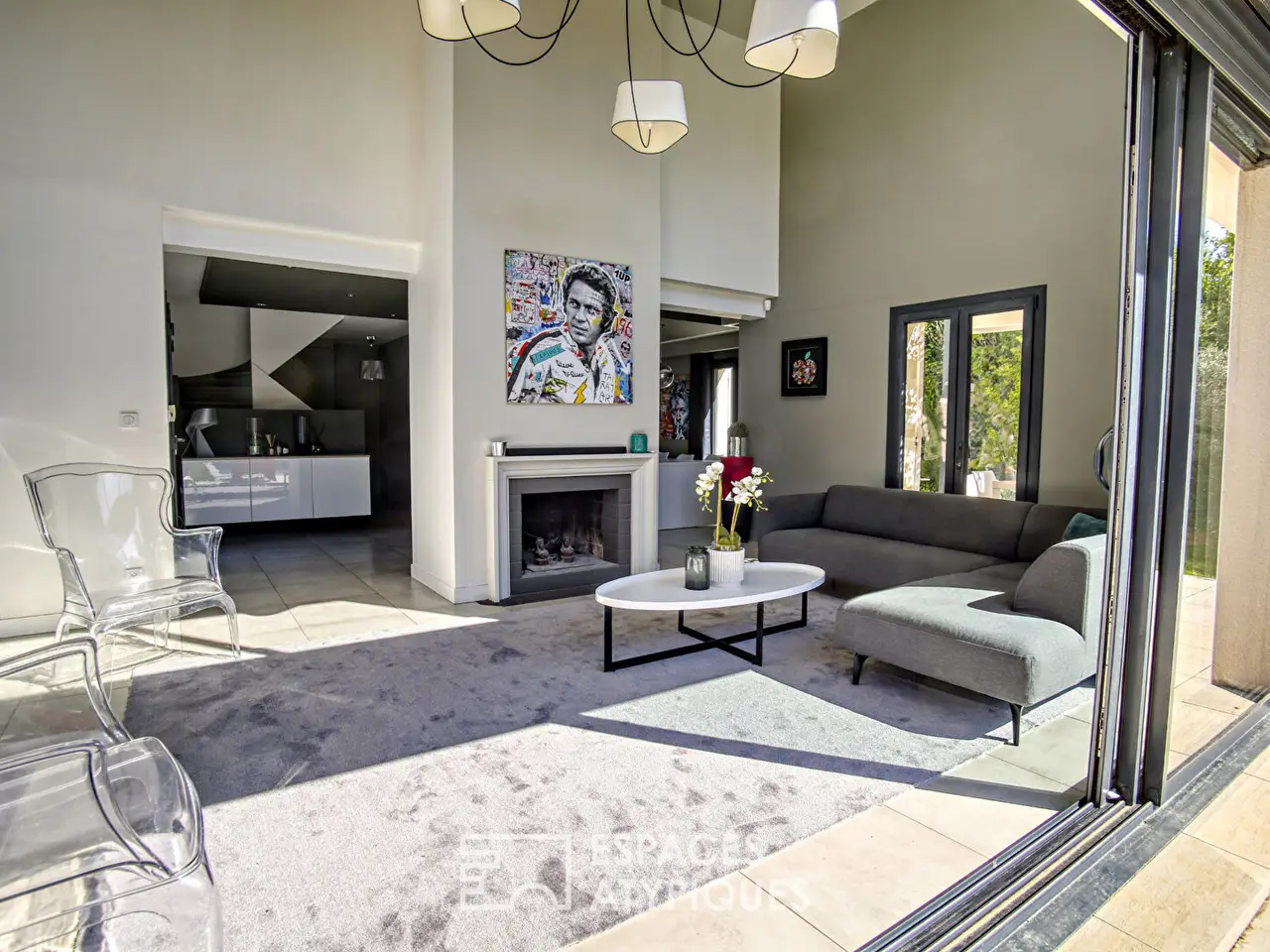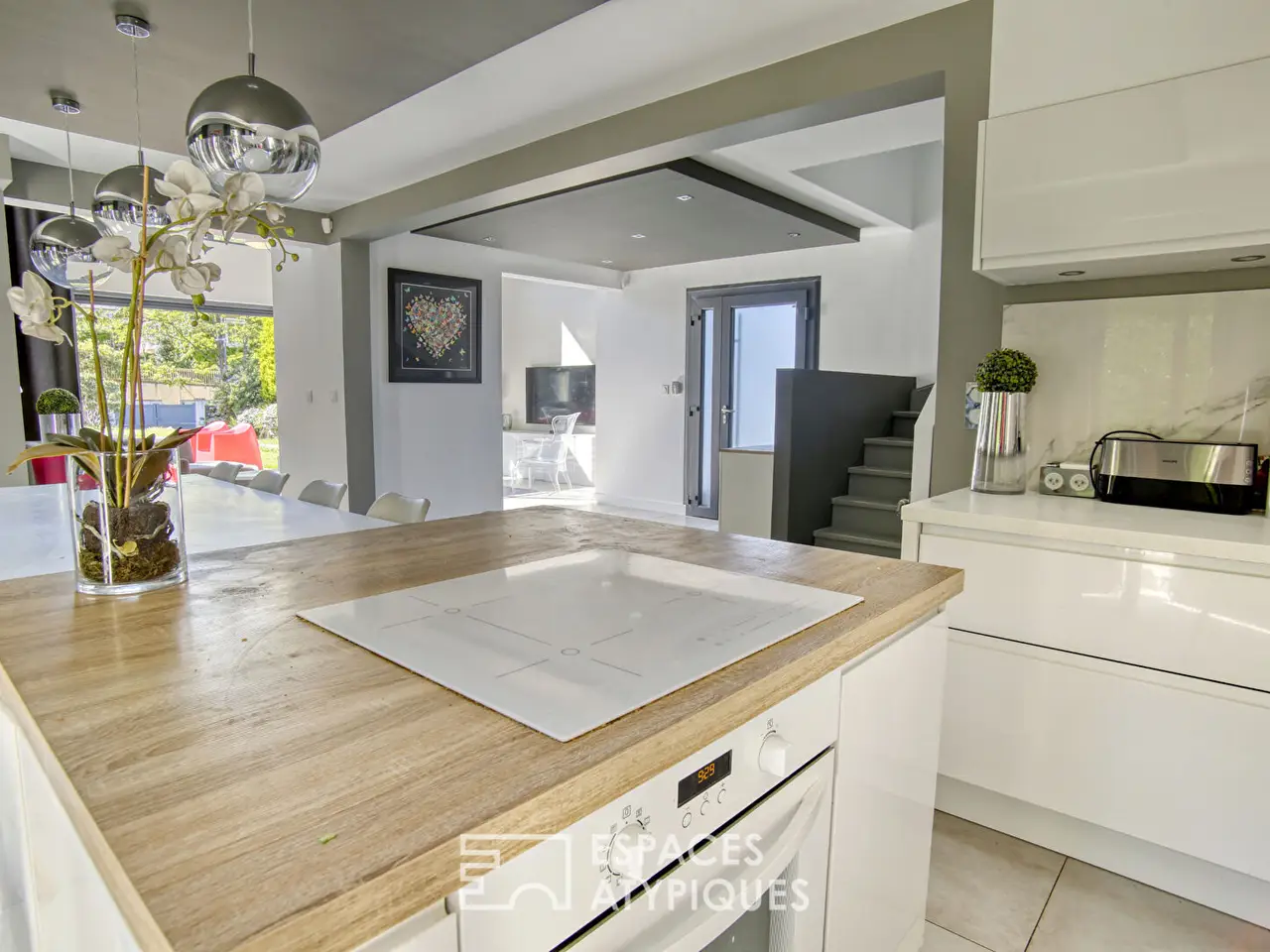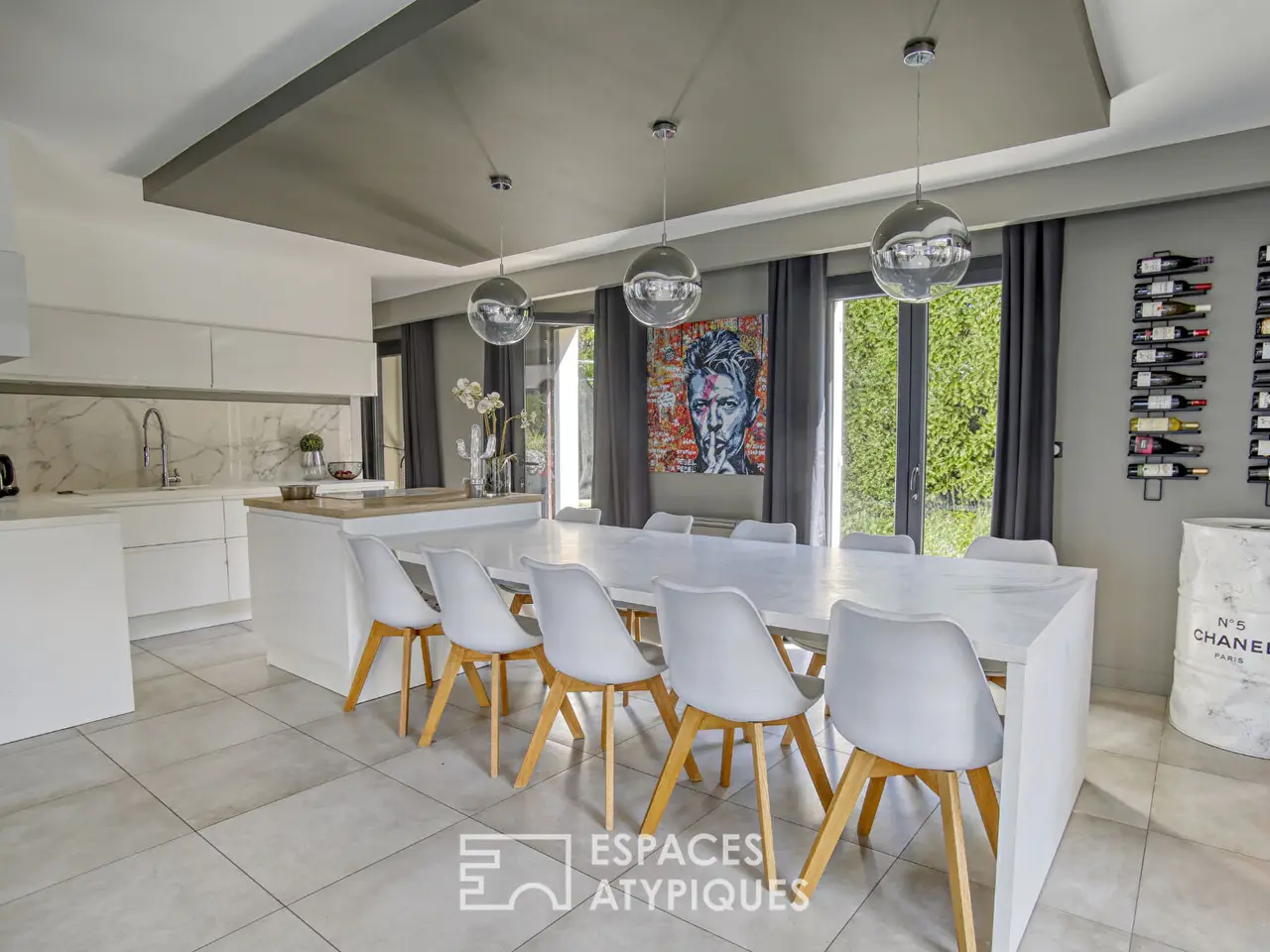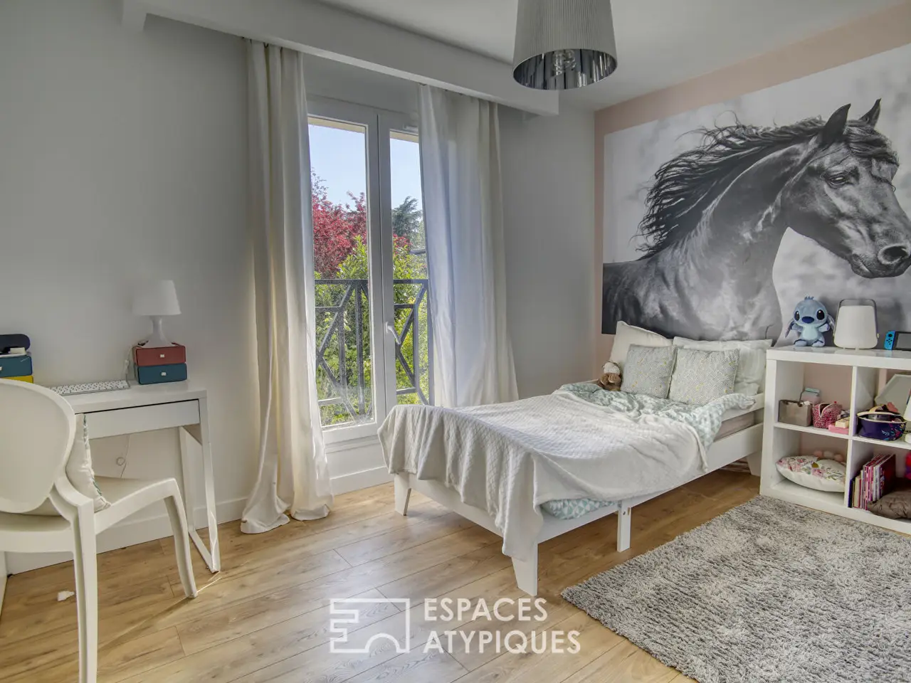 At the end of a cul-de-sac and in absolute calm, this house of approximately 200m2 of living space is built on a flat plot of approximately 1000m2, not overlooked, on the heights of Collonges-au-Mont d'Or. The entrance to the house opens onto a large double living room opening on one side onto a contemporary kitchen with clean lines and on the other onto the terrace and the garden. The cathedral ceiling of the living room and its double window give a certain cachet to this living room. On the same level, a bedroom with its bathroom allows a sleeping area on the ground floor. A laundry room and a games room complete this level. Upstairs, a beautiful master suite takes place with its dressing room and its private bathroom. For the children, two bedrooms and a bathroom complete this level. The land, well exposed, landscaped and not overlooked, benefits from a terrace area under a pergola and a heated swimming pool with heat pump. Air/water heat pump with underfloor heating. Reversible air conditioning. Bus and school nearby. DPE: C /. GES: C Contact: Guillaume - 06 67 69 73 00REF. 11012Additional information* 6 rooms* 4 bedrooms* 1 bathroom* 2 shower rooms* Outdoor space : 1000 SQM* Parking : 2 parking spaces* Property tax : 1 422 €Energy Performance CertificateEPC blank or in progressAgency feesThe fees include VAT and are payable by the vendorMediatorMediation Franchise-Consommateurswww.mediation-franchise.com29 Boulevard de Courcelles 75008 ParisInformation on the risks to which this property is exposed is available on the Geohazards website : www.georisques.gouv.fr