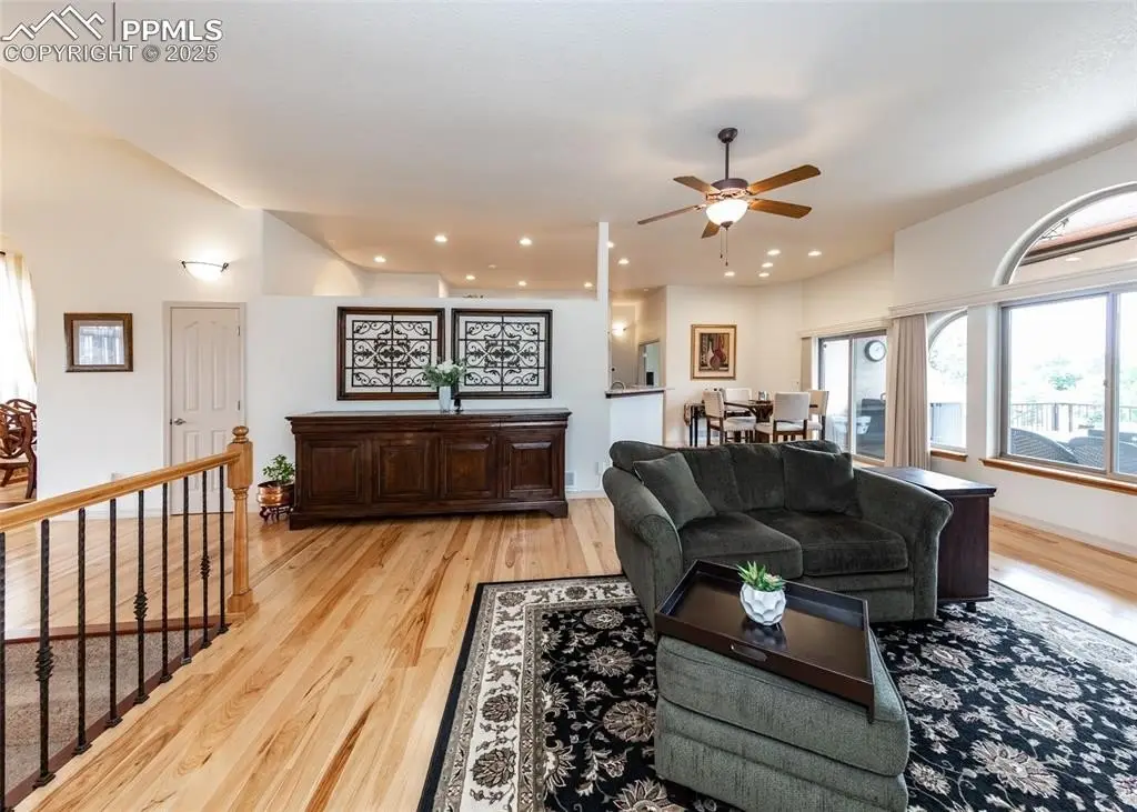 Immaculate updated 4,780 sq ft 7 bedroom stone & stucco raised rancher on a beautiful professionally landscaped corner lot at the top of University Heights. Tile roof ~ 2 Fireplaces ~ 2 Security systems with cameras inside & outside plus fire alarm system ~ Extensive 12' entry ceiling & natural 12' coffered ceilings in formal living & dining rooms~ shiny natural hickory floors with Brazilian cherry inlaids throughout the main level living areas ~ Gourmet granite & stainless steel kitchen totally redone in 2022 to include a gas range & dual ovens, soft close drawers & pull outs even in the pantry~ total one level living with laundry, primary suite & 3 more bedrooms on the main level ~ Elegant primary 5 piece bath with heated tile floor, jetted tub, granite counters & a 14' curved walk in shower with dual shower heads & glass block accents ~ Granite counters in all baths ~ Central vac ~ A/C on humidifier on main level. Huge 2nd family room in walk out basement with granite topped wet bar with 2nd fridge ~ 10'-12' ceilings on main level & 9' ceilings in basement ~ Milgard windows ~ Finished & painted 3 car garage with custom overhead doors, epoxy floor covering, high ceilings & a south facing driveway ~ 17x17 rear composite partially covered deck ~ 28x8 front composite partially covered deck both with powder coated iron railings ~ 12x10 patio off walk out basement ~ Mountain & Pikes Peak view from the rear. Immaculate condition. No kids, pets or smoking here. Shows great.
