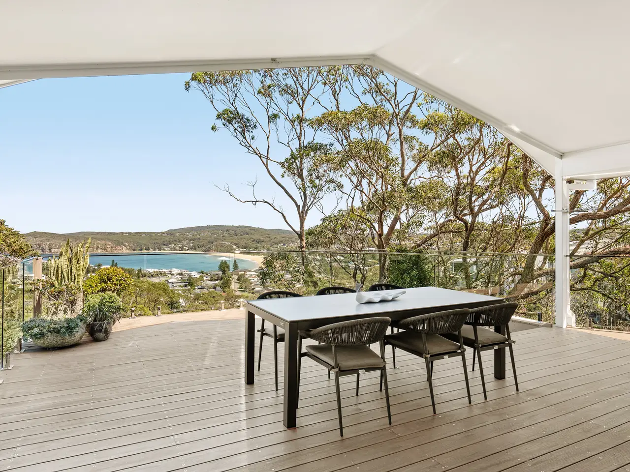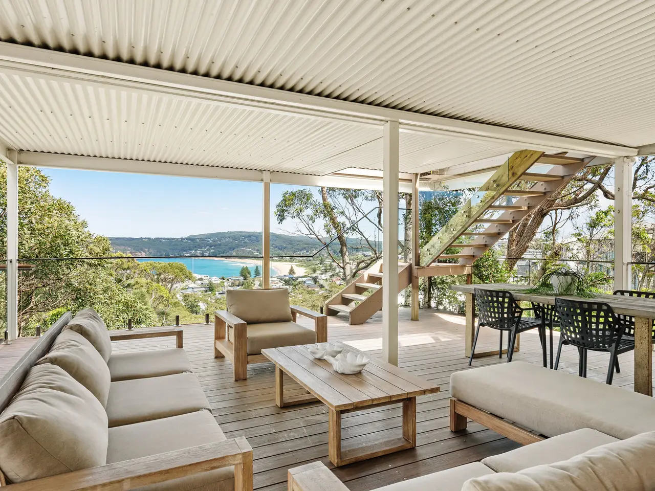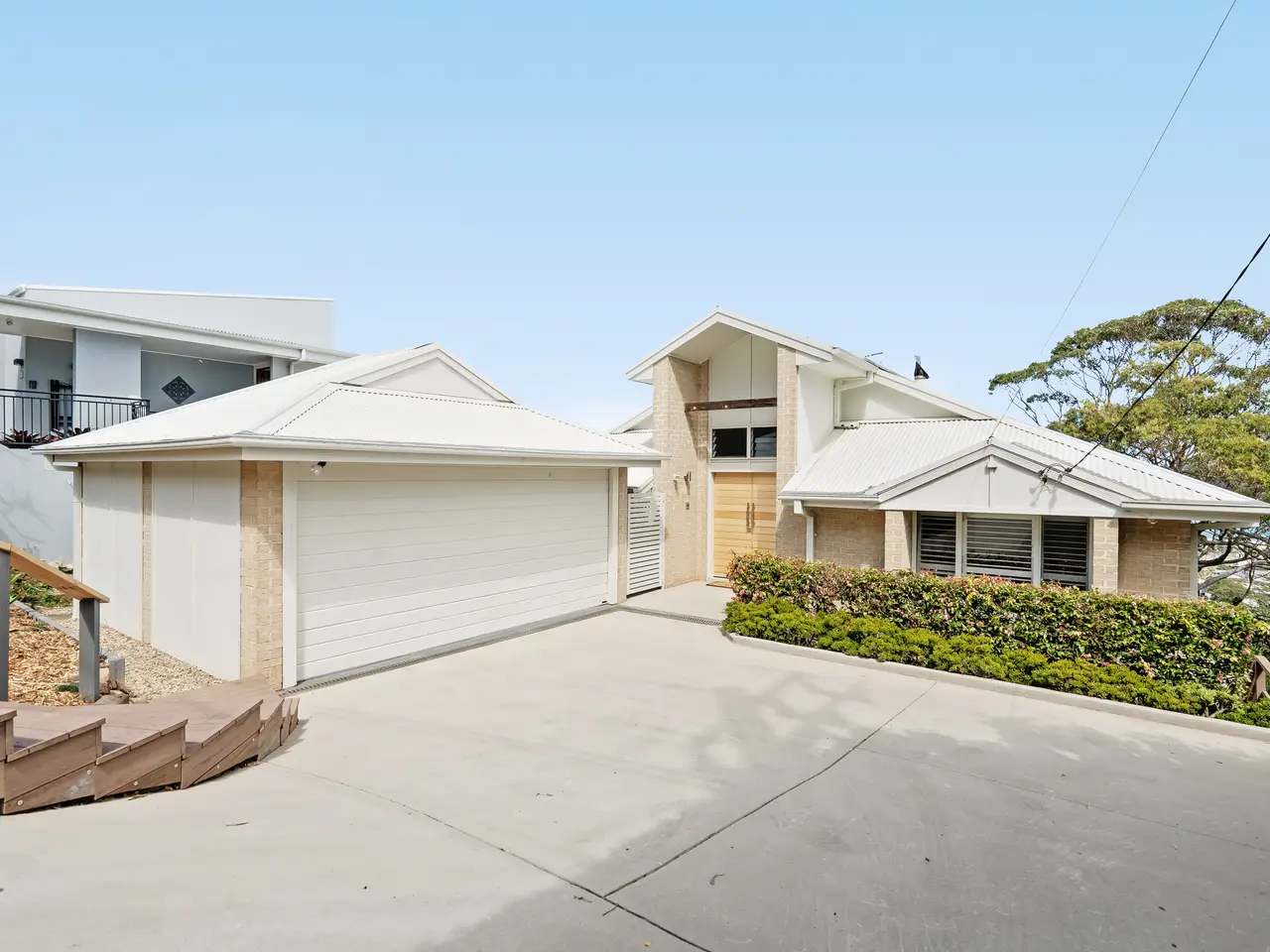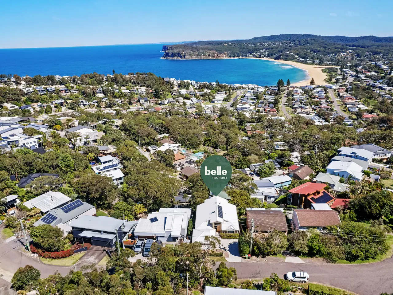 This the kind of holiday home where you drop the bags and immediately start the weekend – it's a perfect design for stress-free living against an iconic beach backdrop; boasting views from nearly every room, the dual level layout is beautifully finished from end-to-end. Skylit interiors are matched by high raked ceilings, extensive glazing and polished timber floors, while both floors flow easily to ocean-facing decks and those phenomenal views. Downstairs there's a fully self-contained guest suite with a separate entrance – an ideal spot for weekend guests or a fabulous Airbnb rental on a premier headland setting. Best of all, it's just a short stroll into the village, Copacabana's rockpool and the wide sandy beachfront. • Crisp, open plan layout boasts high ceilings and wide plank floors • Dual level design with two living zones + separate study/home office • Dazzling ocean, beach and headland views from expansive decks • Deluxe kitchen pairs sleek cabinetry with top-of-the-line appliances • Master opens to deck; includes large walk-in robe, double ensuite • Guest suite on lower level; all bedrooms include built-in robes • Wood fireplace, A/C, solar panels, plantation shutters, wine cellar • Ample storage space along with double garage and large workshop
