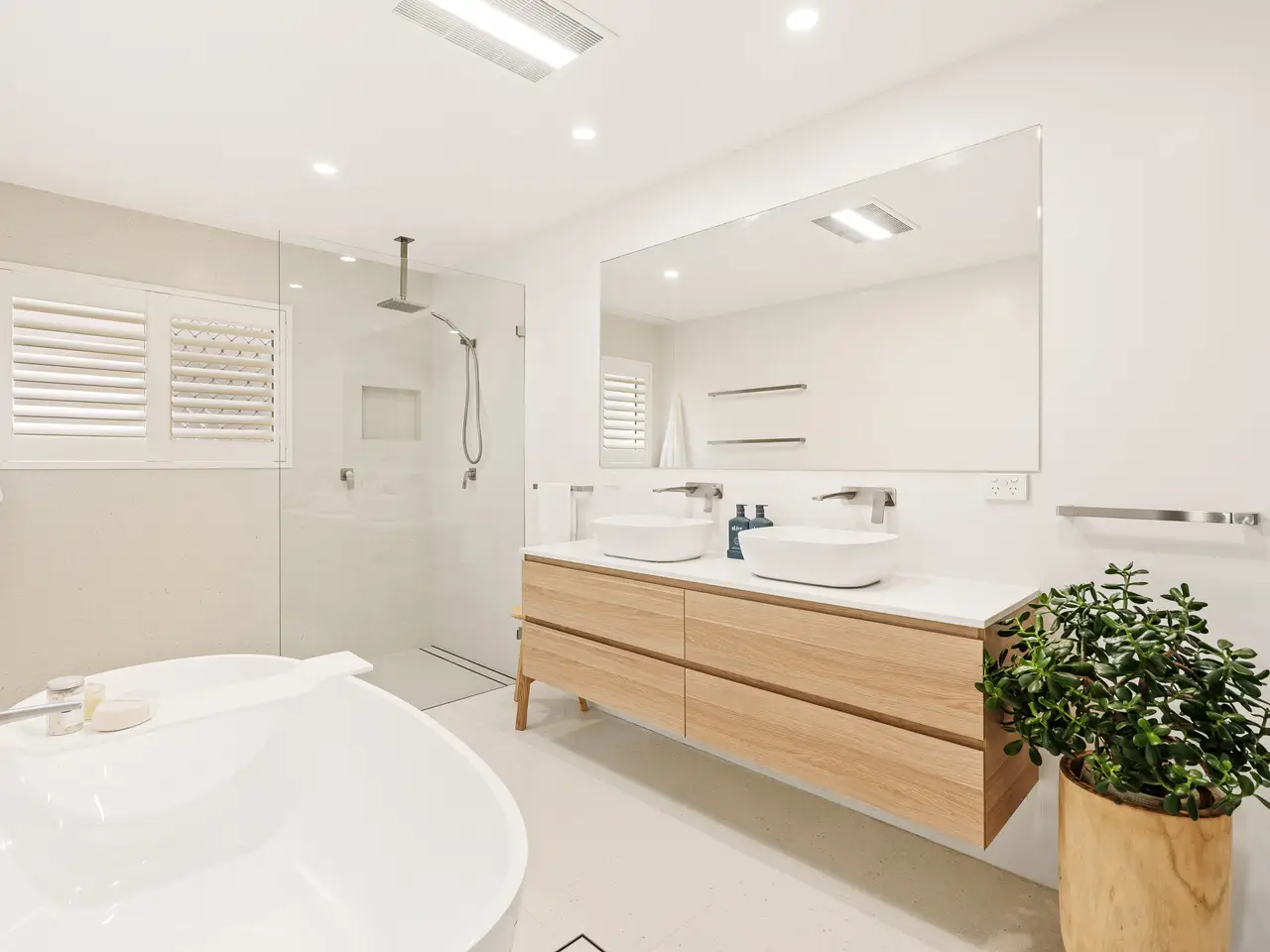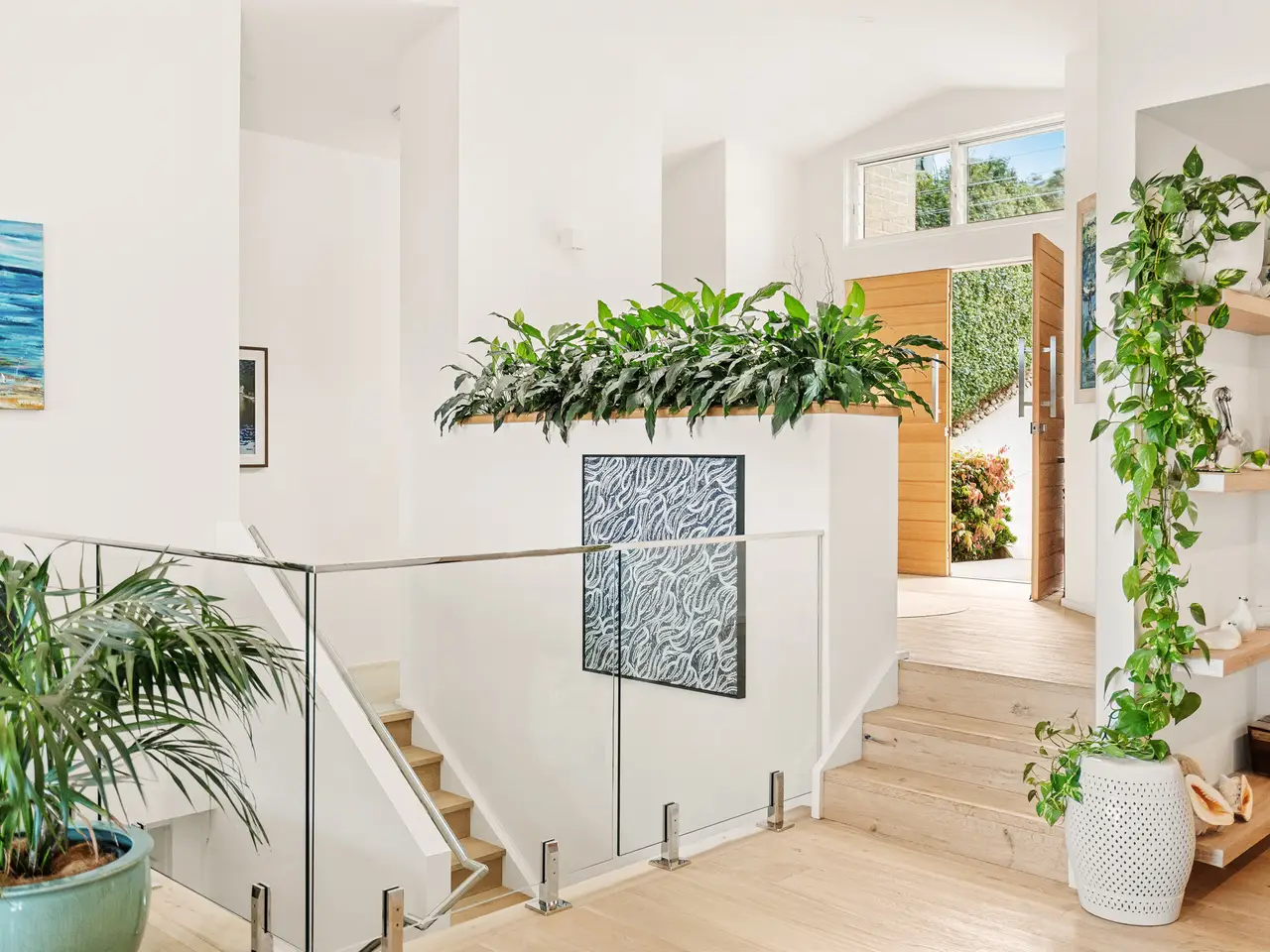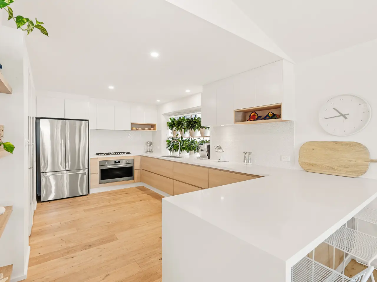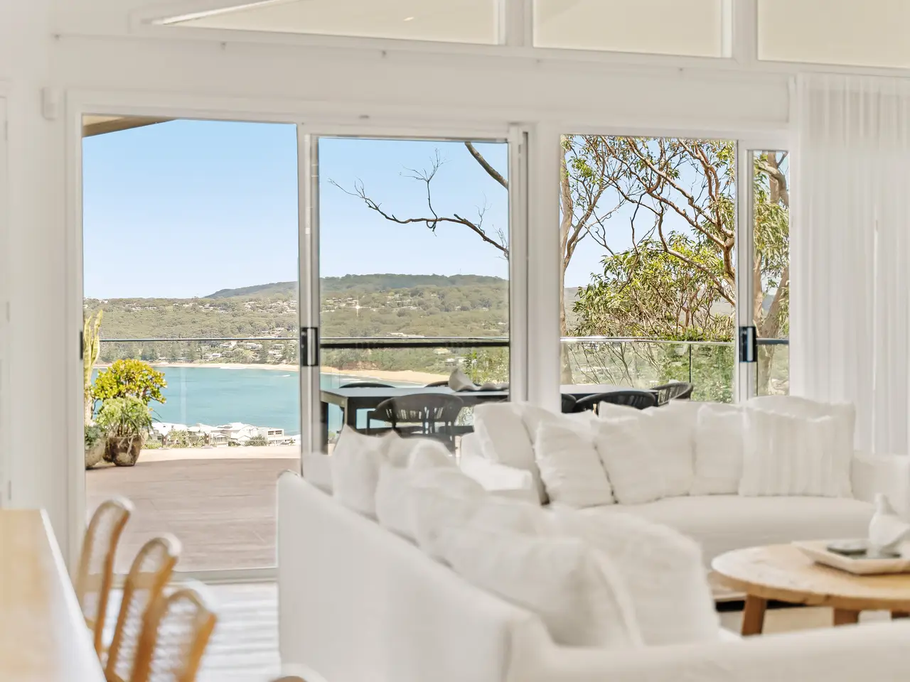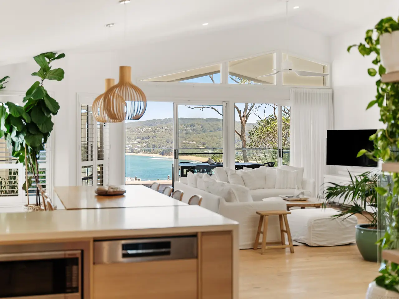 This the kind of holiday home where you drop the bags and immediately start the weekend – it's a perfect design for stress-free living against an iconic beach backdrop; boasting views from nearly every room, the dual level layout is beautifully finished from end-to-end. Skylit interiors are matched by high raked ceilings, extensive glazing and polished timber floors, while both floors flow easily to ocean-facing decks and those phenomenal views. Downstairs there's a fully self-contained guest suite with a separate entrance – an ideal spot for weekend guests or a fabulous Airbnb rental on a premier headland setting. Best of all, it's just a short stroll into the village, Copacabana's rockpool and the wide sandy beachfront. • Crisp, open plan layout boasts high ceilings and wide plank floors • Dual level design with two living zones + separate study/home office • Dazzling ocean, beach and headland views from expansive decks • Deluxe kitchen pairs sleek cabinetry with top-of-the-line appliances • Master opens to deck; includes large walk-in robe, double ensuite • Guest suite on lower level; all bedrooms include built-in robes • Wood fireplace, A/C, solar panels, plantation shutters, wine cellar • Ample storage space along with double garage and large workshop