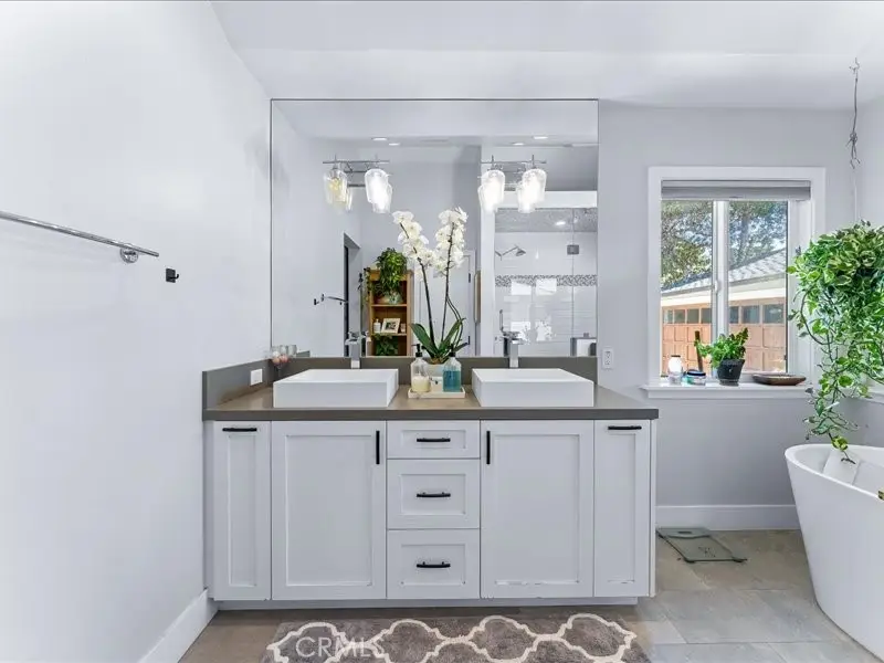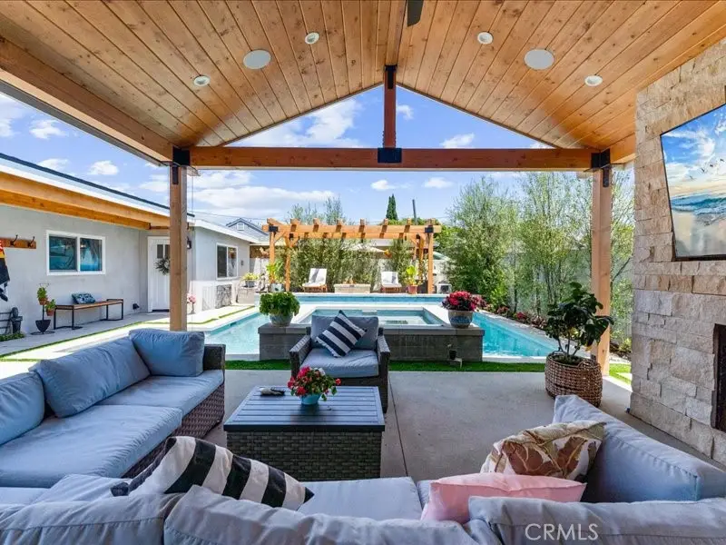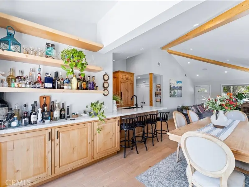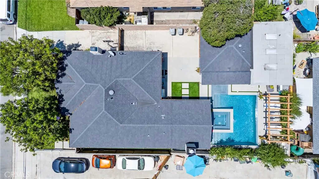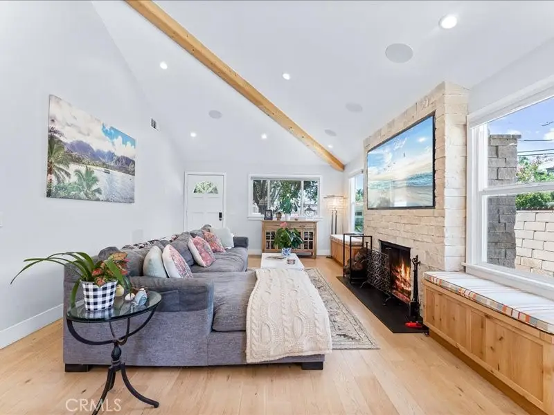 Experience the perfect blend of sophistication and casual luxury in this beautifully remodeled Costa Mesa home, ideally located just a short bike ride to the beach or to the scenic Back Bay. The primary property has 3-bedrooms and 2-bathrooms that welcome you with high-beam ceilings, engineered oak flooring, and elegant design touches throughout. The heart of the home is a gourmet kitchen with natural wood cabinetry, quartz countertops, and a 6-burner Wolf industrial oven—perfect for both casual meals and dinner parties. A stunning floor-to-ceiling, temperature controlled, glass-encased wine cabinet stores up to 124 bottles in style. Designed for the ultimate entertainer, this residence boasts zoned surround sound from the cozy front porch to the serene backyard fire pit. Step outside to discover a private oasis, featuring a covered patio with a fireplace, a built-in BBQ and kegerator, a big-screen TV for movie nights, and a luxurious pool with a built-in spa. The outdoor living area is completed with a remote-controlled sunshade for added privacy and comfort. The primary suite is a retreat of its own, with a spacious soaking tub, dual sinks, and a walk-in shower that doubles as a steam room. The smart home system and wood-burning fireplaces—both inside and out—enhance the warm, welcoming ambiance. For guests or extended stays, the separate studio guest house includes a full kitchen, bathroom, and private entry. The property offers ample parking with a long driveway leading to a detached 2-car garage. This residence blends craftsmanship with everyday comfort. The Charm of East Costa Mesa.