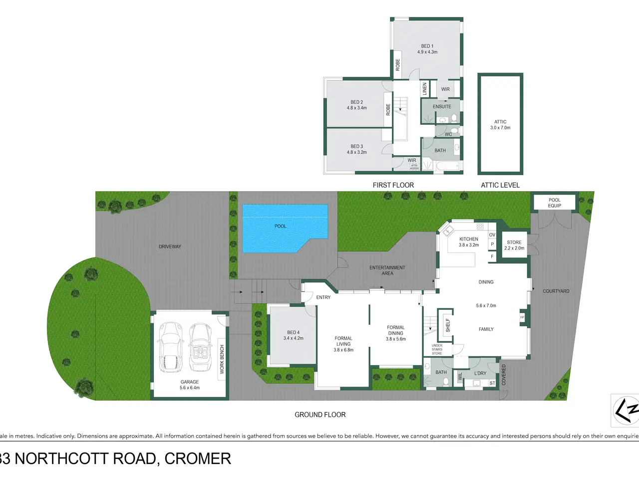 Set back from the street in a peaceful Cromer pocket, this dual-level residence has been designed to embrace a relaxed indoor-outdoor lifestyle. Surrounded by greenery and beautifully maintained, it unfolds across two generous living zones that both flow to sunlit alfresco space, with a choice of terraces and a sparkling saltwater pool framed by landscaped gardens. The interiors are airy and refined, featuring Brushbox floors, exposed brickwork and bespoke joinery that add warmth and texture to a bright, coastal-inspired aesthetic. Thoughtfully conceived for families, the layout offers flexibility with multiple living domains and a ground-floor home office or fourth bedroom. The sense of ease continues upstairs, where spacious bedrooms include a private main retreat with walk-in robe and ensuite. Peaceful and private yet moments from village cafés, shops, schools and Narrabeen Lake, this is an inviting family retreat in a highly convenient family setting. - Private dual level family home in peaceful, leafy Cromer Heights pocket - Meticulously maintained by original owner, private and light-filled - Two expansive living zones with easy indoor/outdoor connection - Open main living with gas fire, exposed brick and bespoke joinery - North-east entertainer's terrace with saltwater pool and swim jets - Modern stone benchtop kitchen with gas cooking, quality appliances - Spacious bedrooms with built-ins, flexible fourth bedroom/home office - Main bedroom with walk-in robe & ensuite, modern main bathroom - Brushbox floors, plantation shutters, gas bayonets, quality finishes - Double garage plus driveway parking, second private courtyard - Stroll to Truman Avenue cafés, parks, schools and Narrabeen Lake - 2km to Cromer Public School, 3km to St Rose Catholic Primary - 2.4km to NBSC Cromer Campus, 3.4km to Pittwater House - 500m to Truman Ave local shops, 1.9km to St Matthews Farm Reserve - 450m to local buses and Truman Reserve, 1.2km to Cromer Golf Club