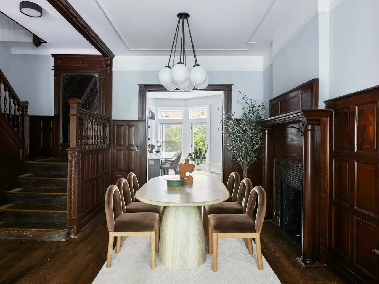 Experience refined Brooklyn living in this beautifully reimagined Crown Heights townhouse with sophisticated updates across four sun-filled floors. With a lush landscaped backyard, curated finishes, and abundant space throughout, this residence offers the perfect balance of form and function and is located on one of Crown Height's most sought-after blocks. Step inside the parlor level and take in a warm, inviting living room anchored by gleaming hardwood floors, oversized windows, and original wood detailing. A striking decorative fireplace mantel sets the tone for the elegant dining room, while a thoughtfully designed kitchen offers the best of modern convenience. Outfitted with a full suite of stainless steel appliances-including a gas range, dishwasher, and under-counter beverage cooler-the kitchen also features Caesarstone countertops in a soft concrete hue, custom cabinetry, and a glimmering tile backsplash. At the rear, a full bath with radiant heated floors and sleek finishes adds everyday comfort, while direct access to the patio and garden invites easy indoor/outdoor entertaining. On the garden level, discover a spacious en-suite bedroom with a walk-in closet, a second bedroom, a second full bath, and a dedicated laundry room with Whirlpool washer & dryer. Ample storage and flexible spaces make this level perfect for guests, work, or recreation. Upstairs, the second level houses two more bright bedrooms, each with not one but two walk-in closets. On the top floor, two versatile rooms offer endless potential as home offices, playrooms, or creative studios, alongside two additional bedrooms and an oversized skylight that bathes the space in natural light. Located in vibrant Crown Heights, this home is surrounded by cultural and culinary gems, from the Brooklyn Children's Museum and Brower Park to local culinary favorites. Commuting is effortless with nearby access to the A, S, 2, 3, 4, 5, and C subway lines.