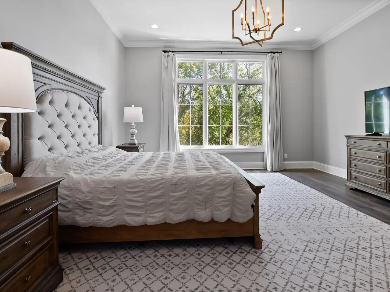 Discover a stunning blend of elegance and functionality in this sprawling 5-bedroom, 6.5 bath brick ranch with upper bedroom quarters! Perfectly situated on a private cul-de-sac lot with serene back views. This exquisite home boasts soaring 12-foot ceilings on the main level and features beautiful solid wood wide-plank flooring throughout, creating a seamless flow between spaces. Each bedroom is thoughtfully designed with its own bathroom, providing ultimate convenience and privacy. Entertain in style in the elegant formal dining room or the gourmet kitchen, which showcases an enormous island, a Sub-Zero refrigerator, a pot filler, and top-of-the-line Wolf appliances. This kitchen is a chef's delight, ideal for creating culinary masterpieces while enjoying the company of family and friends. The inviting great room features custom built-ins, a wood beamed ceiling, and numerous windows that offer stunning views of the natural surroundings, creating a bright and airy atmosphere. Relax by one of the three cozy fireplaces, or unwind with your favorite beverage at the coffee/wet bar. Double French doors lead to a maintenance-free deck that overlooks the luxurious in-ground pool, fire pit, and picturesque wooded backdrop, making it perfect for outdoor entertaining and soaking in the tranquility of nature. The large master suite is a true retreat, featuring a spa soaker tub, a walk-in tile shower, and two spacious walk-in closets, ensuring ample storage and comfort. Additionally, the finished walkout basement is the ultimate entertainment haven, complete with a workout room for your fitness routine, a home theater for movie nights, a full kitchen/bar for hosting gatherings, a 3/4 bath for guests, and a fifth bedroom with a private bath, complemented by a custom wine rack for the discerning connoisseur. This home is not just a place to live; it's a luxurious lifestyle waiting to be embraced, offering an unparalleled combination of sophisticated design and modern amenities.