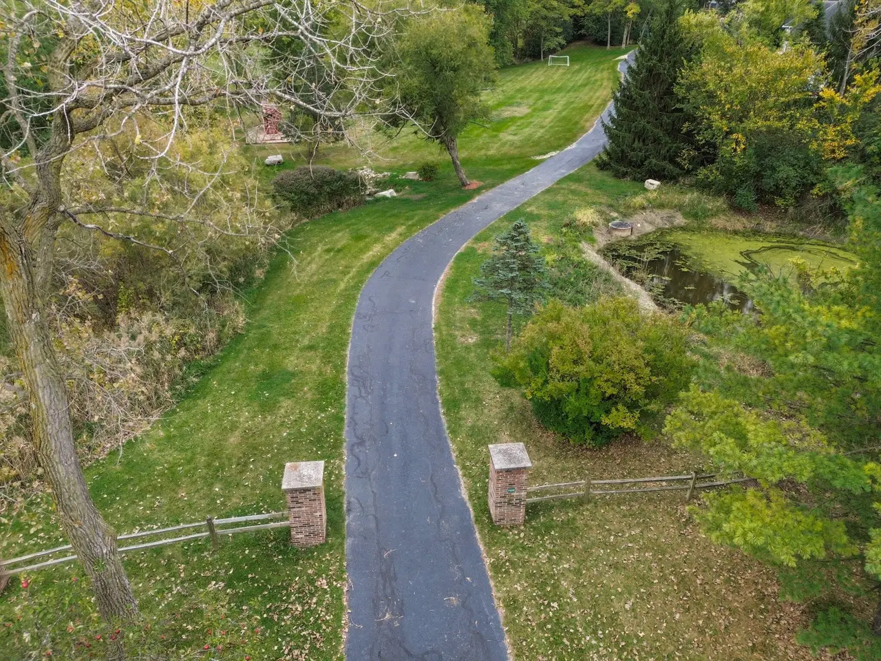 Discover unmatched privacy and elegance with this stunning 7- ACRE estate with PRIVATE POND nestled in the heart of Crown Point. This one-of-a-kind property offers a rare blend of high-end finishes, thoughtful design, and expansive space -- perfect for entertaining or enjoying peaceful country living just minutes from town conveniences. Step inside to find solid hickory floors with cork underlayment, providing superior sound and temperature control throughout. The gourmet kitchen and bathrooms feature exquisite Patagonia marble, creating a striking and luxurious aesthetic. Three all-stone fireplaces add warmth and character to the living spaces. Enjoy year-round comfort with zoned heating and cooling, and the convenience of a walk-in attic for ample storage. The home includes two 80-gallon hot water heaters to easily accommodate large households or guests. On the main level you will find the primary suite that includes a walk-in closet and attached office with fireplace. Step into a luxurious spa like bathroom and admire the custom walk-in shower and soaker tub. Make your way up to the upper level where you will be greeted with an elegant catwalk that leads to more spacious rooms plus a second laundry room! The bonus room is perfect for extra space to relax or entertain! The extravagance doesn't end on the inside with a stocked pond and natural creek to enjoy. You will find two private entrances and a massive driveway that fits up to 35 vehicles -- ideal for gatherings and events. YOU DO NOT WANT TO MISS OUT ON THIS ONCE IN A LIFETIME PROPERTY!