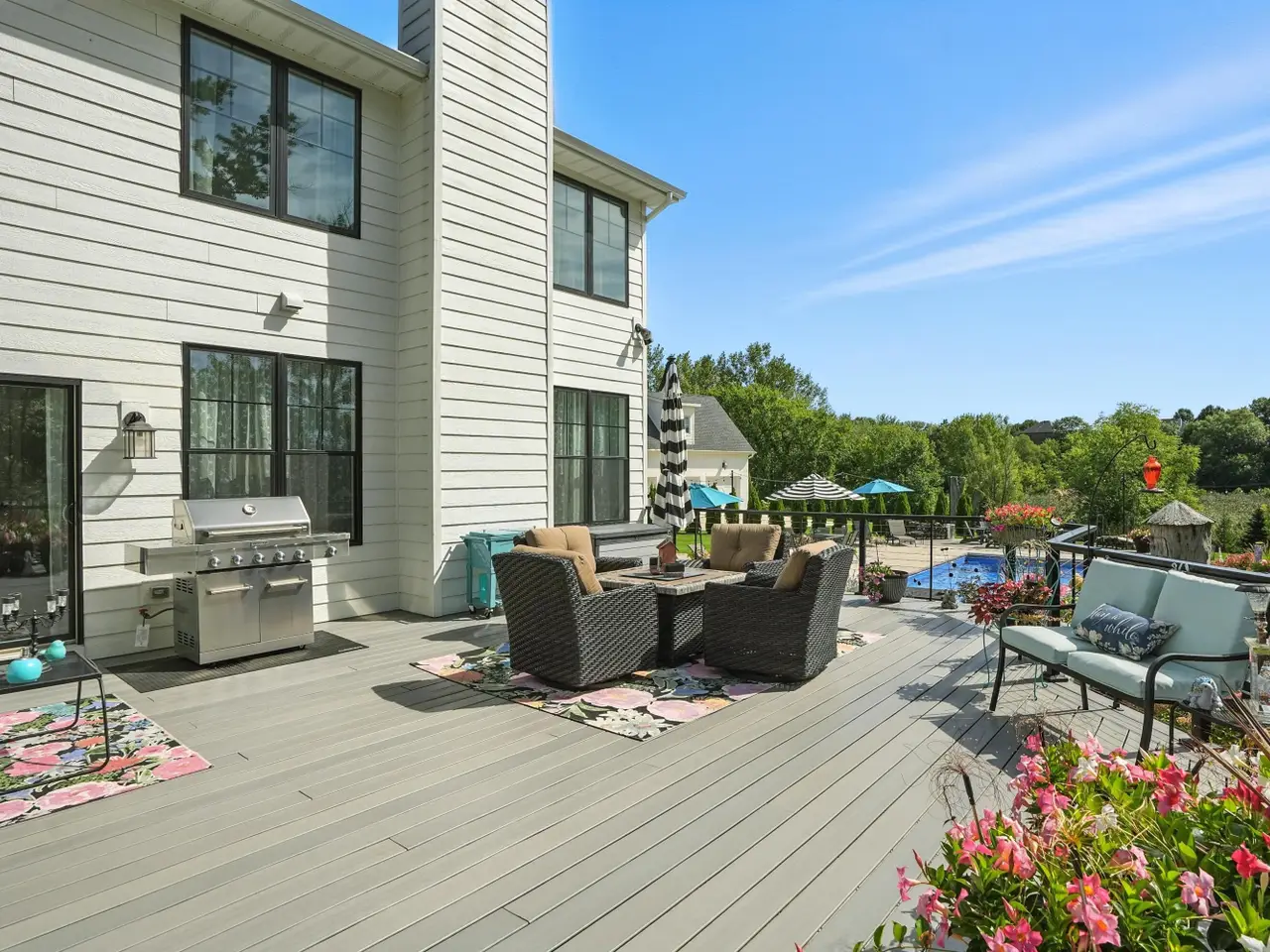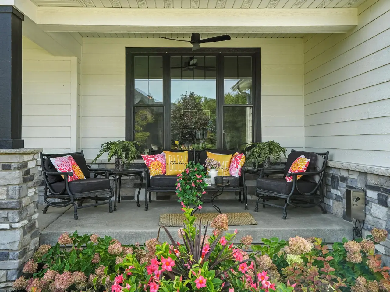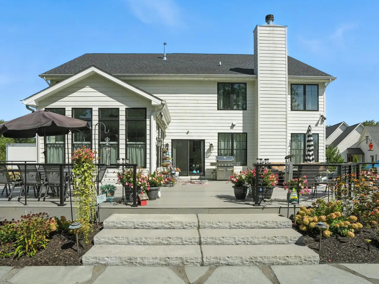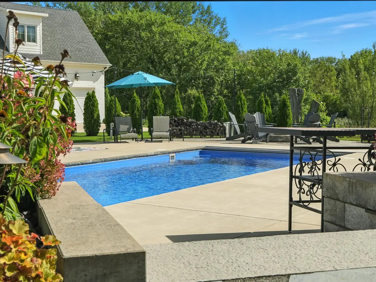 Welcome to this exquisite custom-built two-story home, perfectly situated on a serene .88-acre cul-de-sac lot, offering a peaceful and private wooded view that creates a tranquil atmosphere. As you approach the residence, you'll be greeted by a charming covered front porch, ideal for relaxing with a morning coffee or enjoying evening sunsets. Step inside to find an inviting foyer that seamlessly leads you into the great room, which features a stunning fireplace that adds warmth and ambiance, perfect for cozy evenings with family and friends. This space boasts a perfect blend of elegance and comfort. The open-concept kitchen is a culinary delight, featuring an oversized island that provides ample seating for gatherings, a spacious walk-in pantry, and a convenient mudroom. Sunlight floods the four-season room through an abundance of windows, creating a bright, airy space that's perfect for year-round enjoyment. The luxurious master suite is a true retreat, complete with an enormous walk-in closet, additional storage closets, and a spa-like master bathroom, ensuring your comfort and relaxation. The home also features three generously sized additional bedrooms and a well-appointed full bathroom, making it perfect for family living or entertaining guests. The main level is adorned with beautiful hardwood floors, adding warmth and sophistication. Step outside onto the expansive maintenance-free deck that wraps around the back of the home, complete with a powered awning to provide shade when desired, perfect for outdoor dining and entertaining. The professionally landscaped yard is nothing short of stunning, anchored by an inviting inground pool that serves as the focal point of the outdoor space. This backyard oasis features a cozy fire pit and a charming playhouse, coupled with ample grassy areas for hosting gatherings with friends and family. Unfinished basement is roughed in for future bath and finishing. 3.5 car garage is perfect for all your storage!