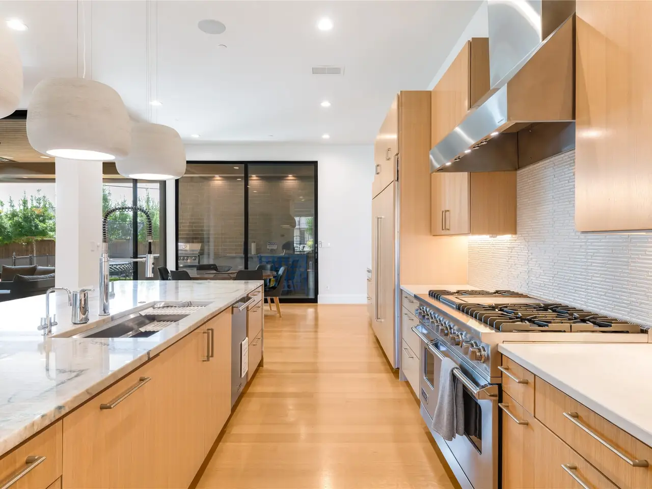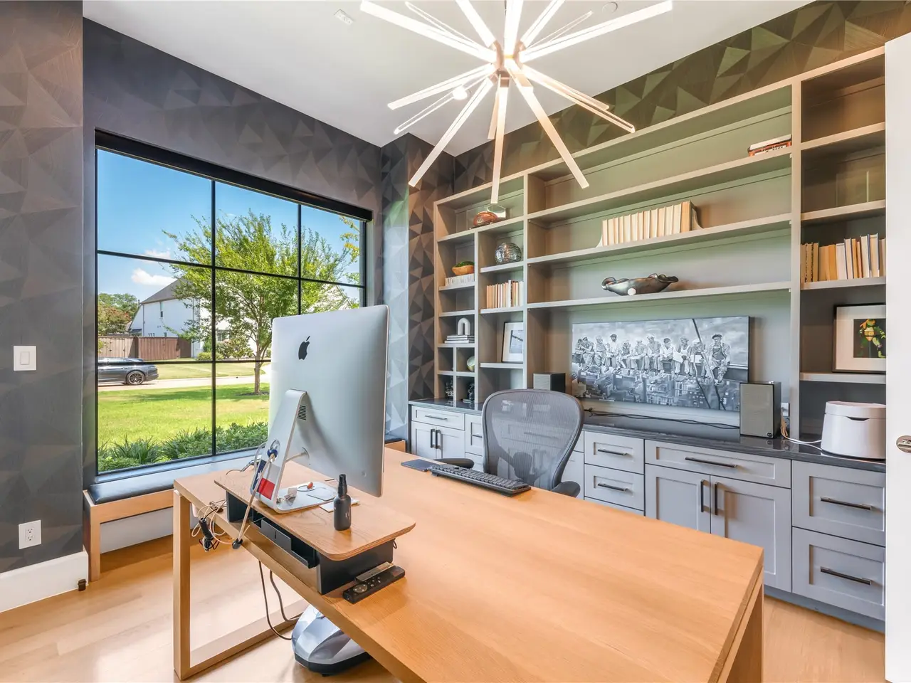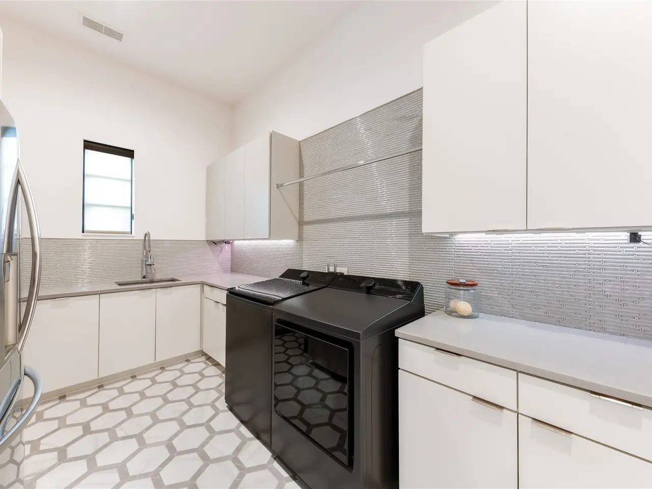Step through the front door into a light-filled foyer where patterned flooring makes an immediate design statement, setting the tone for the elegance carried throughout the home. Oversized windows flood every room with natural light, highlighting polished nickel hardware and natural stone finishes.The chefs kitchen features an oversized island, walk-in pantry, prep kitchen, Viking range, Sub-Zero refrigeration, and dual dishwashers. A breakfast nook, formal dining room, and main living area with a wet bar, cast stone gas fireplace, and custom cabinetry extend the flow effortlessly. A private office with its own entry, powder bath, and abundant built-in storage provides the ideal work-from-home retreat. The primary suite is a sanctuary, with soaring ceilings, a coffee bar with beverage fridge, motorized shades, and a spa-inspired bath featuring dual vanities, a soaking tub, large walk-in shower, and an incomparable closet with convenient access to the downstairs utility room - complete with sink, drip-dry area, built-in drying racks, and refrigerator. Additional highlights of the first floor include a guest suite, playroom, and mudroom connected to the three-car garage. Upstairs, four ensuite bedrooms each showcase unique custom tile and wallpaper, reflecting thoughtful, stylized design. A large game room with stage and kitchenette, climate-controlled attic or flex space, and a second utility room complete the upper level. Outdoors, a resort-like backyard awaits. A covered living space with wood-burning fireplace, outdoor kitchen, automatic screens, and heaters overlooks a sparkling pool and turf yard. Other amenities include a generator and a whole home water filtration system. Conveniently located on a desirable corner lot, this home offers easy access to Dallas top schools, shopping, and dining. Move-in ready, beautifully finished, and built with the craftsmanship and quality synonymous with DGM Builders, this residence is as functional as it is refined.