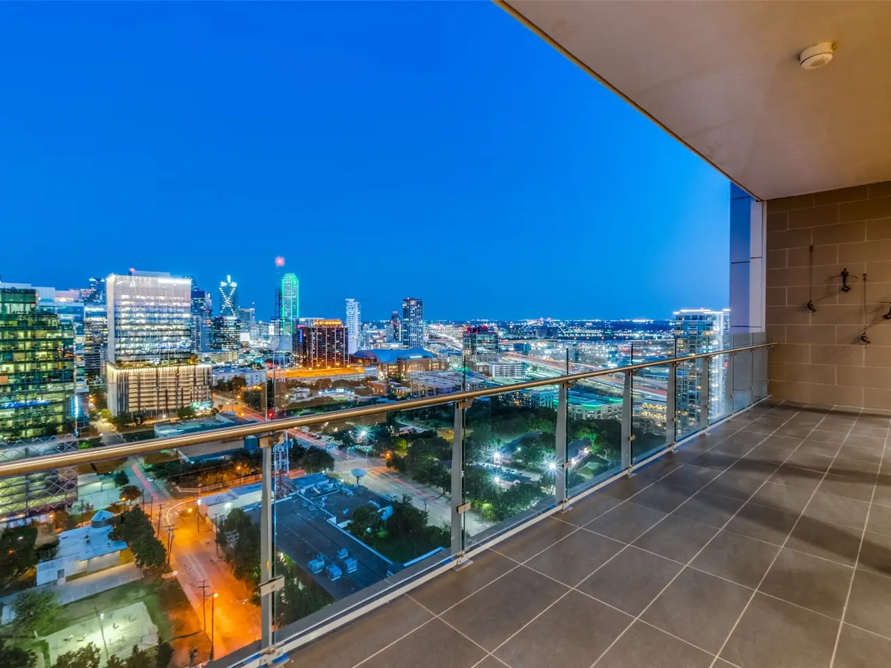 Oversized balcony with Downtown views