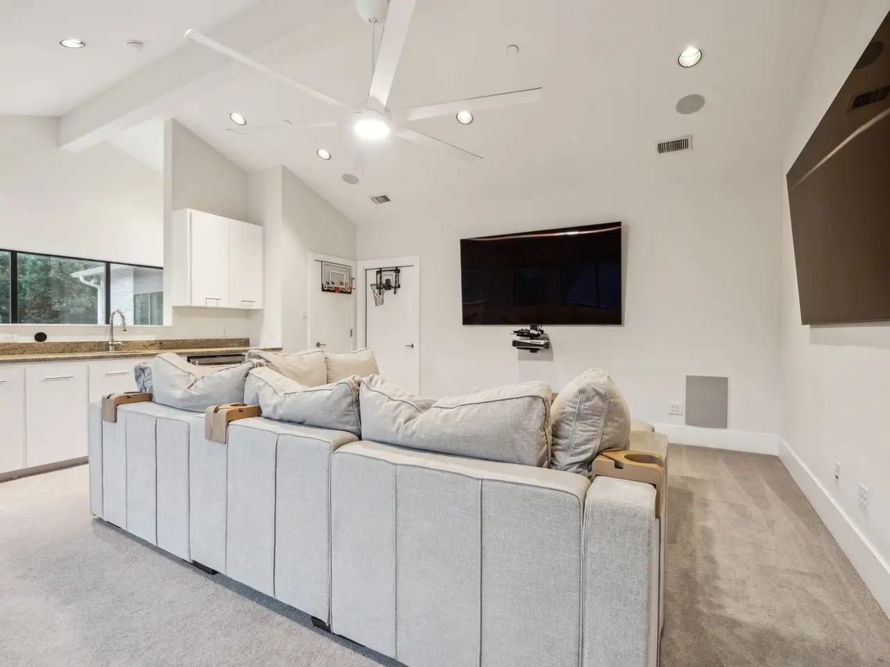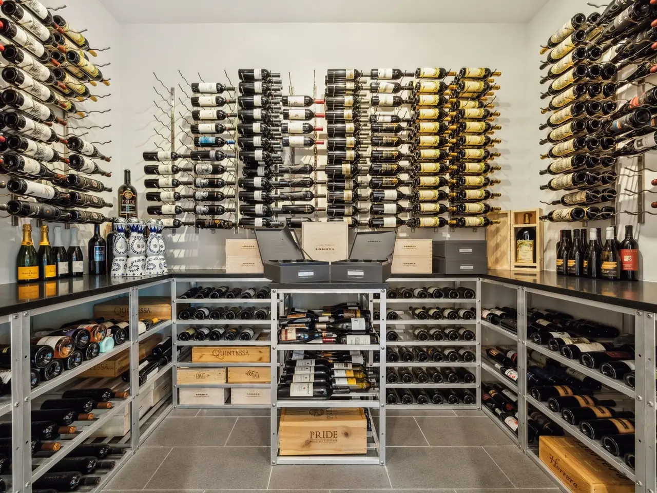 Climate-controlled wine room Oversized windows