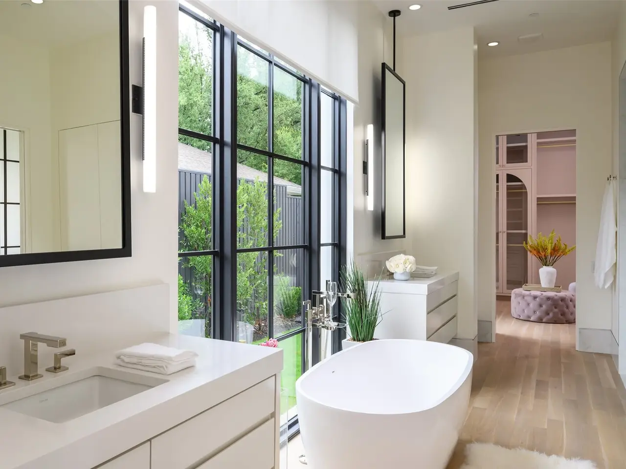 Situated on a prominent half-acre corner lot in one of Dallas' most coveted neighborhoods, 4407 San Gabriel Drive is a masterfully crafted custom home, completed in August 2025 by the esteemed SHM Architects. This architectural gem seamlessly blends clean, modern lines with warm, timeless materials to create a sophisticated yet inviting living environment tailored for today's discerning homeowner. Offering four spacious bedrooms, four full baths, and two elegant powder rooms, the home is designed with flexibility in mind - one upstairs bedroom can easily serve as a state-of-the-art media room. A private study provides the ideal space for working from home, while a dedicated gym promotes health and convenience. At the heart of the home lies an expansive great room, anchored by dramatic sliding glass doors that open to the outdoor living area, blurring the line between indoors and out. The dining room, wrapped in floor-to-ceiling windows, is filled with natural light - perfect for both intimate dinners and lively gatherings. The chef's kitchen is a showstopper, featuring Gaggenau appliances, sleek custom cabinetry, and a fully equipped butler's pantry with a built-in coffee machine - ideal for seamless entertaining. The primary suite, located on the main level for privacy, is a true retreat with a sunlit sitting area overlooking the backyard, dual walk-in closets, and a spa-inspired bath with dual vanities, soaking tub, and glass-enclosed shower. Step outside to a private oasis by Terrain Workshop, where curated landscaping surrounds a sparkling pool, and a covered patio with an outdoor kitchen invites year-round alfresco living. An attached two-car garage completes this thoughtfully designed home. Every inch of 4407 San Gabriel Drive reflects exceptional craftsmanship, timeless design, and architectural excellence in the heart of Dallas. Buyer and buyer's agent to confirm all measurements, lot size, and school info.