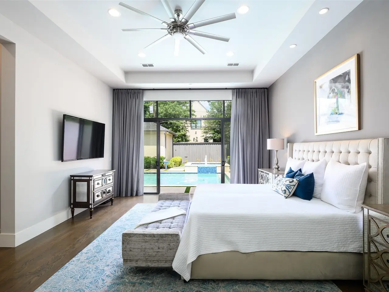 Stunning and move-in ready, this 2015 home built by Williamsburg Custom Homes in coveted Preston Hollow blends soft contemporary design with warm transitional touches. Meticulously maintained with a freshly painted interior, this five bedroom home includes both the primary and guest suites on the 1st floor plus a private study; the layout is ideal for modern living. The open-concept with 12' ceilings in the kitchen flows seamlessly into the family and breakfast rooms, all overlooking the backyard oasis. A large walk-in pantry adds extra convenience. Upstairs, you’ll find three spacious en-suite bedrooms with 10' ceilings, a generous game room, and a dedicated media room which is currently being used as a second study. The backyard is built for entertaining with a covered patio, outdoor kitchen, sparkling pool, and a turfed grass area perfect for play or pets. A 3-car garage completes this thoughtfully designed home in one of Dallas’s most coveted neighborhoods. Perfectly located within a short distance from Preston Hollow and Park Cities' finest shopping and restaurants and easily accessible to all major highways and airports, this is the perfect location to call home.