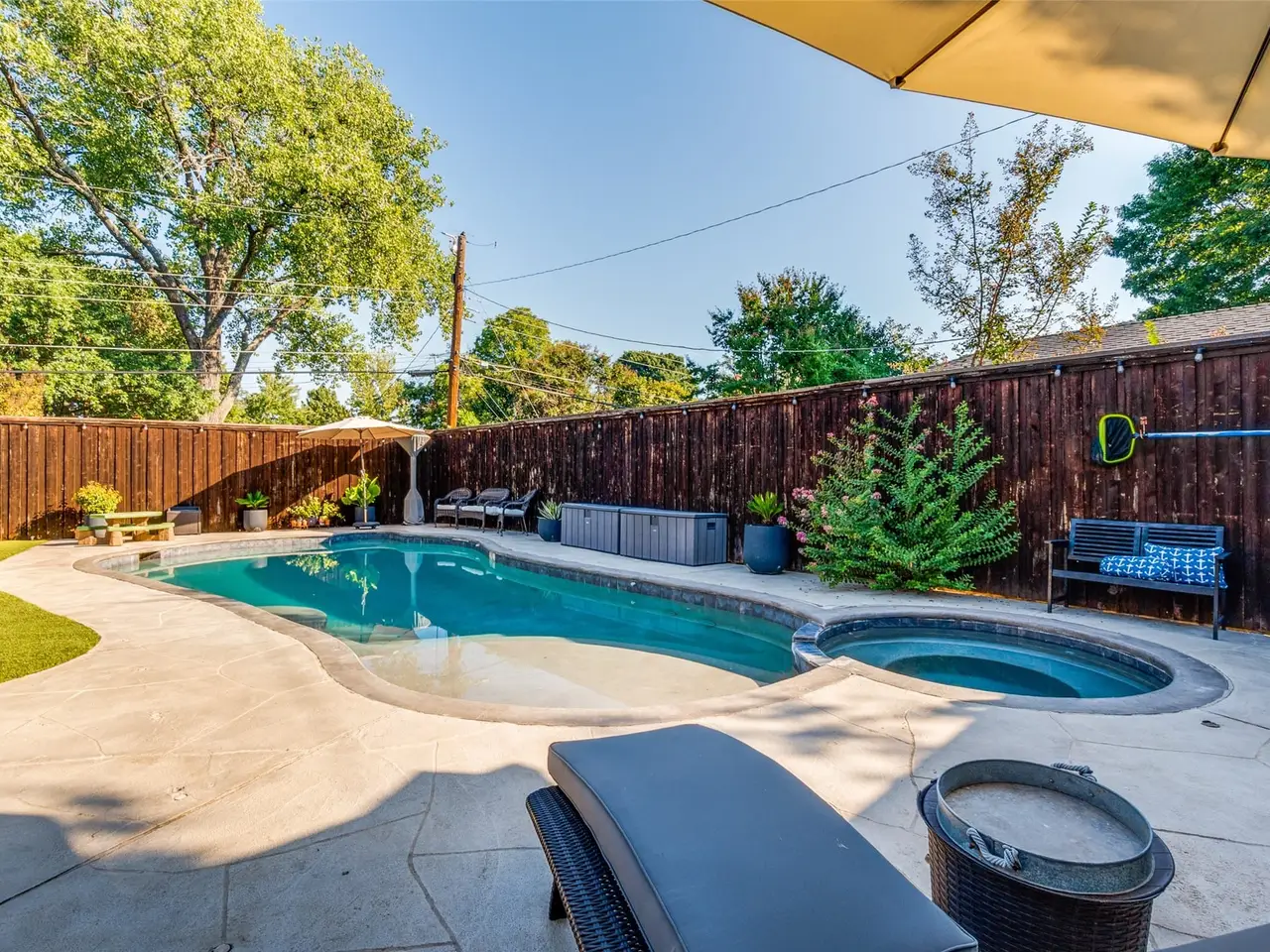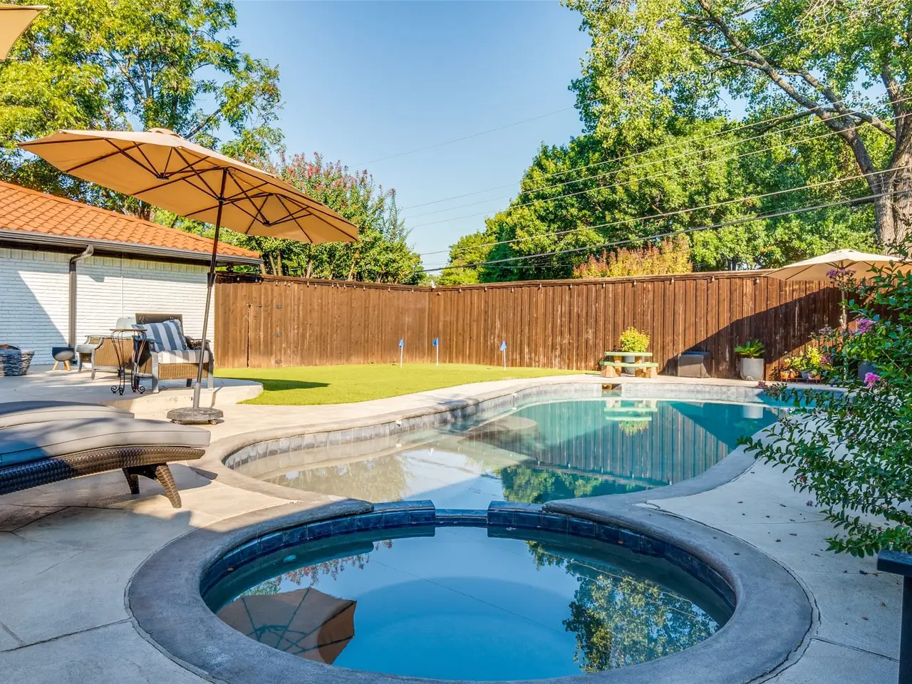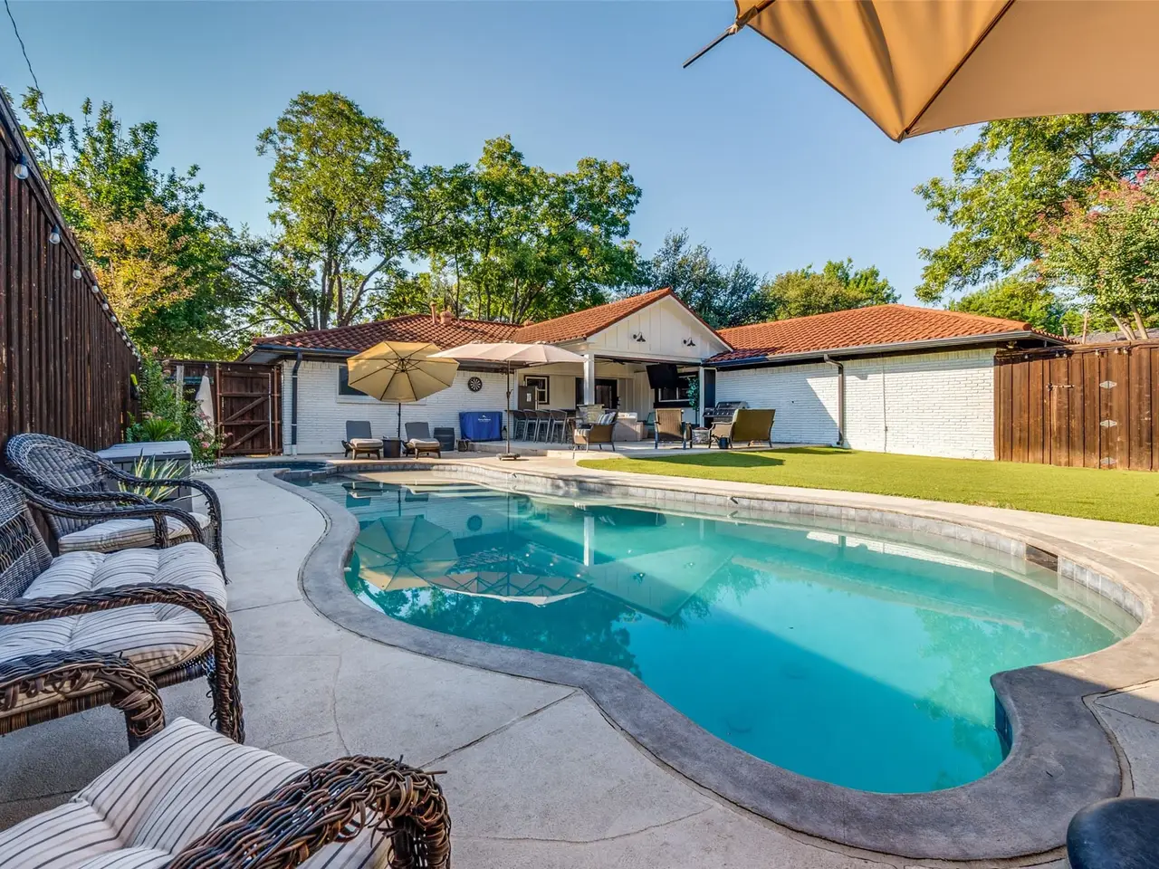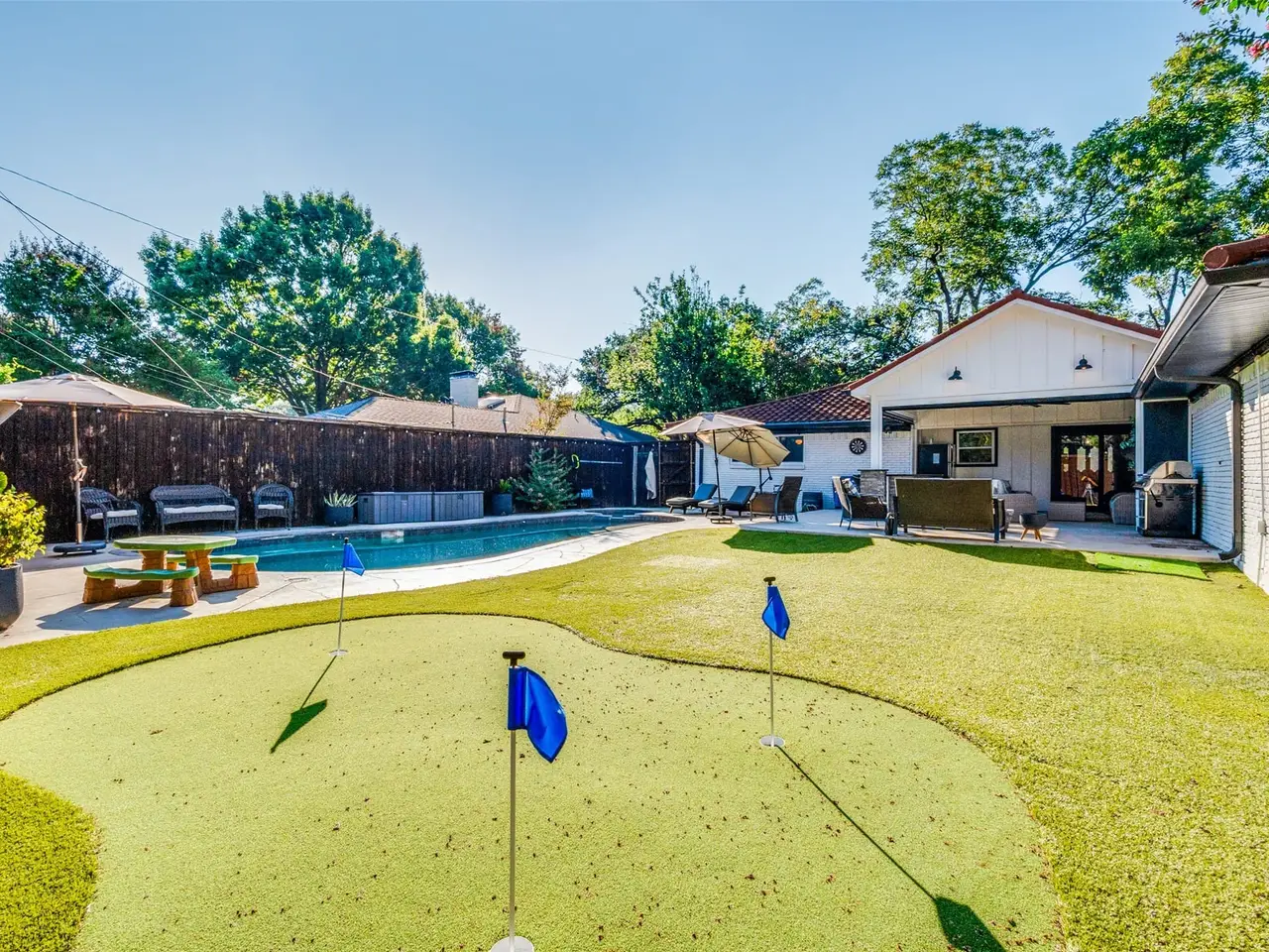 Welcome to 6121 Chesley Ln, a beautifully updated ranch-style home nestled in one of Dallas' most sought-after neighborhoods. This charming single-story residence perfectly blends timeless curb appeal with modern luxury. Step inside to find a completely remodeled chef's kitchen, featuring sleek gray cabinetry, designer lighting, a massive island with seating, and a commercial-grade gas range. The open-concept layout makes this space perfect for both everyday living and entertaining. Outside, your private backyard oasis awaits. Relax under the shade of large umbrellas, take a dip in the resort-style pool and spa, or practice your short game on the custom putting green all surrounded by lush landscaping and a privacy fence. With mature trees in the front yard, a classic red tile roof, and meticulous landscaping, this home delivers both style and comfort in equal measure. Key Features: four Bedrooms three Bathrooms Designer kitchen with high-end appliances and finishes Open-concept living and dining areas Resort-style backyard with pool, spa, and putting green Oversized lot with mature trees and lush landscaping Prime location with easy access to White Rock Lake, top schools, shopping, and dining