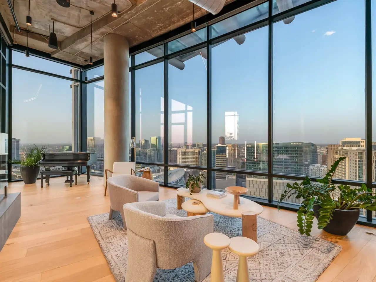 Experience a new definition of luxury in the sky, located on the 32nd floor, the tallest in all the W residences. Completely redone with brand new finishes this one-of-a-kind penthouse offers breathtaking views throughout with floor-to-ceiling windows complemented with both east and west patios. Featuring top-tier finishes, roman plaster textured walls, welcomed with Lutron lighting that casts a soft, welcoming glow perfect for setting the mood for entertaining guests. The expansive open concept of living and dining areas flow seamlessly into a stunning chefs kitchen, leading to a one-of-a-kind home bar with commercial features. Equipped with a Hoshizaki pebble ice maker, a Miele glassware dishwasher, a wine cooler, and a Toki highball machine found exclusively in top bars worldwide, chills whisky and soda to perfection, preventing dilution while delivering five times the carbonation of regular soda water. Architectural elements elevate the design, enhancing the dramatic city views throughout. The primary suite greets you with a cozy seating area and a see-through gas fireplace, creating both warmth and a sense of separation from the spacious bedroom. The adjoining bath features a luxurious double primary shower leading to a large walk-in closet. Designed for ultimate entertainment, the penthouse features five zones of Sonos speakers, including built-in subwoofers, for an immersive audio experience. In addition to hotel-style amenities including room service, this is a prime location, with a newly renovated lobby coming soon. This penthouse offers a sophisticated retreat in the heart of the city, combining convenience, style, and world-class amenities for those seeking a home in the sky.