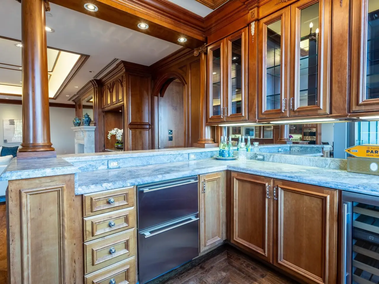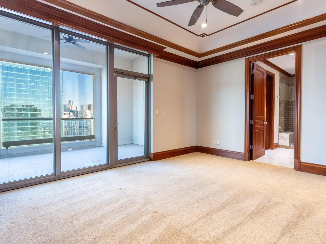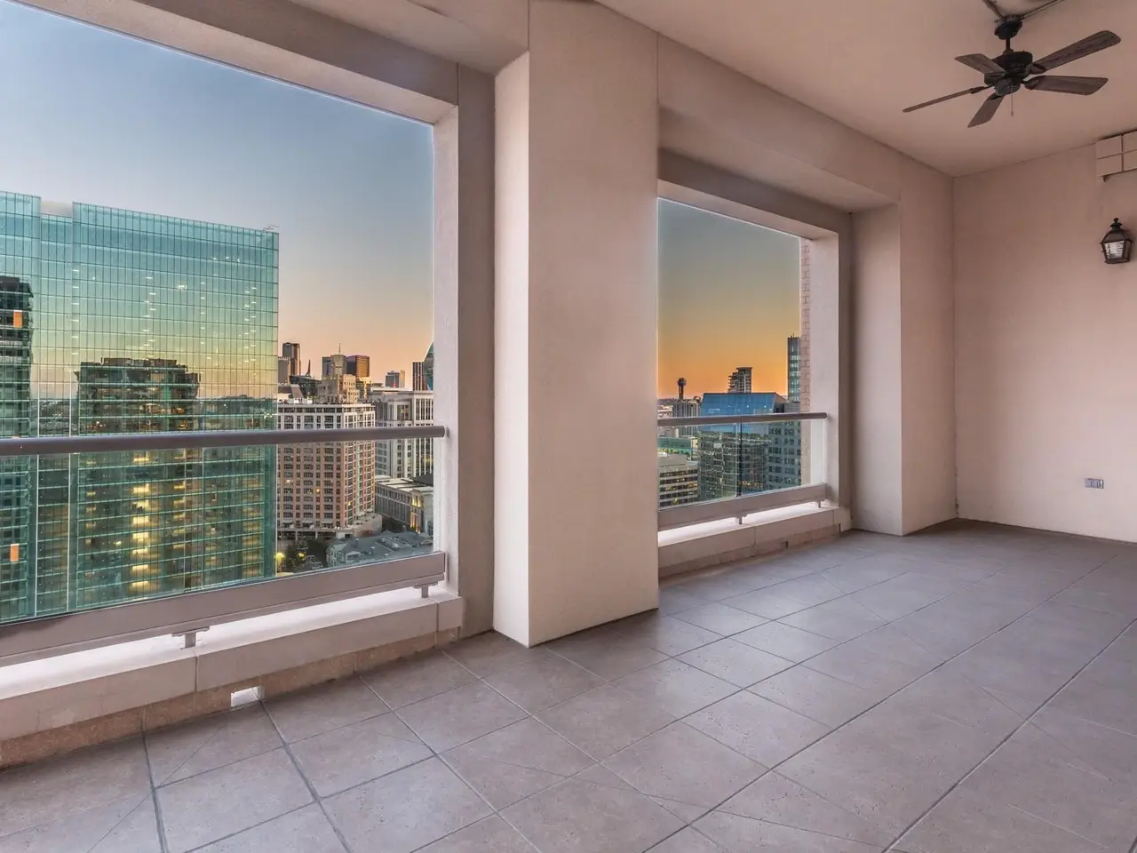 Perched on the 19th floor, this 3-bedroom, 3.1-bath Sub-Penthouse at The Stoneleigh Residences redefines high-rise luxury while living like a true home. Your private elevator opens to a secluded vestibule and foyer, setting the stage for gracious living. Cherry wood floors and picture-frame paneling create warmth throughout the generous Living Room, where a fireplace, wet bar, wine refrigerator, and a tucked-away office with pocket doors elevate daily life. The open Kitchen is a chef’s dream with Sub-Zero & Wolf appliances, marble counters, butler’s pantry, and ice maker - anchored by an island and flowing seamlessly into the Dining Area. Entertain with ease as guests spill onto a sizable balcony showcasing jaw-dropping vistas of Downtown, Reunion Tower, the Calatrava Bridge and Uptown. The richly paneled Library shares a marble bath and walk-in closet-desk combo with a Guest Bedroom suite, while a second Guest Suite with ensuite bath stands ready for visitors. The Primary Suite boasts its own balcony, a clever niche for a large safe, and a spa-caliber Bath with steam shower, dry sauna, dual vanities, and an expansive wrap-around closet. Three coveted parking spaces and access to Stoneleigh’s 5-Star amenities complete the lifestyle: 24-hour concierge, valet, owners' club room with bar, card room, 20-seat stadium style theater, banquet facilities, catering kitchen, state-of-the-art fitness center with locker rooms, sauna & steam, resort-style pool, outdoor living with grills & fireplace, a grand lawn with private fireplace and pet park - plus direct access to Le Meridien Stoneleigh Hotel. All in walkable Uptown, minutes from Victory Park and American Airlines Center with Mavs and Stars games and concerts, Klyde Warren Park, CBD, The Crescent, the #1 rated largest contiguous urban Arts District in the US, myriads of fine dining choices, shopping, and Dallas major highways. Stoneleigh #19A isn’t just a residence it’s Uptown’s most refined lock-and-leave lifestyle.