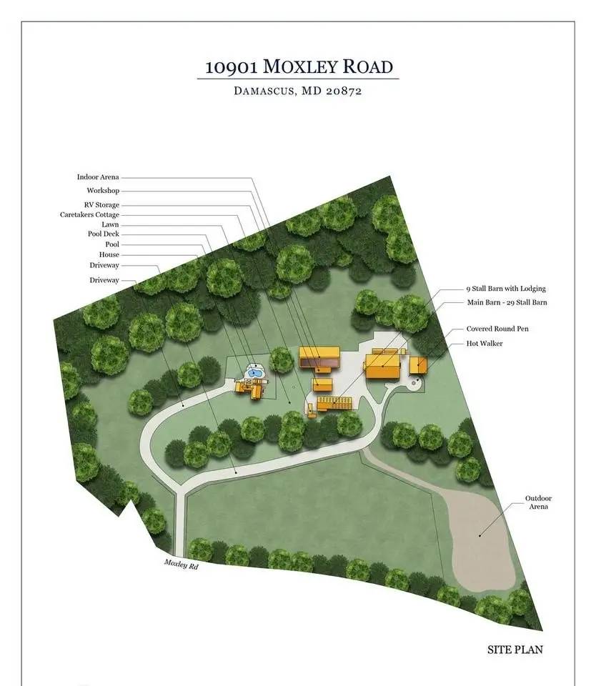 Set on 25 picturesque acres with a meandering creek, this world-class equestrian estate offers an unparalleled blend of professional horse facilities and refined country living-all within an easy drive of Washington D.C., Baltimore, and Northern Virginia. Designed with precision, care, and comfort in mind, the property is turnkey for the serious equestrian, trainer, or discerning private owner. At the heart of the farm are two exceptional barns, totaling 45 stalls, thoughtfully designed for safety, convenience, and efficiency. The main barn boasts 29 matted stalls across two wide 12-foot aisles, each equipped with its own fan, light, and timed outlet. Amenities include a climate-controlled lounge, two spacious tack rooms, a wash stall, an insulated laundry room, a utility room, and a massive loft with guest accommodations. Dedicated farrier lighting and ample tractor clearance make daily operations effortless. Just steps away are an indoor arena, a large shavings shed, an additional 7 stalls, and a hay storage container that keeps dust to a minimum. The second barn offers 9 matted stalls, a charming guest room, a full bath, and a two-bedroom suite ideal for visiting riders or staff. A vehicle lift in the barn provides space for on-site equipment maintenance. For the rider, the property features a large 60x120' indoor arena with sand footing and lighting, powered by a leased solar panel array with five inverters in the attached workshop. Outdoor training spaces include a 175' x 275' arena with new footing, a 48-foot covered round pen, and a 4-horse ProWalk hot walker. Pastures are immaculately maintained, enclosed by safe wood fencing, and laid out for ease of rotation and turnout. Additional accommodations include a caretaker's cottage and barn apartment, both updated for comfort and practicality. The four-bedroom main residence blends casual elegance with warmth, featuring hardwood floors, two gas fireplaces, a great room with brick-surround fireplace, cathedral ceilings, and skylights, a formal dining room with built-ins, crown molding, and designer lighting, and a main-level primary suite with the flexibility to expand. The updated kitchen with island and stainless steel appliances, granite counters, opens to light-filled living spaces, and the unfinished basement with rough-in offers room to grow. The upper level provides three spacious bedrooms, one with an en-suite bath with a soaking jetted tub, a walk-in shower, and a walk-in closet. Outdoor living is elevated by a newly remodeled heated inground pool with fountains, new tile and plaster, a sun deck, and a covered patio surrounded by lush perennial gardens. Additional amenities include a Two-car attached garage with EV charger, an RV garage with 16-foot ceilings, 14-foot doors, and 100-amp service, designed for Class A RVs, large living quarter horse trailers, or future conversion to a gym, basketball court, breeding facility, or stallion station. Every detail of this estate, from the safe fencing to the solar power, from the manicured arenas to the luxurious living quarters, has been crafted for the ease of care and enjoyment of horse and rider alike. With proximity to top equine veterinary hospitals and premier showgrounds, this is a rare opportunity to own one of Montgomery County's finest equestrian properties. Shown by private appointment only.
