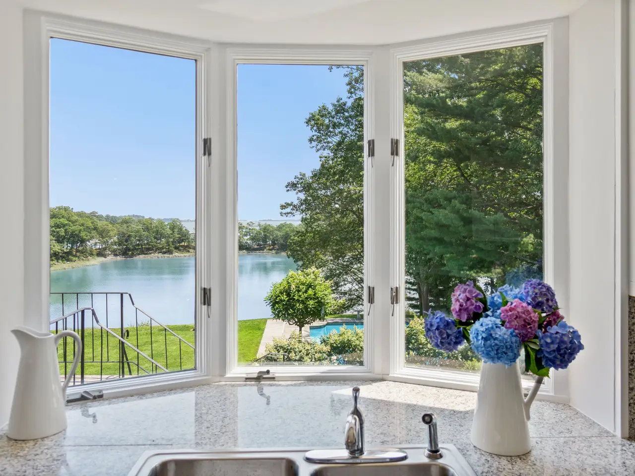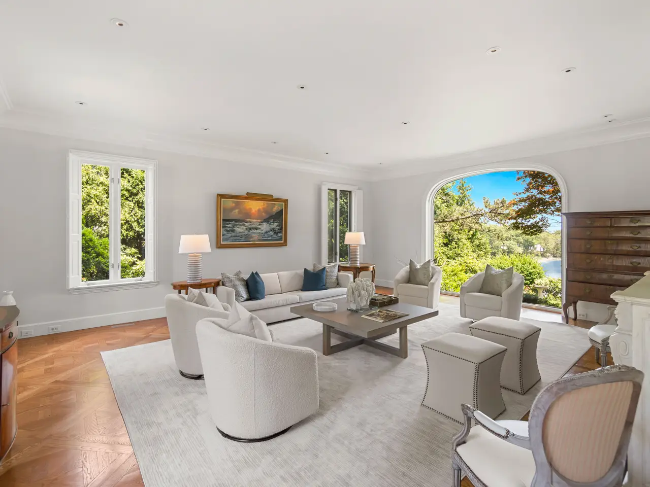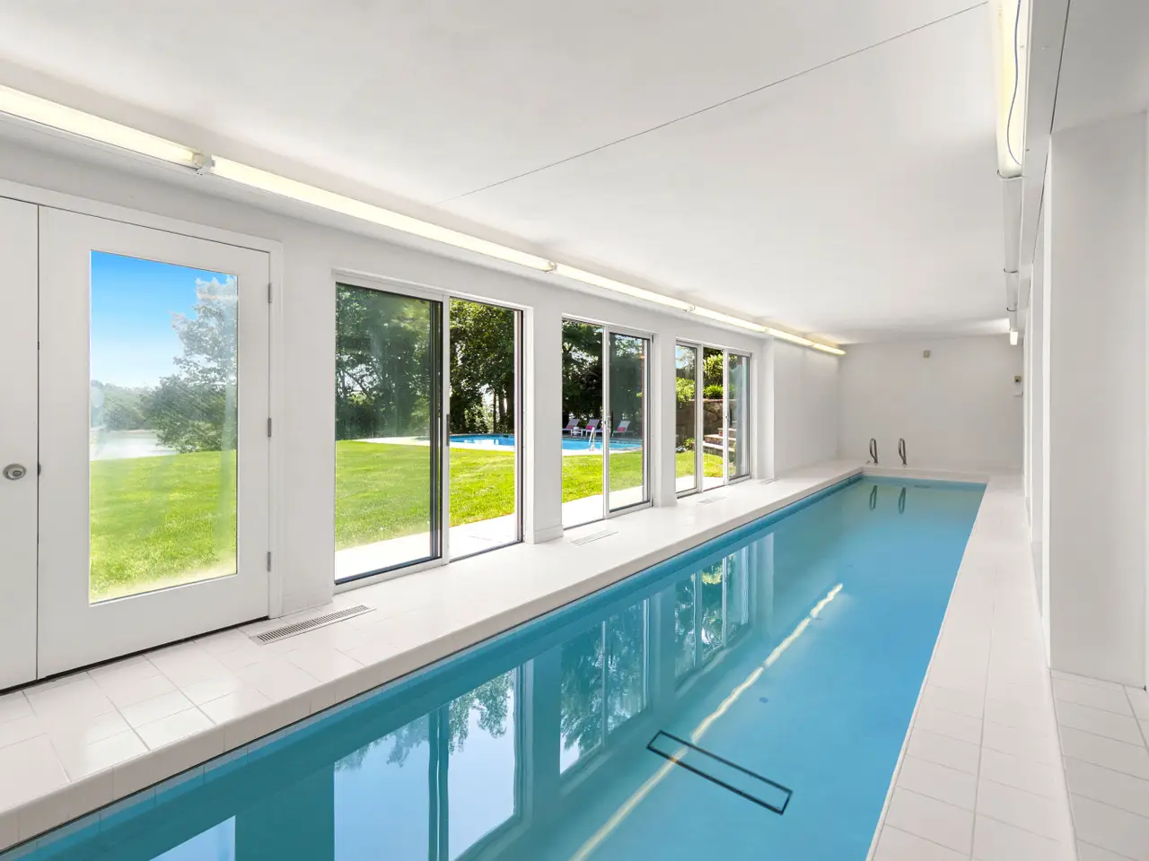 Perched high on the bluff of Long Neck Point, this 6680sf custom-built brick estate offers you unmatched privacy and panoramic water views, all in this captivating natural environment where land and sea converge in harmony. Set on 1.38 acres with 175 feet of shoreline, the home enjoys 180-degree views over Long Island Sound, with main floor rooms capturing the stunning scenery and the ever-changing water. The home opens with a dramatic marble foyer and circular staircase. Graciously scaled rooms feature 9-foot ceilings, an oversized arched window and sliding glass door walls that flood the interiors with light. A long flat backyard, with a 20 X 40 ft concrete pool, slopes gently toward the water, leading to a private dock. The home offers five bedrooms, a luxurious primary suite with its own wing, dual bathrooms and two large walk-in closets. Indoor 38x6 ft lap pool in a separate glass room with sliders to the garden and sea. Separate in-law apartment has a private entrance, kitchen, and sitting room. The lower level has a great room with fireplace, home office with built ins, gym, and a newly renovated pool bathroom and dressing room. Three-car garage, a new slate-style DaVinci roof, new furnace, new A/C units, 45 Viking cooktop, new oil tanks, full property landscaping and a partially finished attic with cedar closet. This is a rare opportunity to own a truly special waterfront home where every detail was thoughtfully designed to elevate daily living.