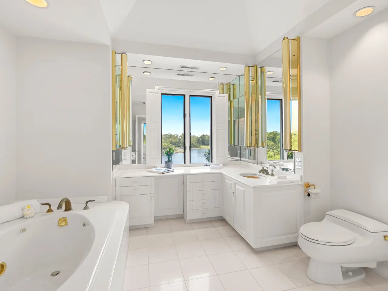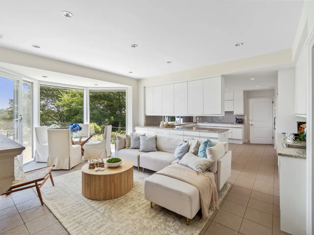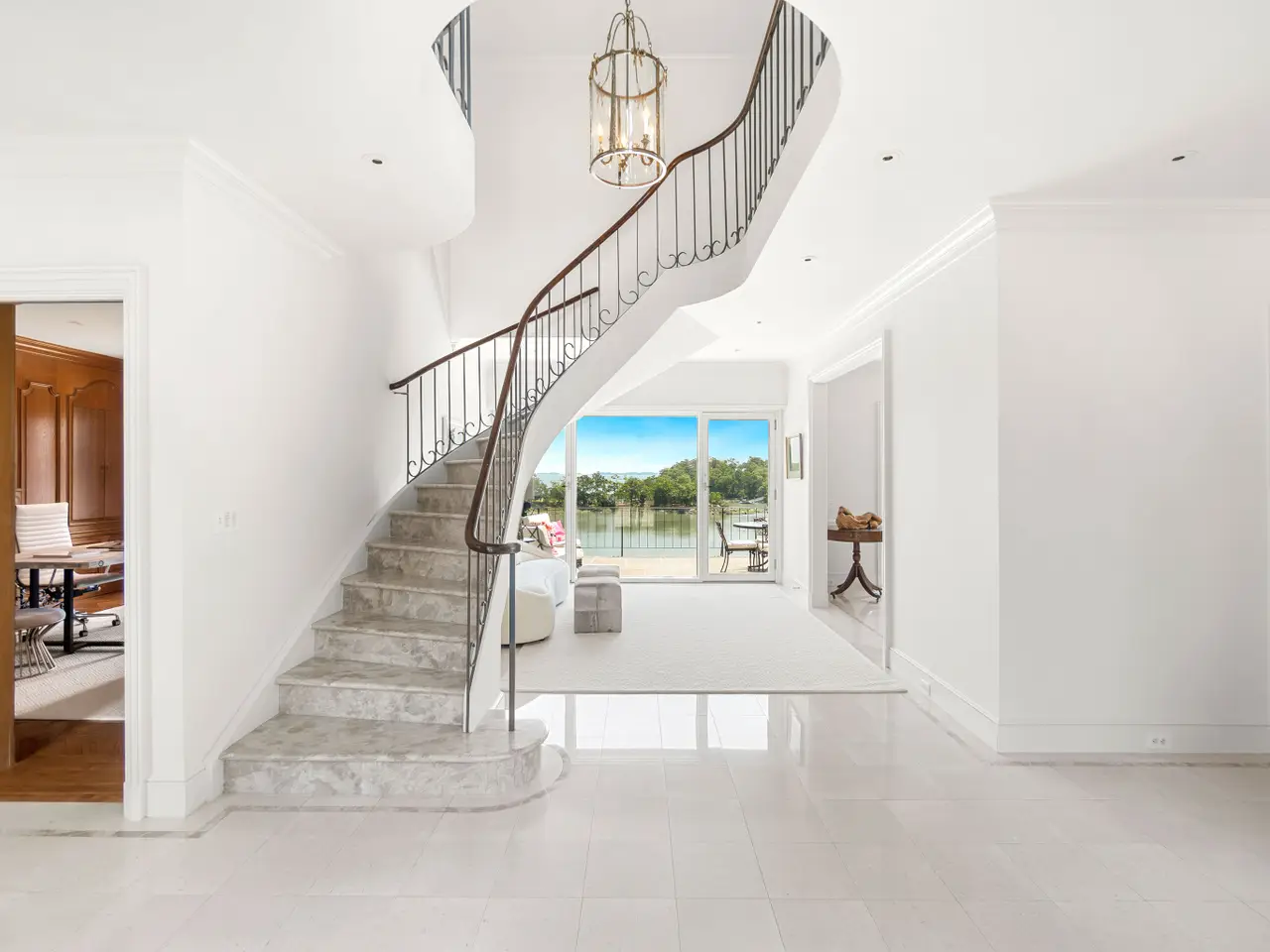 Perched high on the bluff of Long Neck Point, this 6680sf custom-built brick estate offers you unmatched privacy and panoramic water views, all in this captivating natural environment where land and sea converge in harmony. Set on 1.38 acres with 175 feet of shoreline, the home enjoys 180-degree views over Long Island Sound, with main floor rooms capturing the stunning scenery and the ever-changing water. The home opens with a dramatic marble foyer and circular staircase. Graciously scaled rooms feature 9-foot ceilings, an oversized arched window and sliding glass door walls that flood the interiors with light. A long flat backyard, with a 20 X 40 ft concrete pool, slopes gently toward the water, leading to a private dock. The home offers five bedrooms, a luxurious primary suite with its own wing, dual bathrooms and two large walk-in closets. Indoor 38x6 ft lap pool in a separate glass room with sliders to the garden and sea. Separate in-law apartment has a private entrance, kitchen, and sitting room. The lower level has a great room with fireplace, home office with built ins, gym, and a newly renovated pool bathroom and dressing room. Three-car garage, a new slate-style DaVinci roof, new furnace, new A/C units, 45 Viking cooktop, new oil tanks, full property landscaping and a partially finished attic with cedar closet. This is a rare opportunity to own a truly special waterfront home where every detail was thoughtfully designed to elevate daily living.